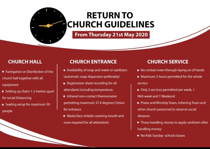 Return to church guidelines: from Thursday 21st May 2020