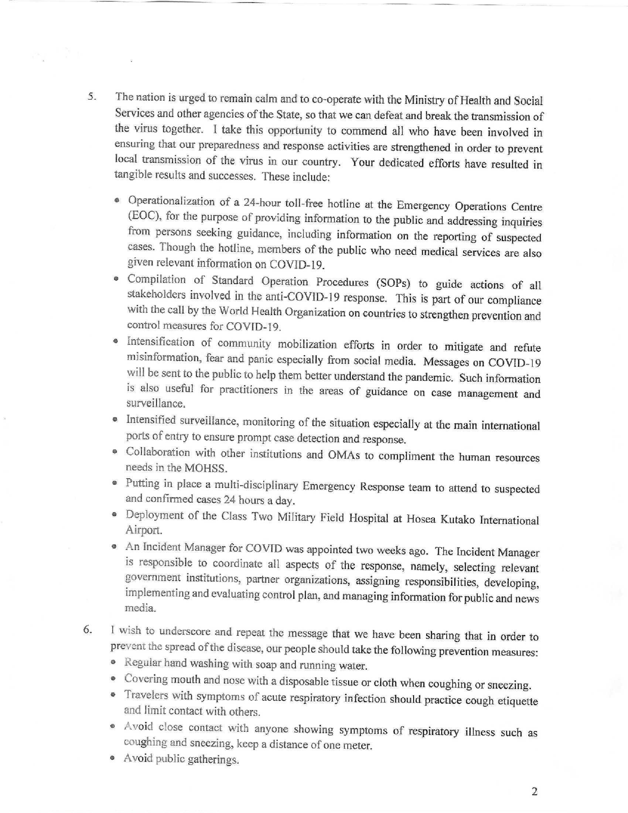 2. Today’s briefing comes shortly after His Excellency, Dr Hage G. Geingob declared a State of