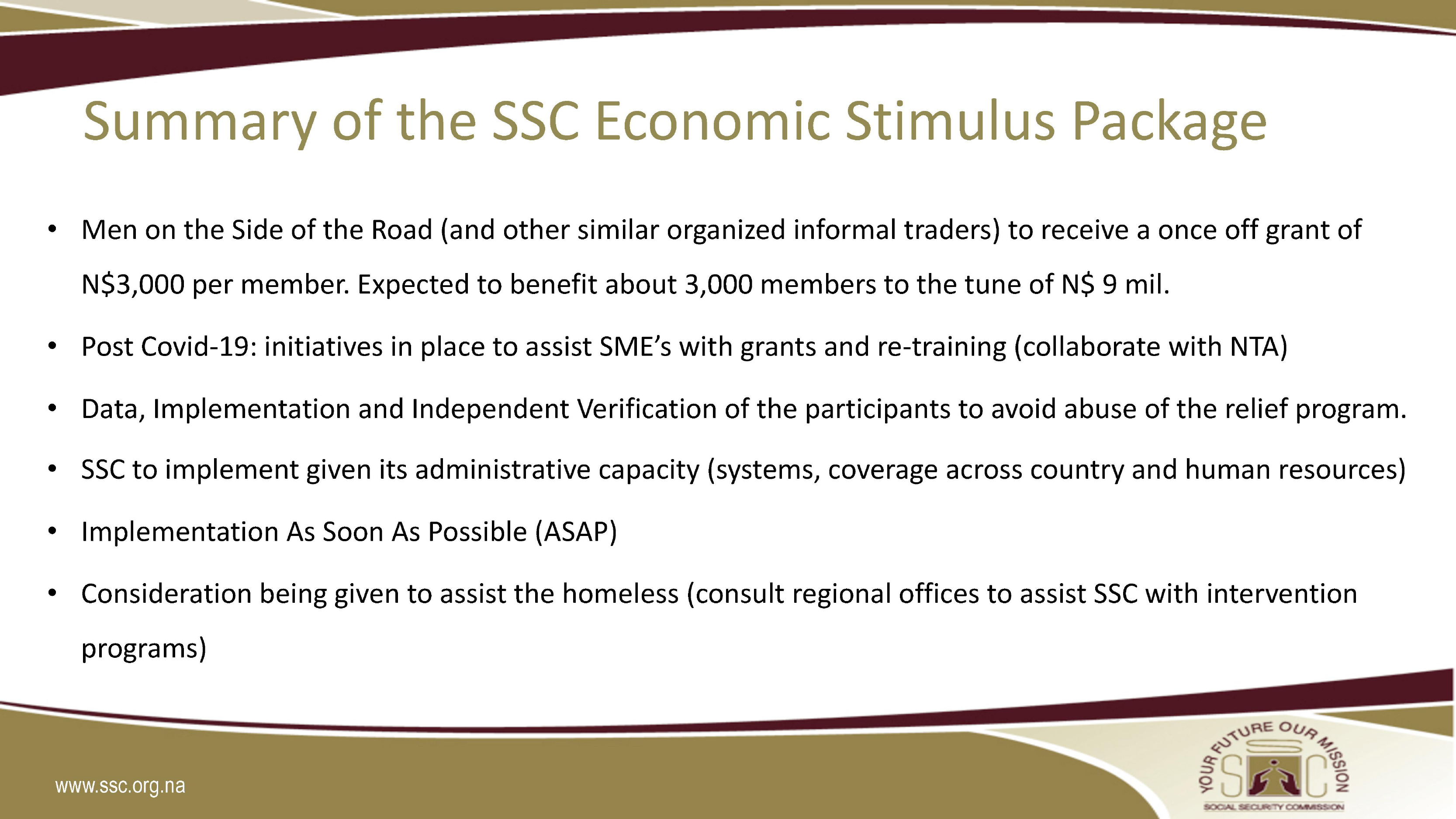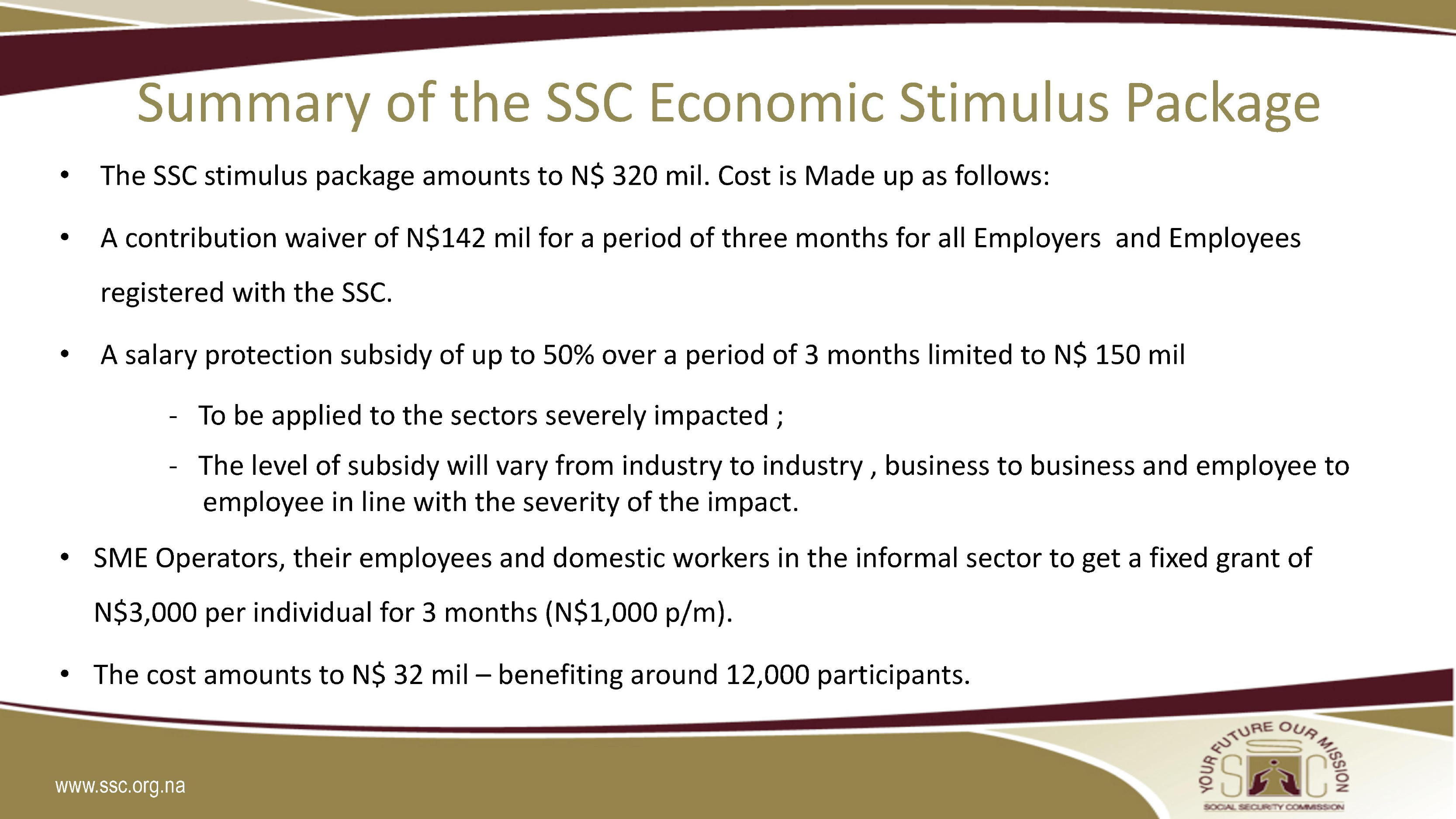 ¢ Acontribution waiver of NS142 mil for a period of three months for all Employers and Employees
