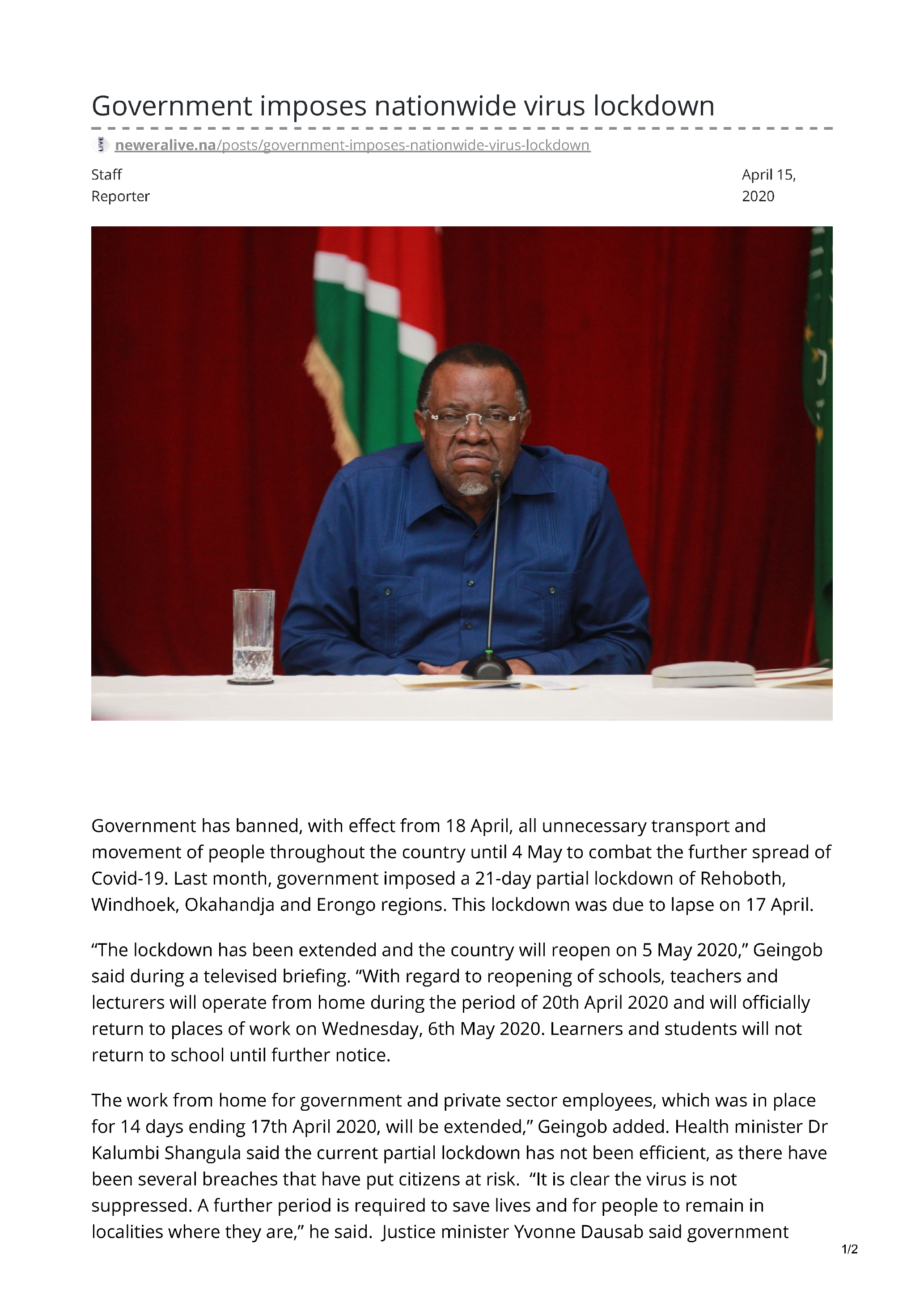 “The lockdown has been extended and the country will reopen on 5 May 2020,” Geingob