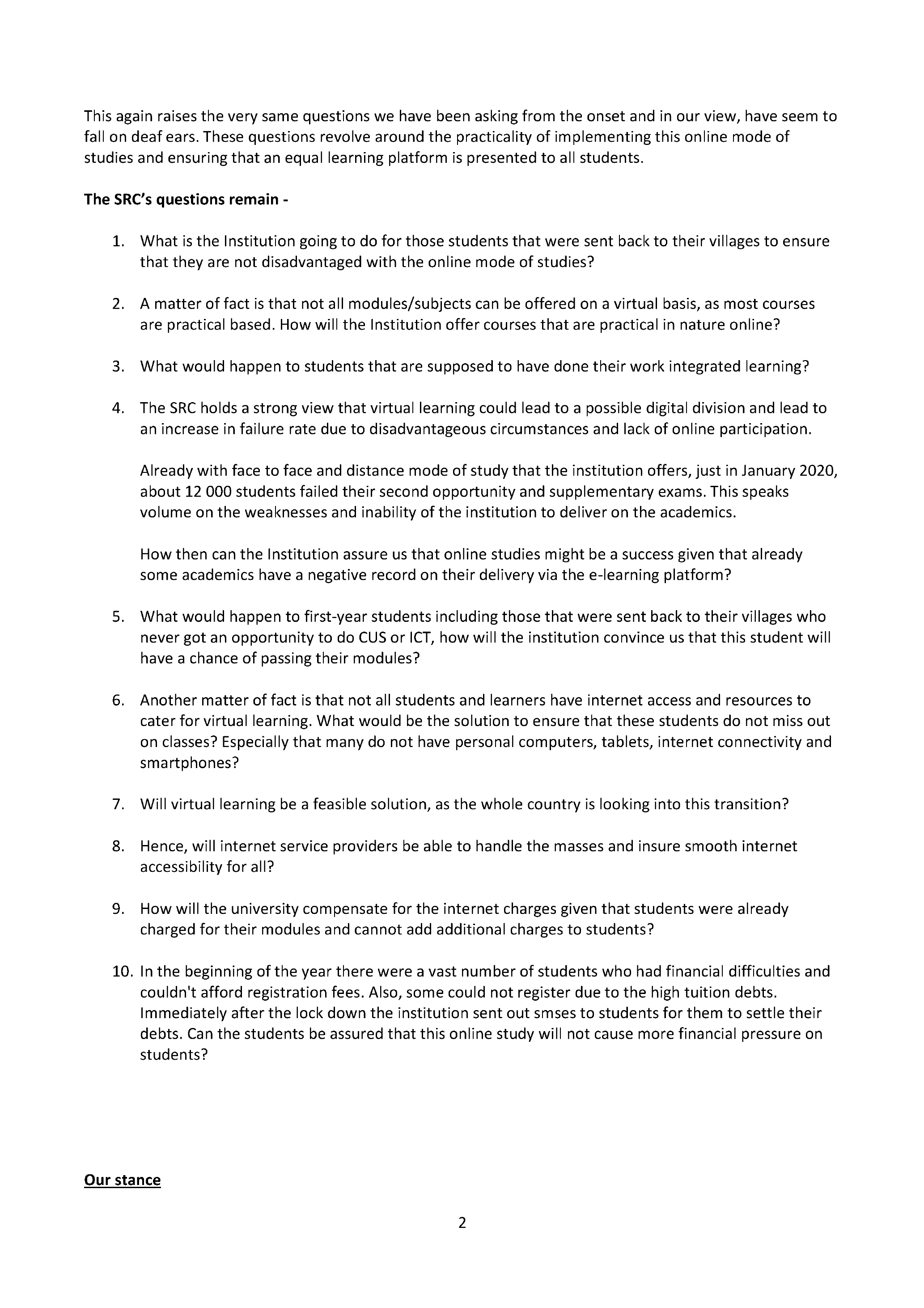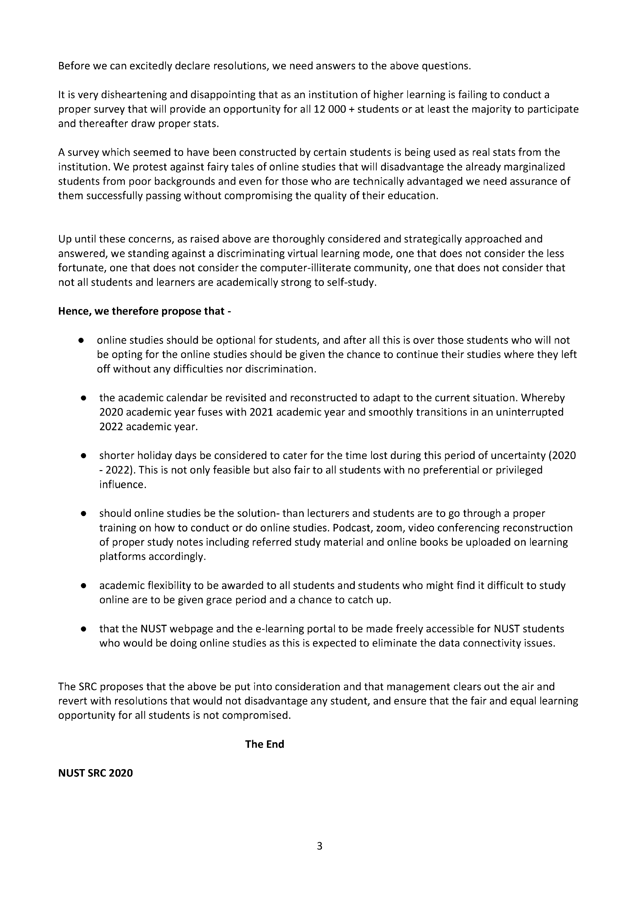 by Covid-19, however it at least needs to satisfy the following concerns raised by the students which up to