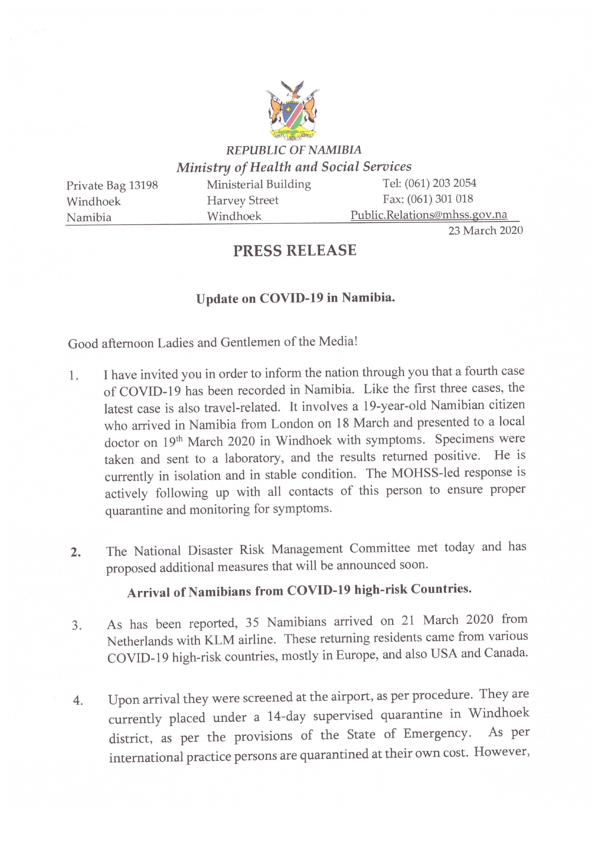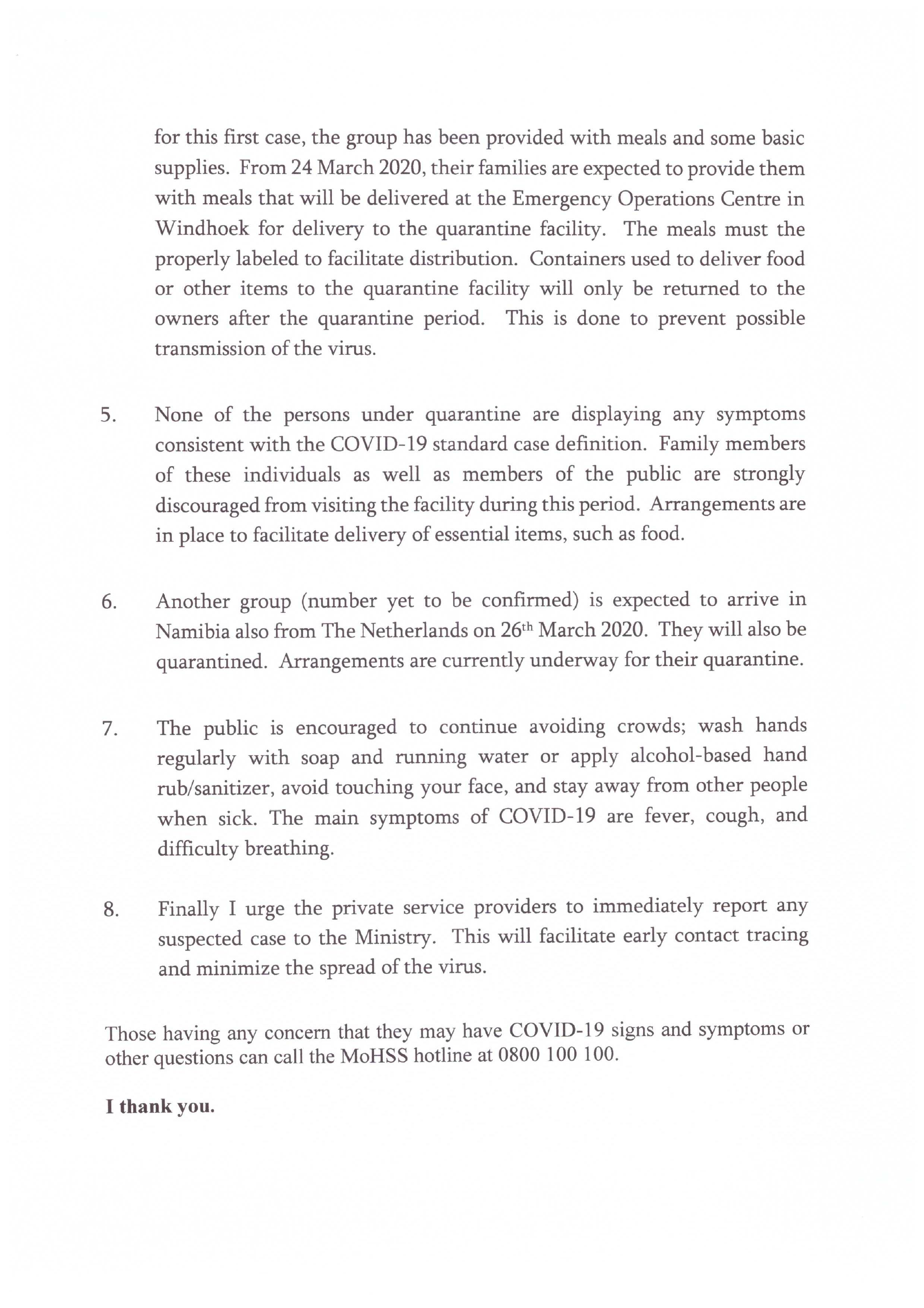 3. As has been reported, 35 Namibians arrived on 21 March 2020 from