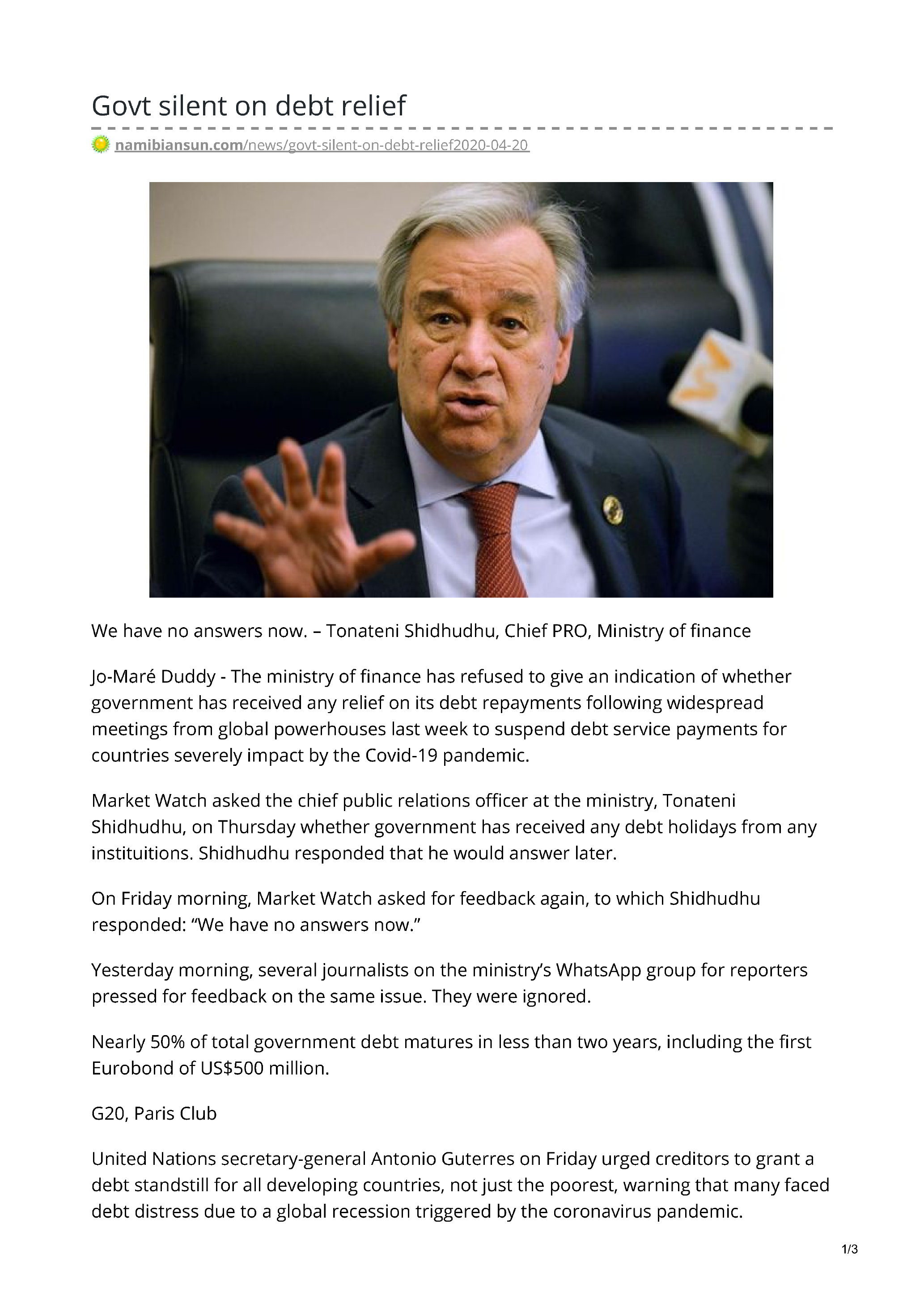 We have no answers now. - Tonateni Shidhudhu, Chief PRO, Ministry of finance