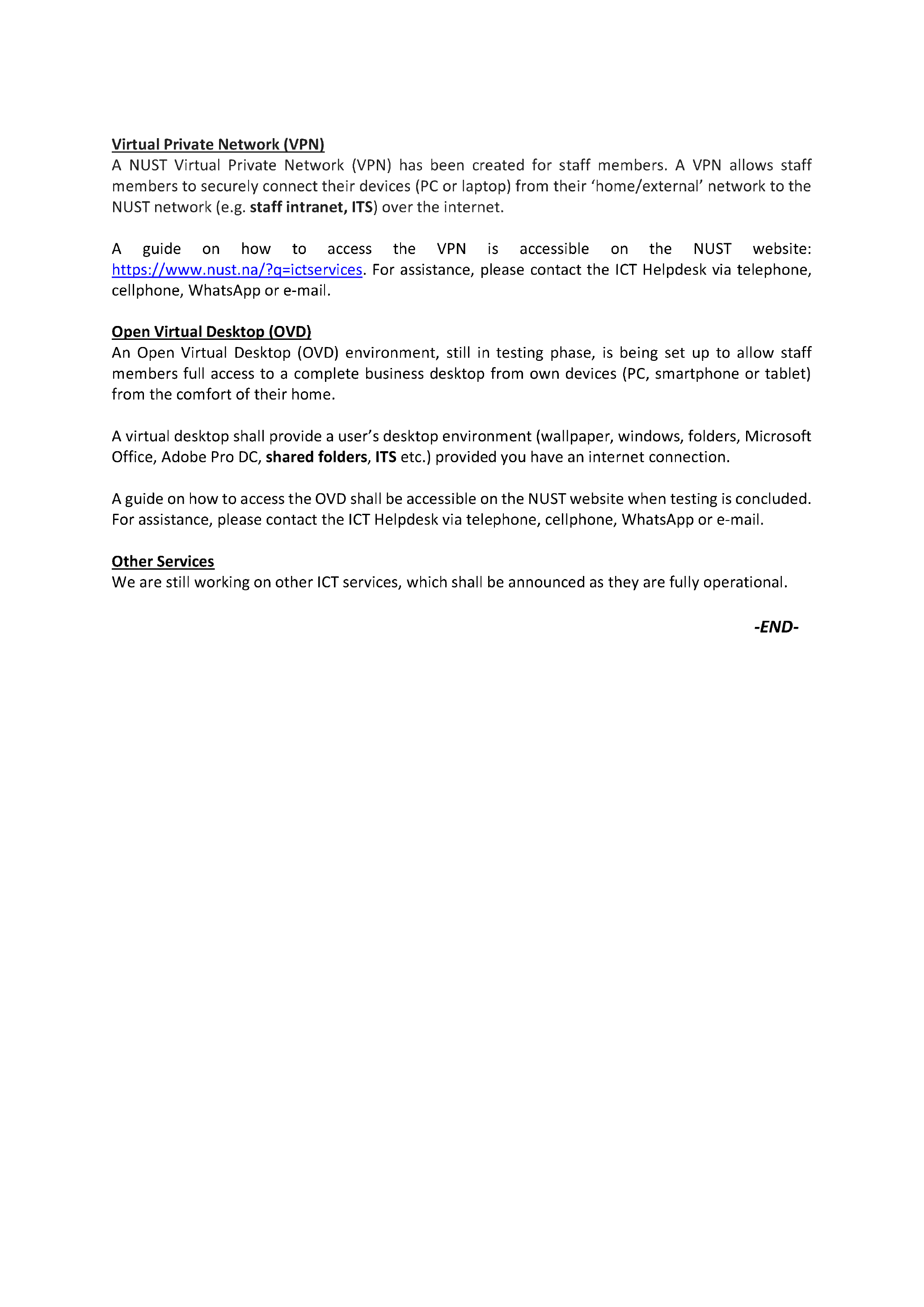 A guide on how to access the OVD shall be accessible on the NUST website when testing is concluded.