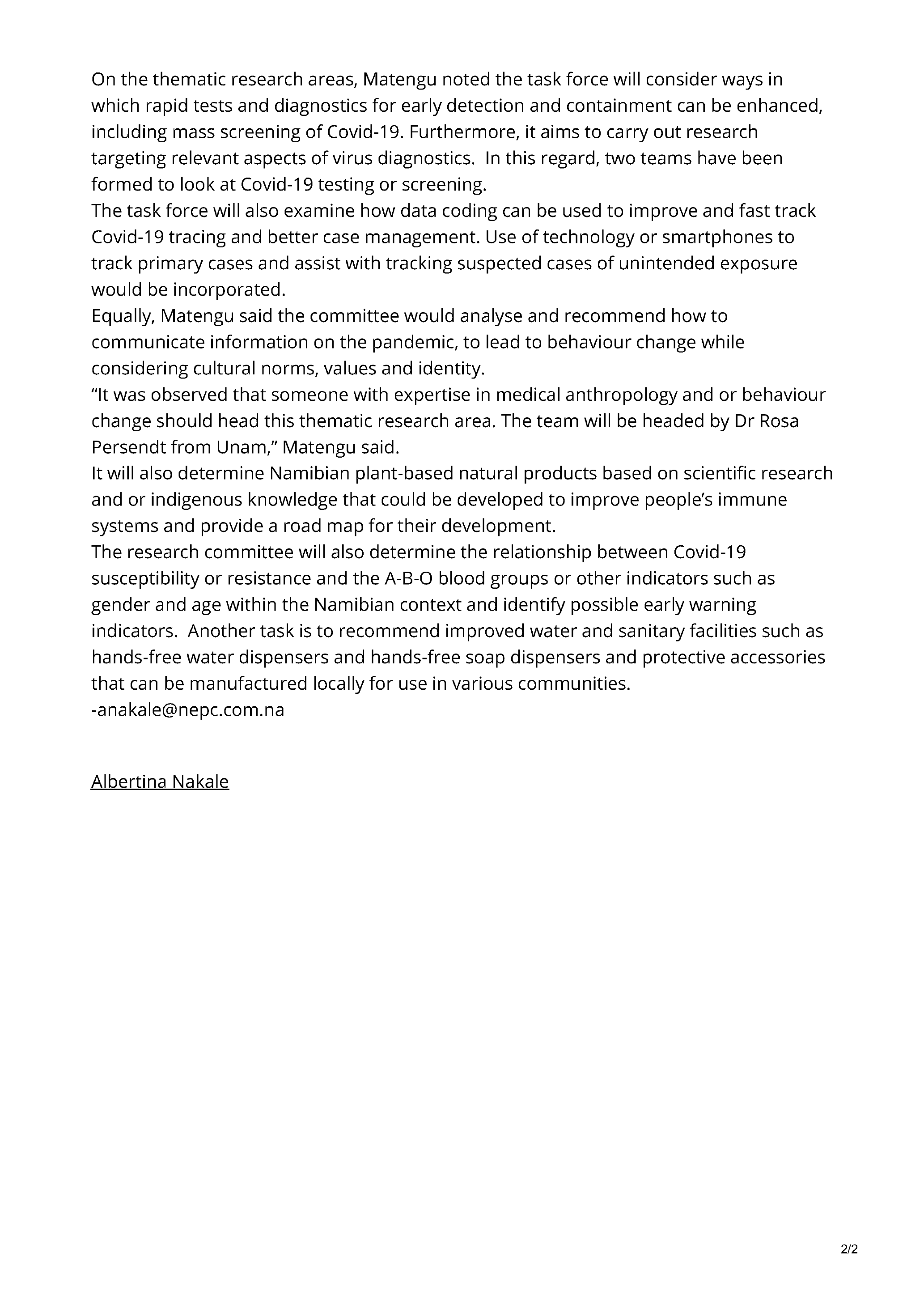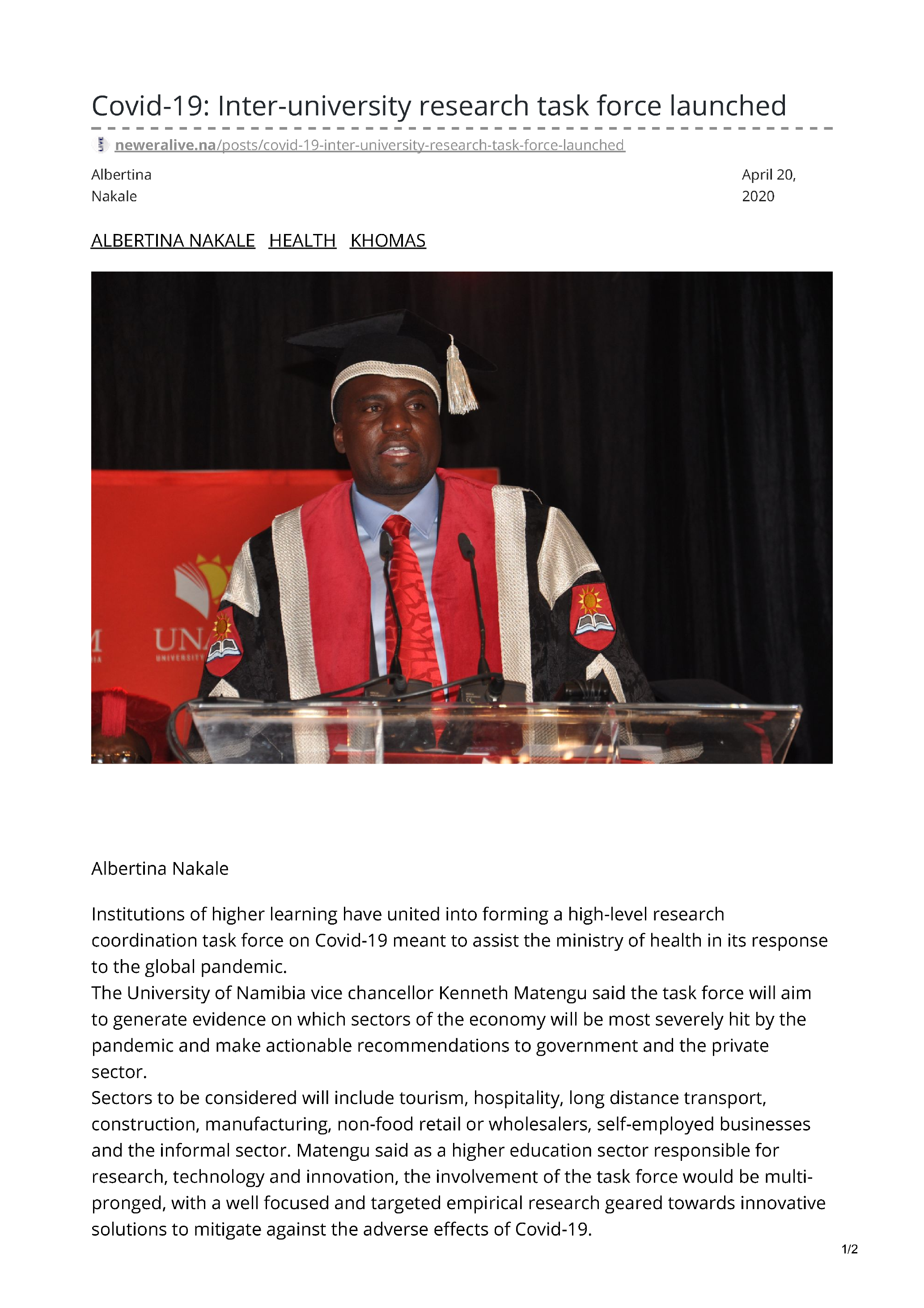 The University of Namibia vice chancellor Kenneth Matengu said the task force will aim