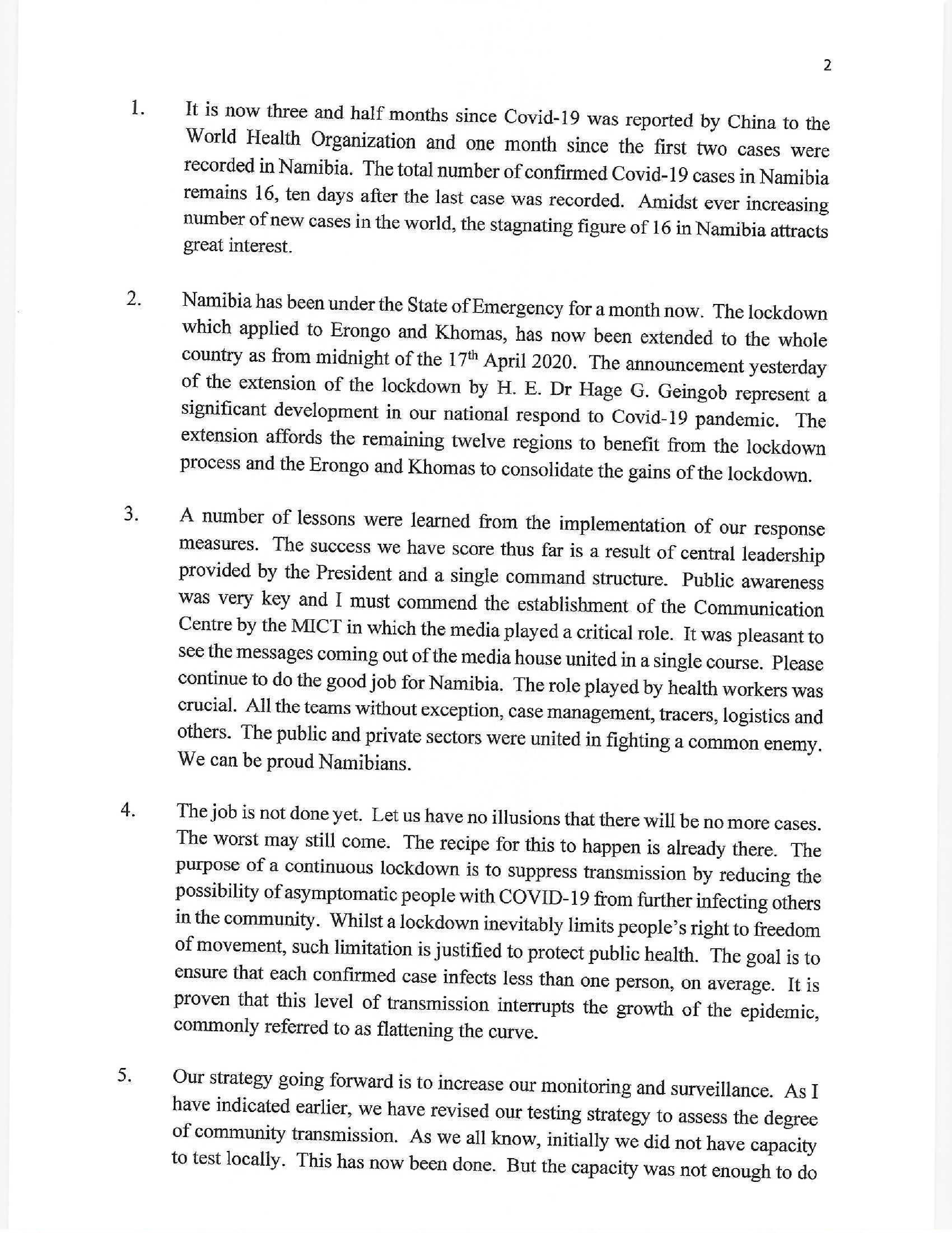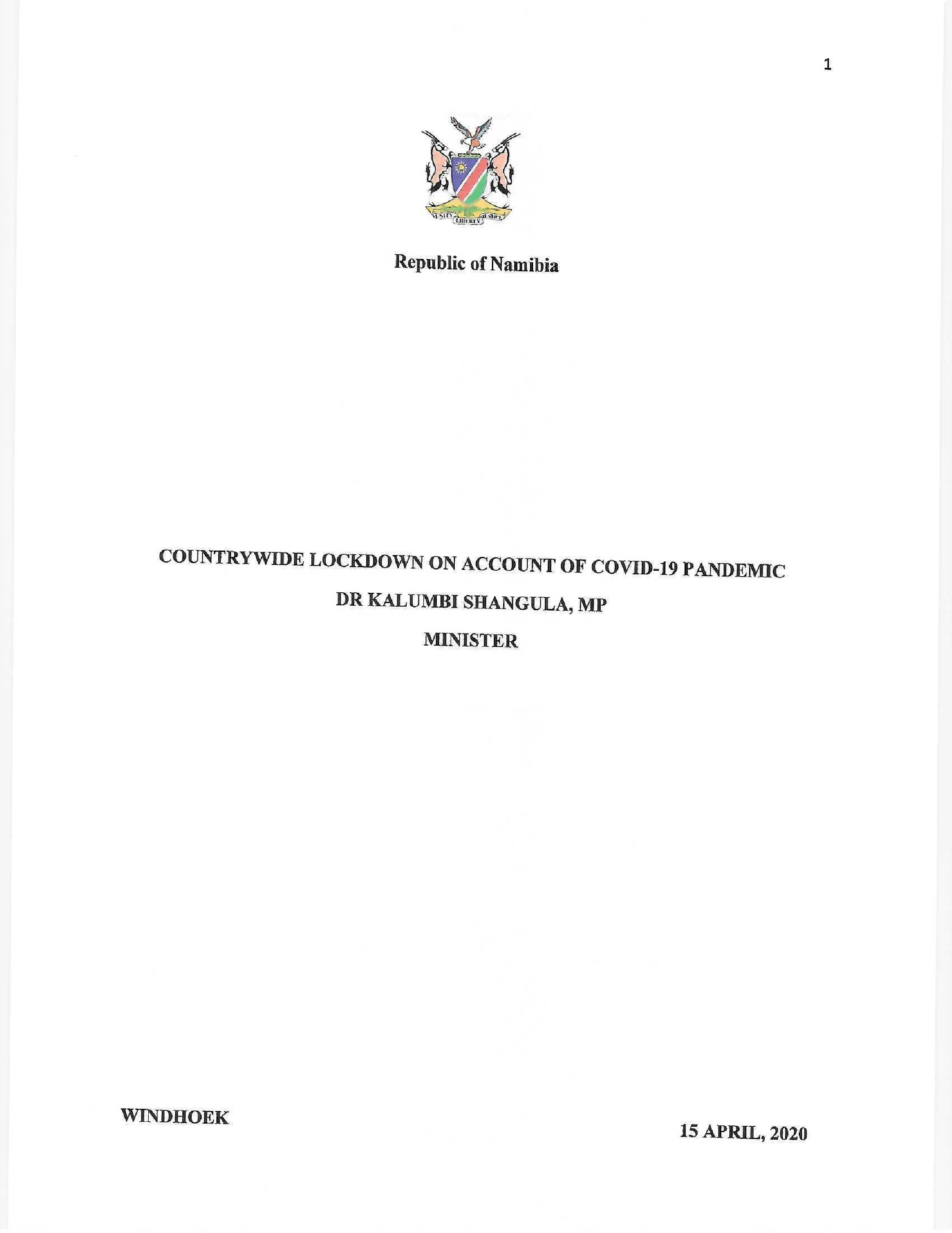 COVID 19 UPDATE 15 APRIL STATEMENT ON COUNTRYWIDE LOCKDOWN ON ACCOUNT OF COVID 19 PANDEMIC |