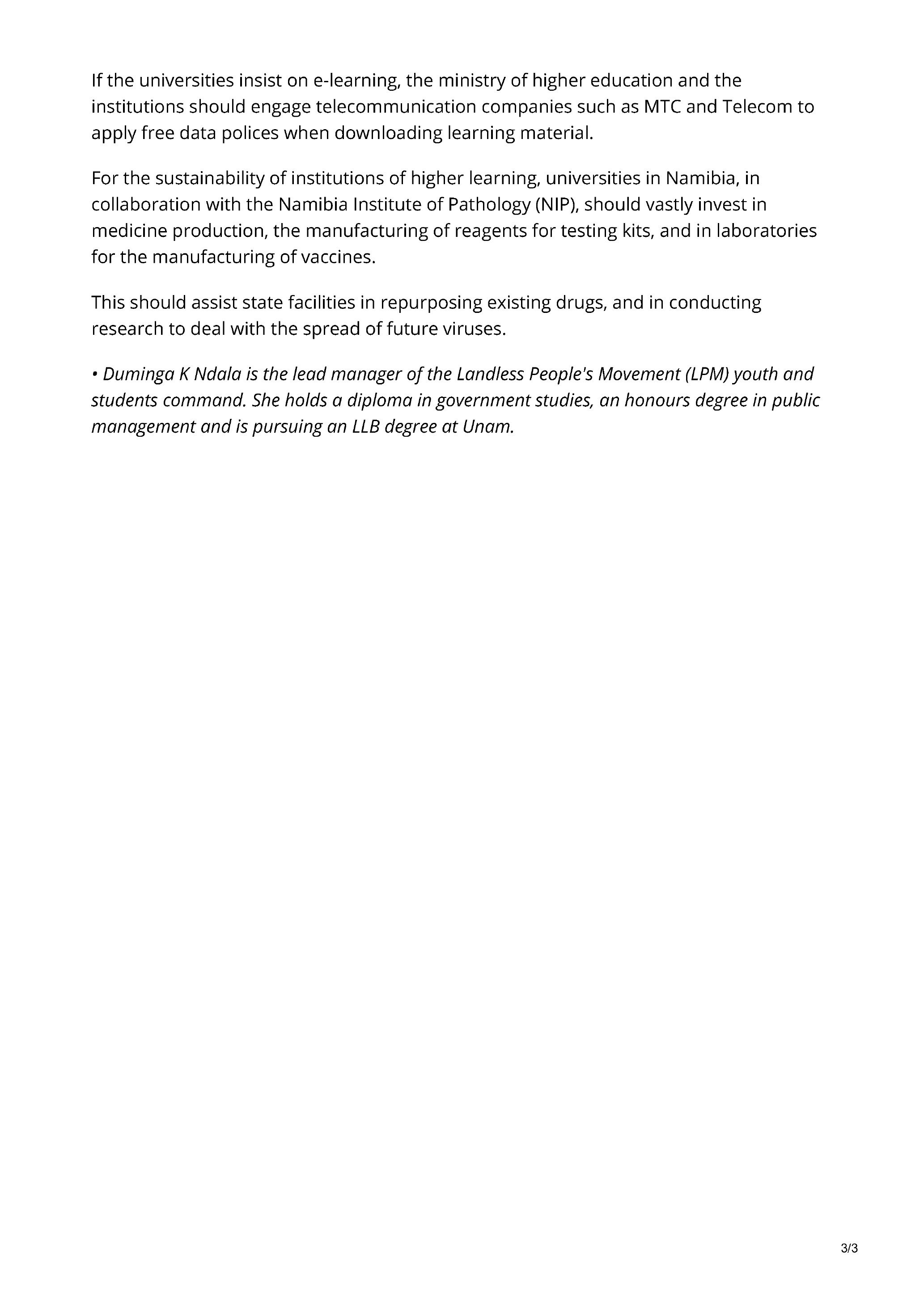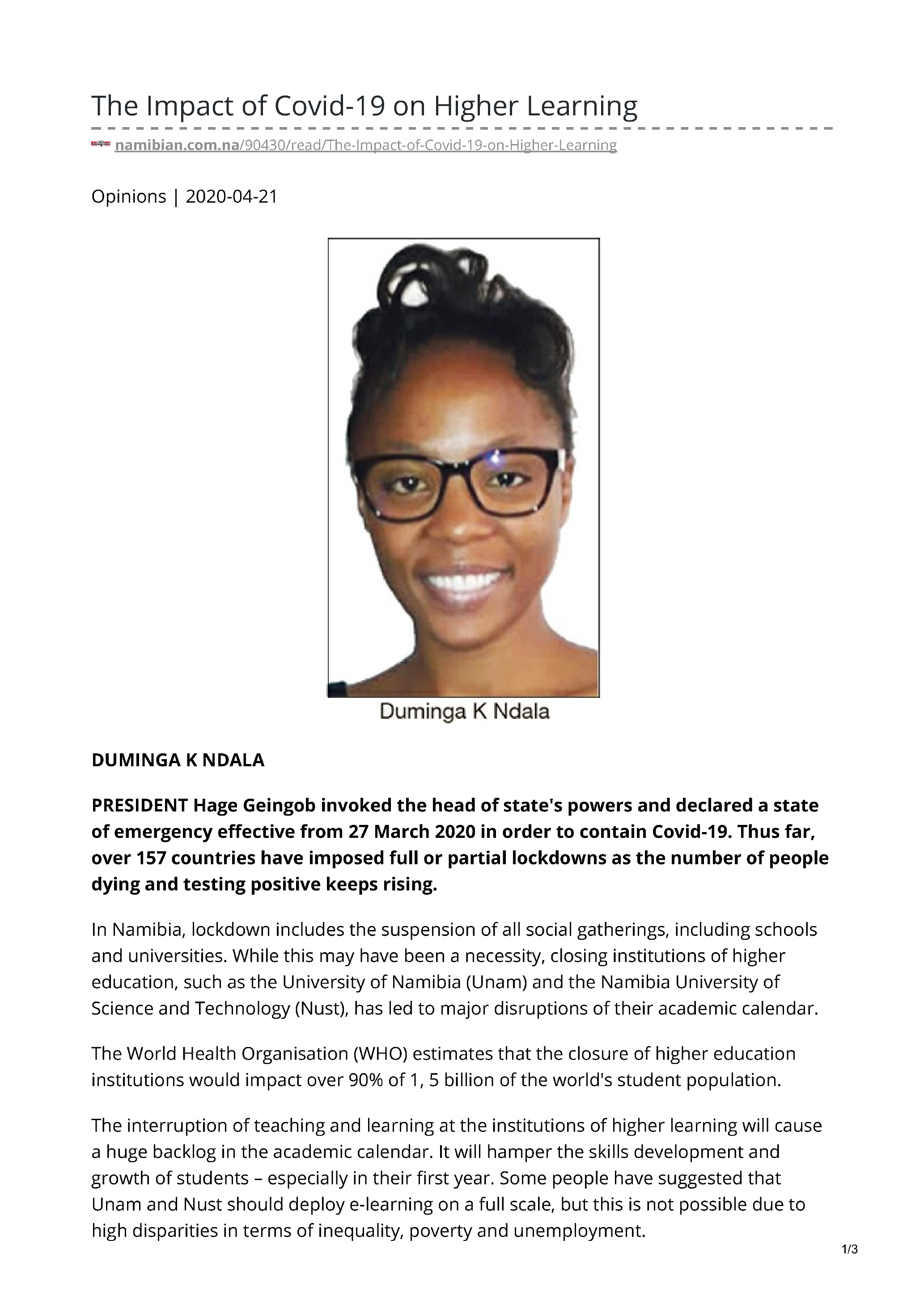 == namibian.com.na/90430/read/The-Impact-of-Covid-19-on-Higher-Learnin