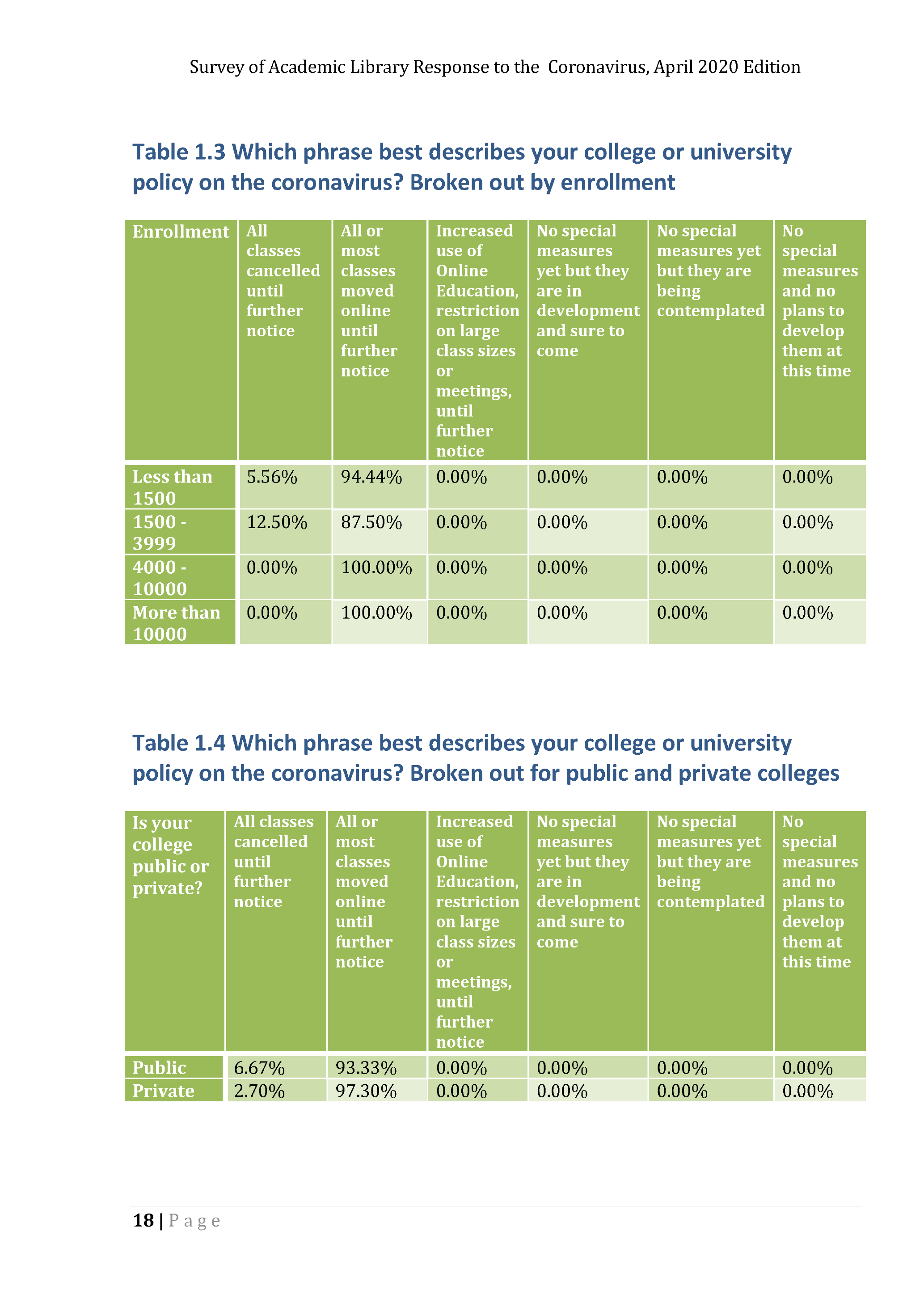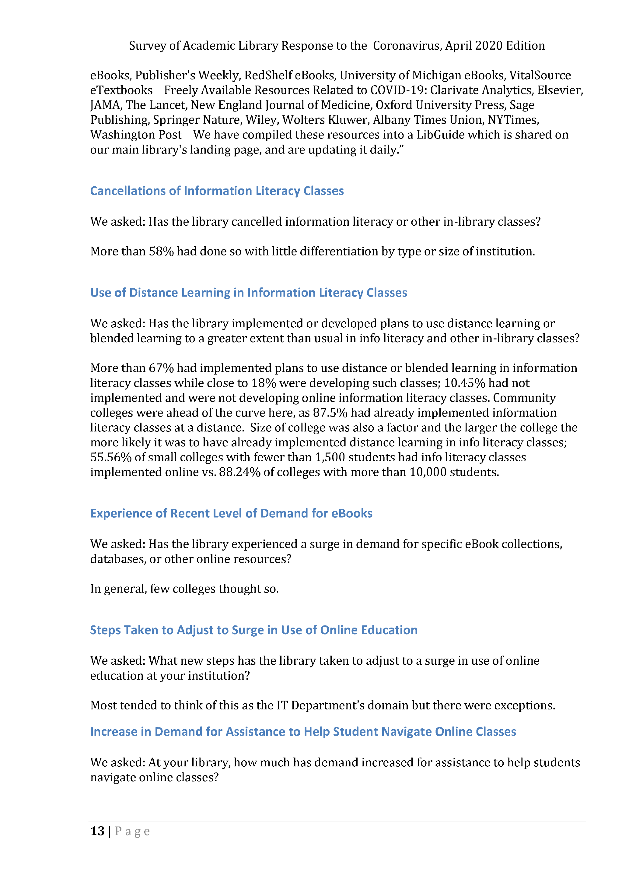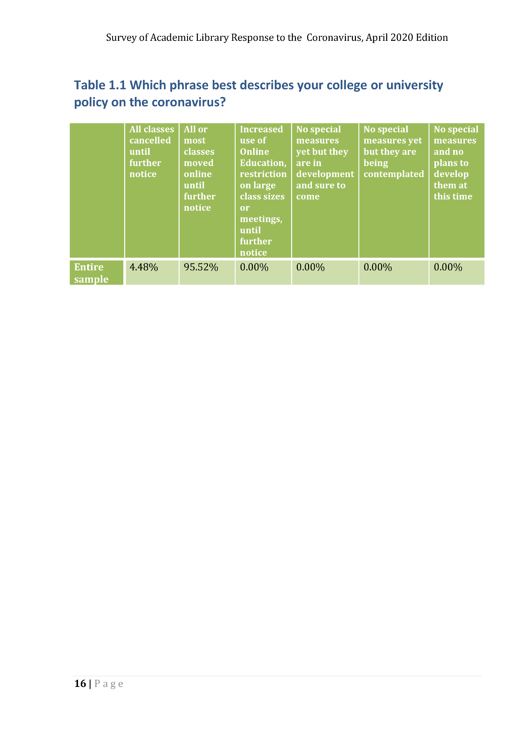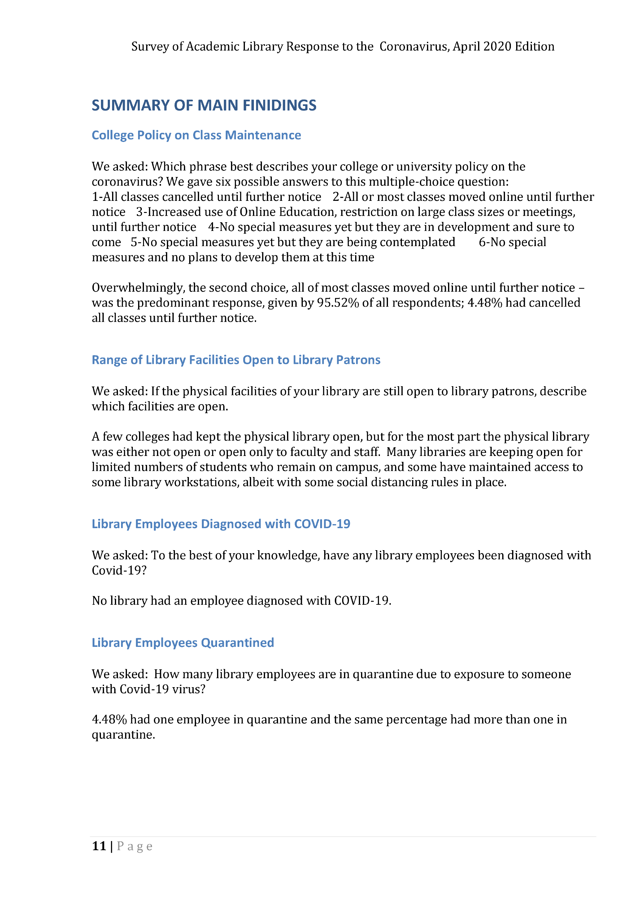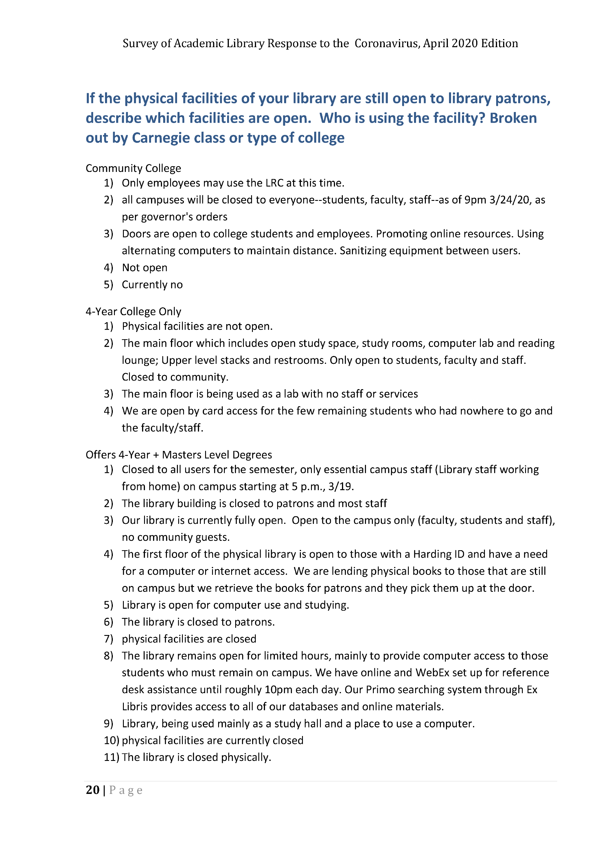 Survey of Academic Library Response to the Coronavirus April 2020 Edition |