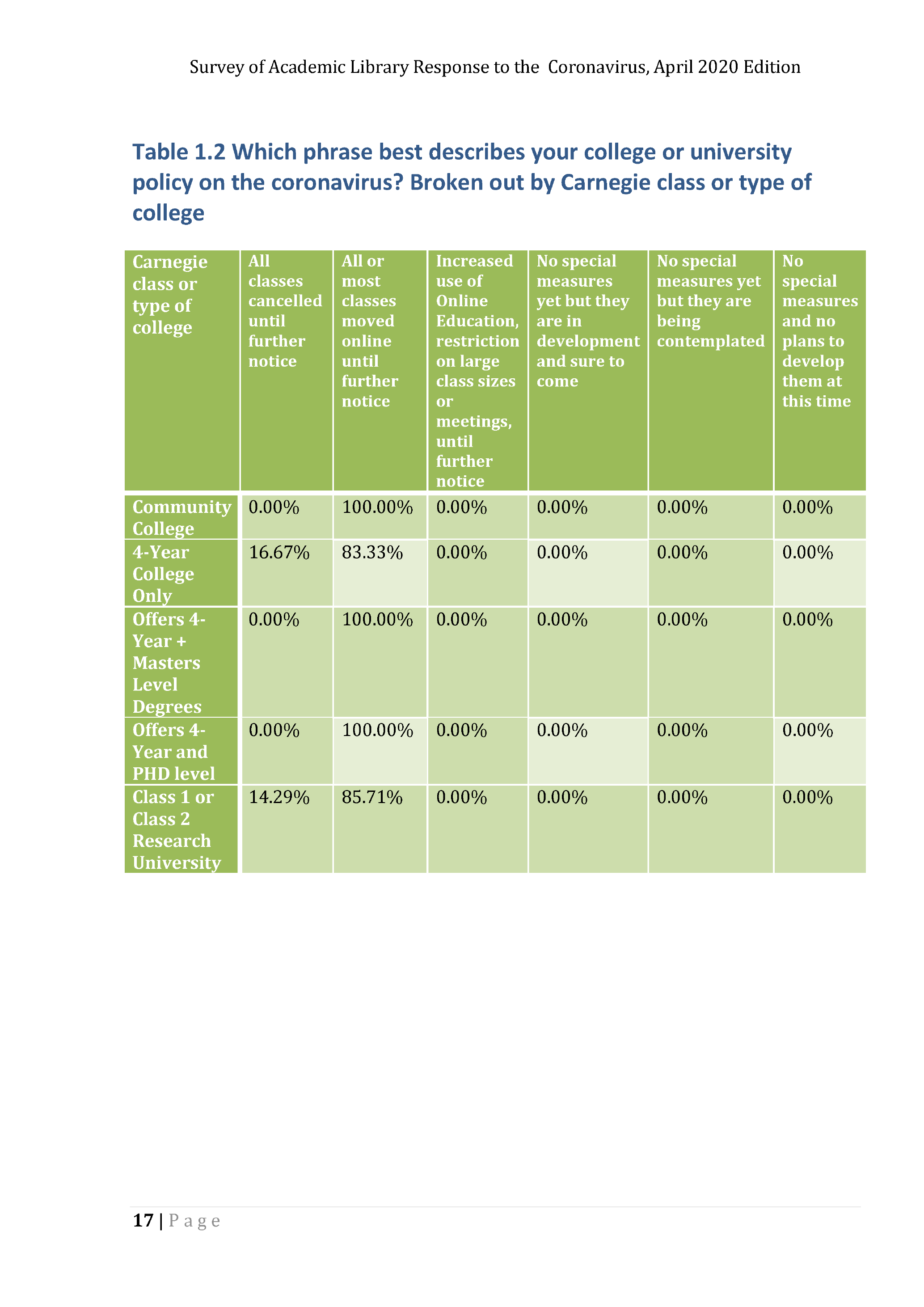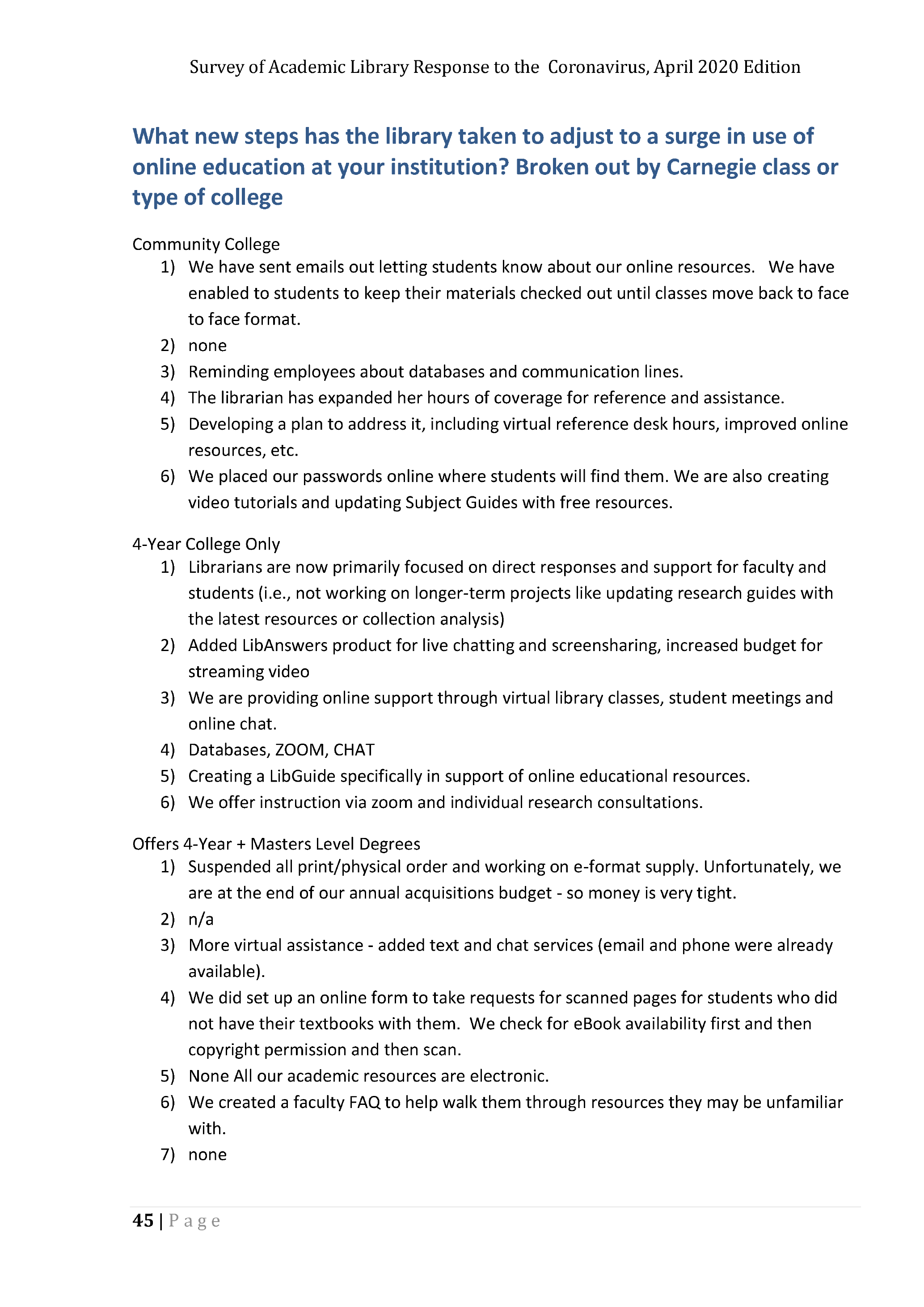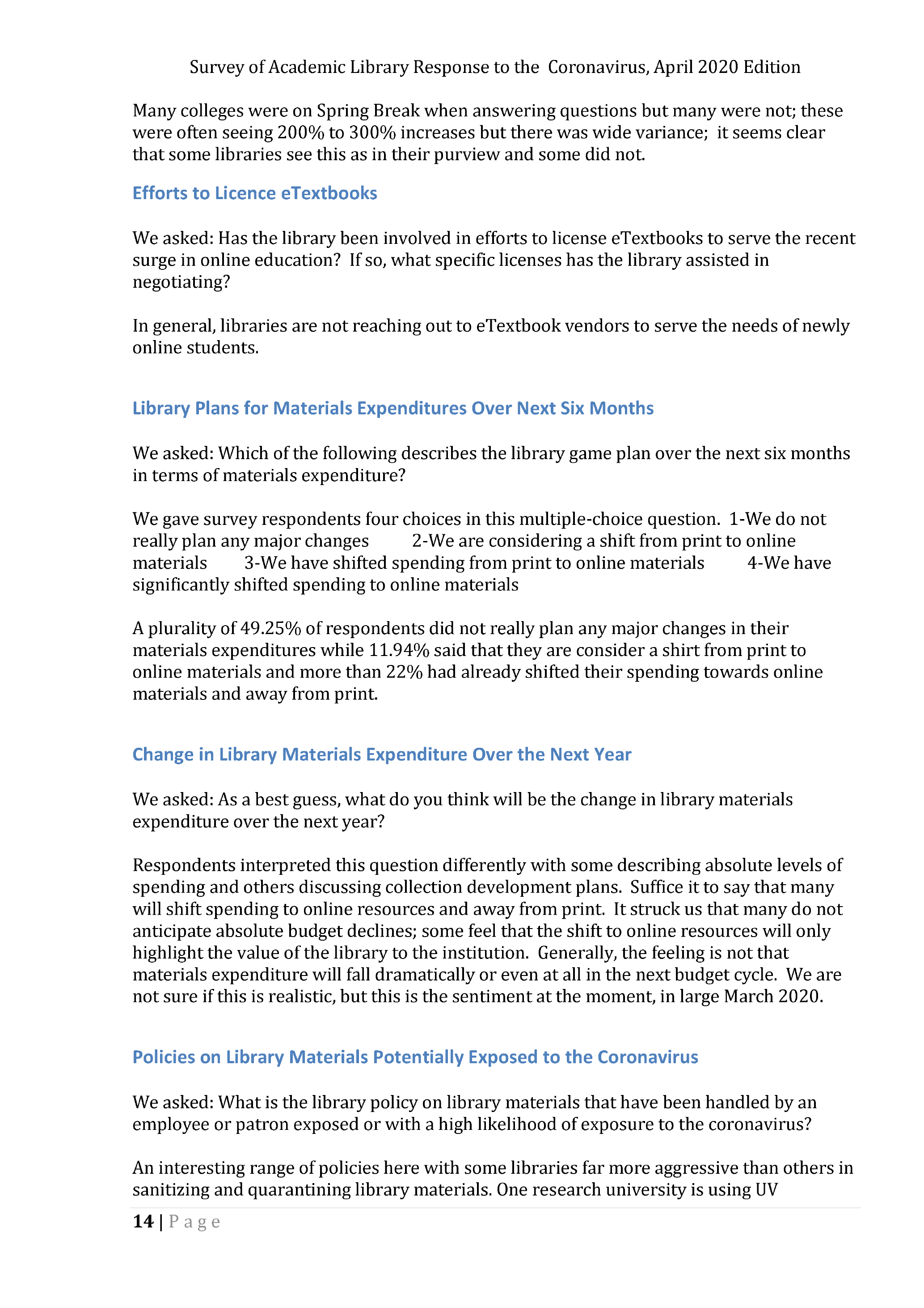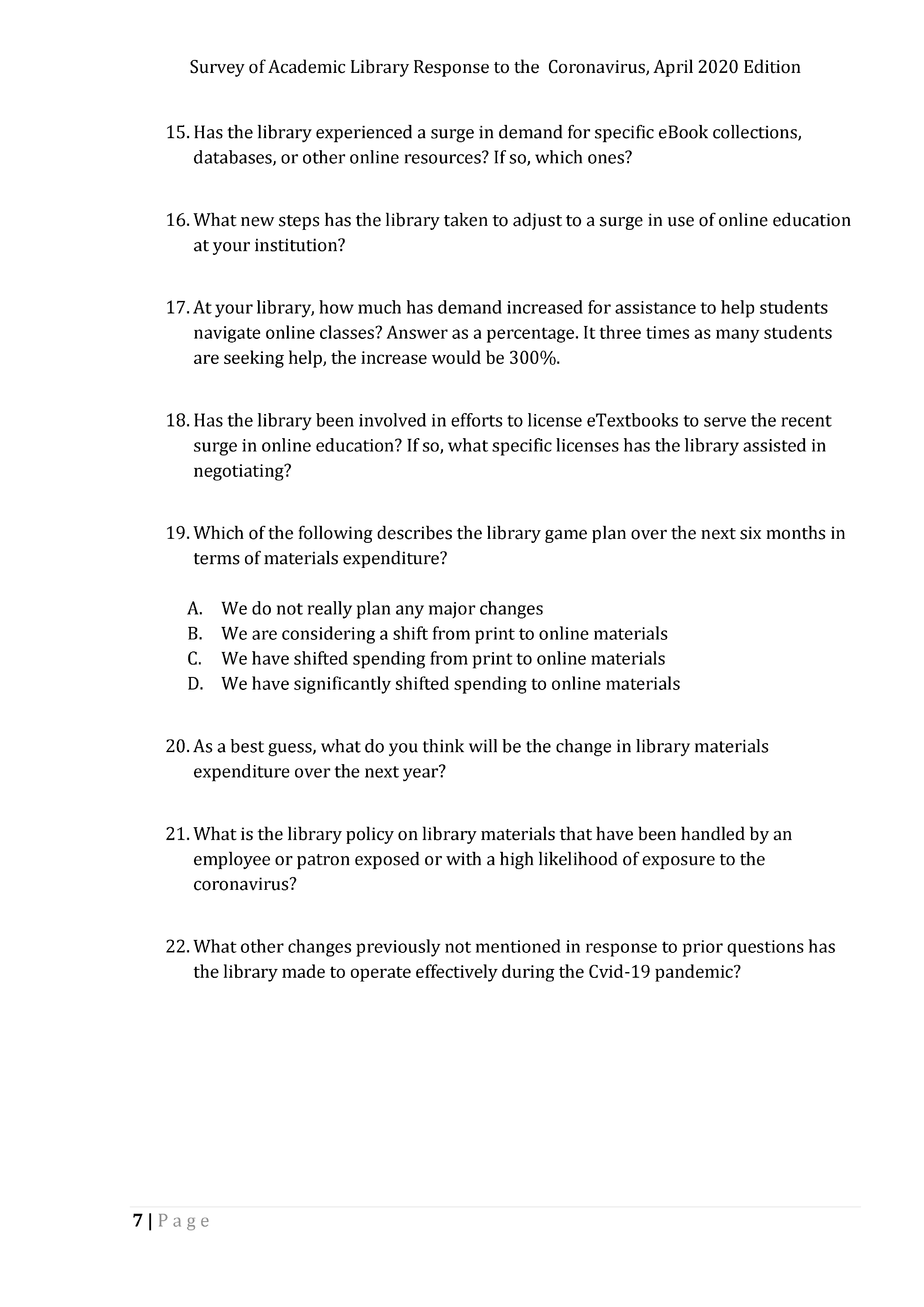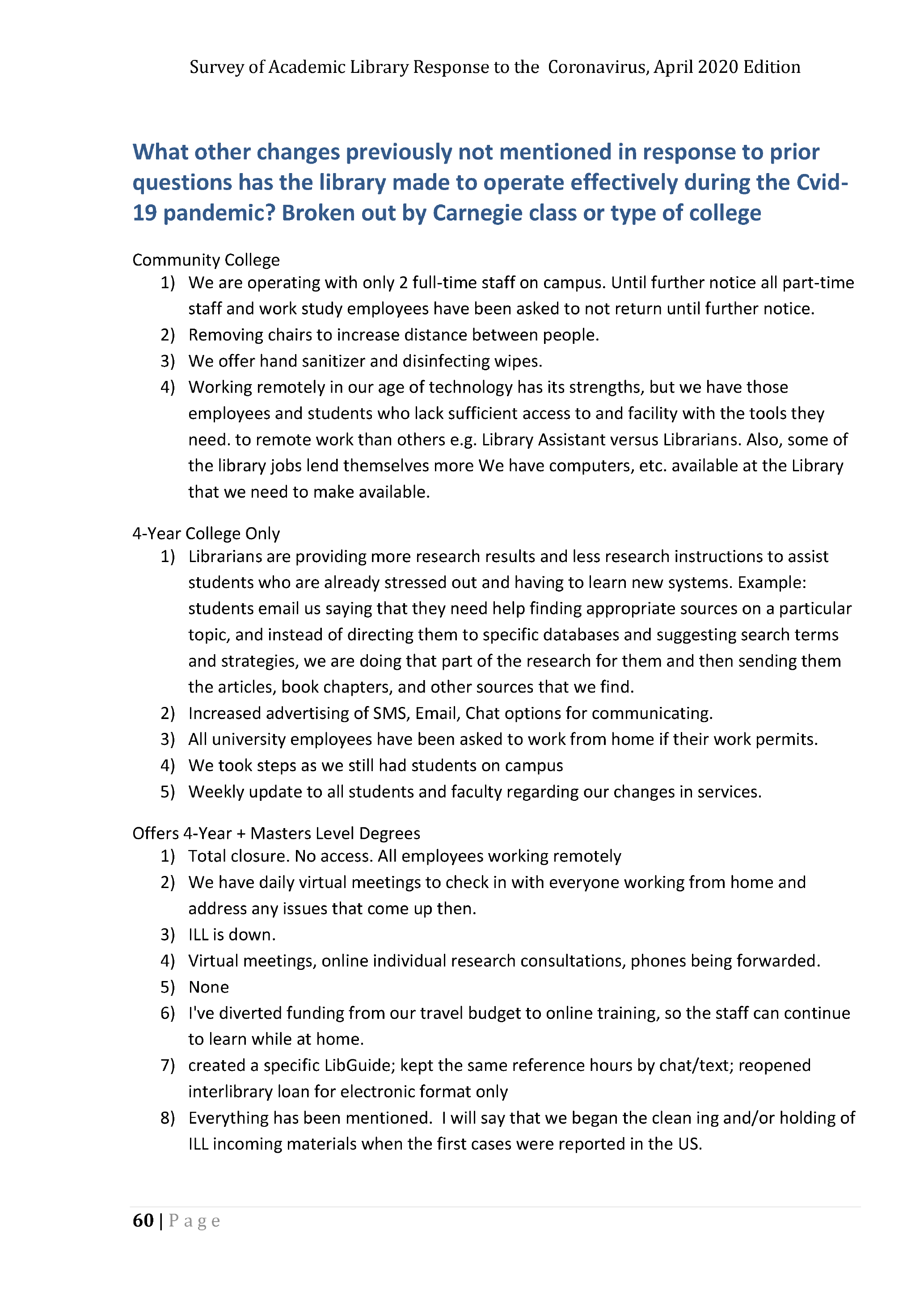 Survey of Academic Library Response to the Coronavirus April 2020 Edition |