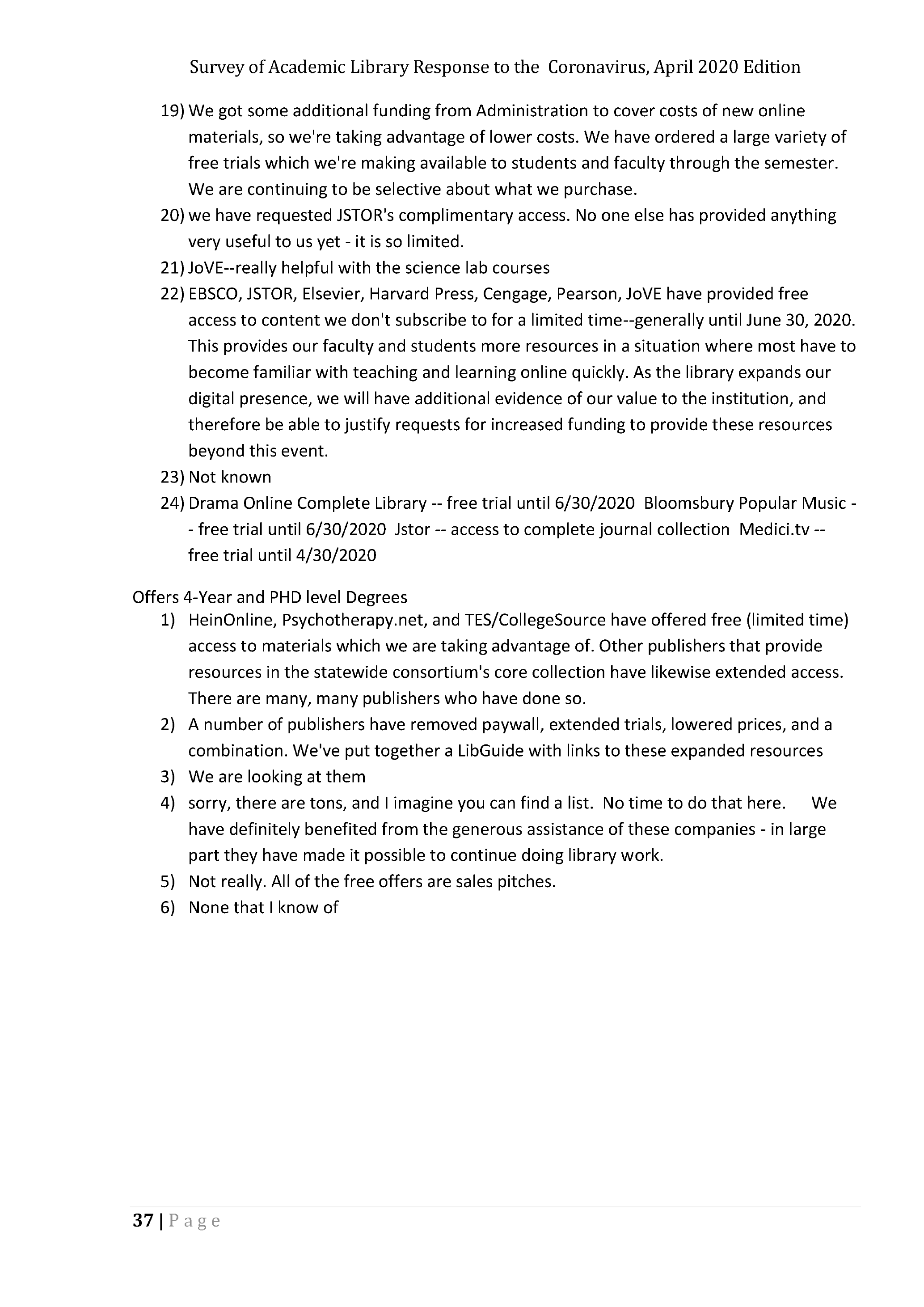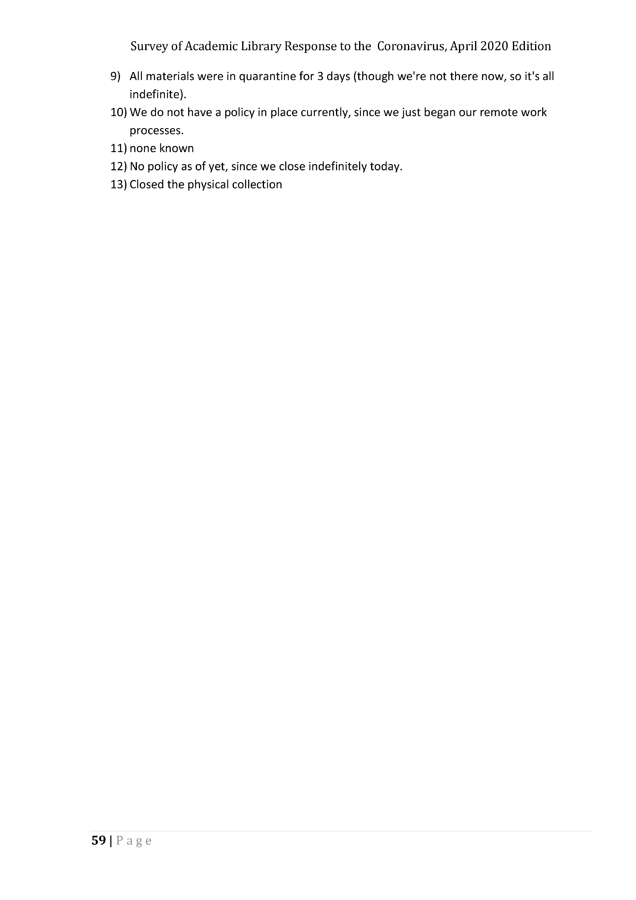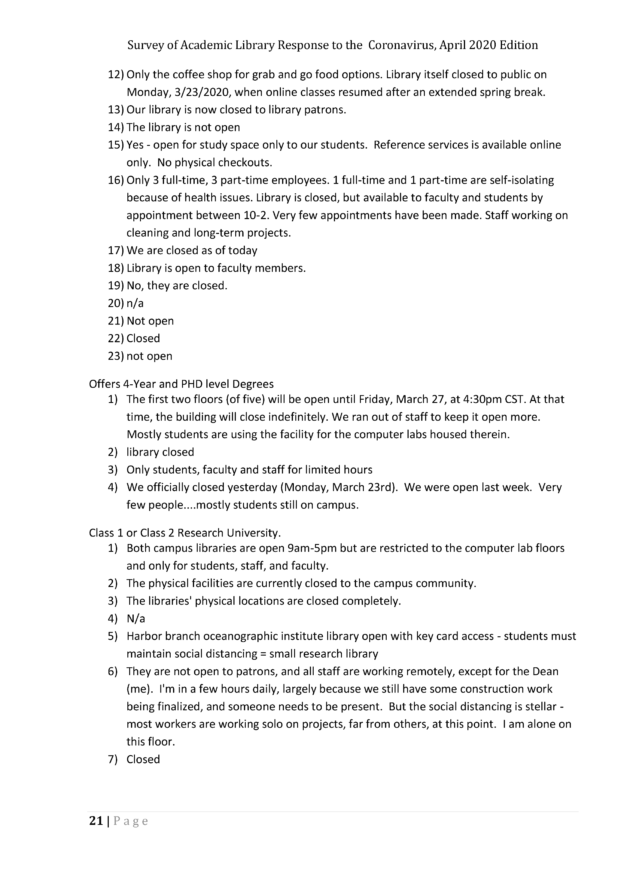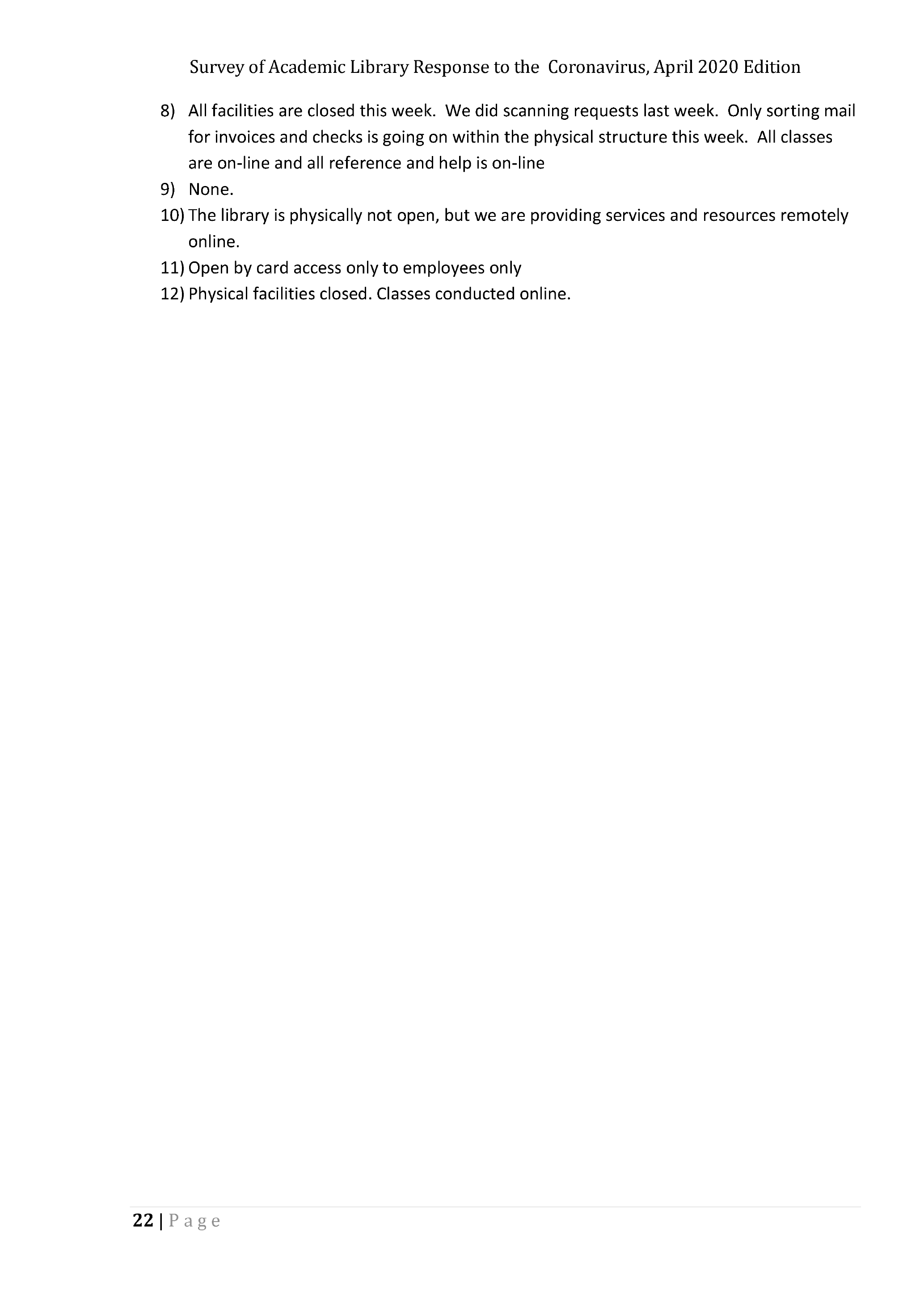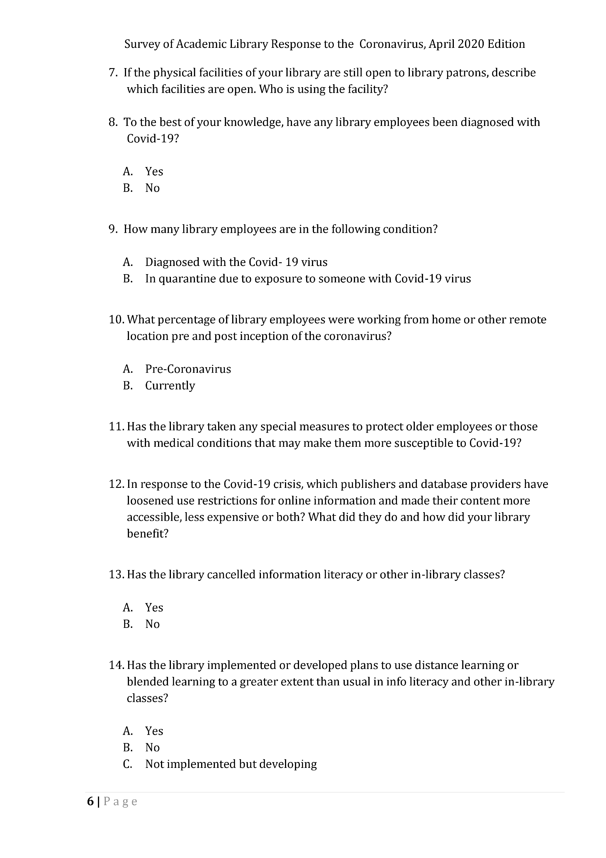 Survey of Academic Library Response to the Coronavirus April 2020 Edition |