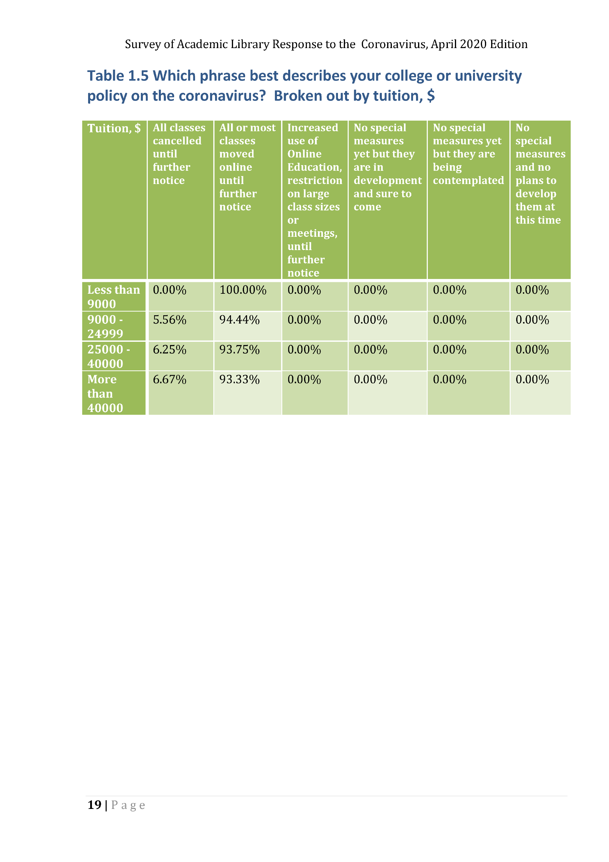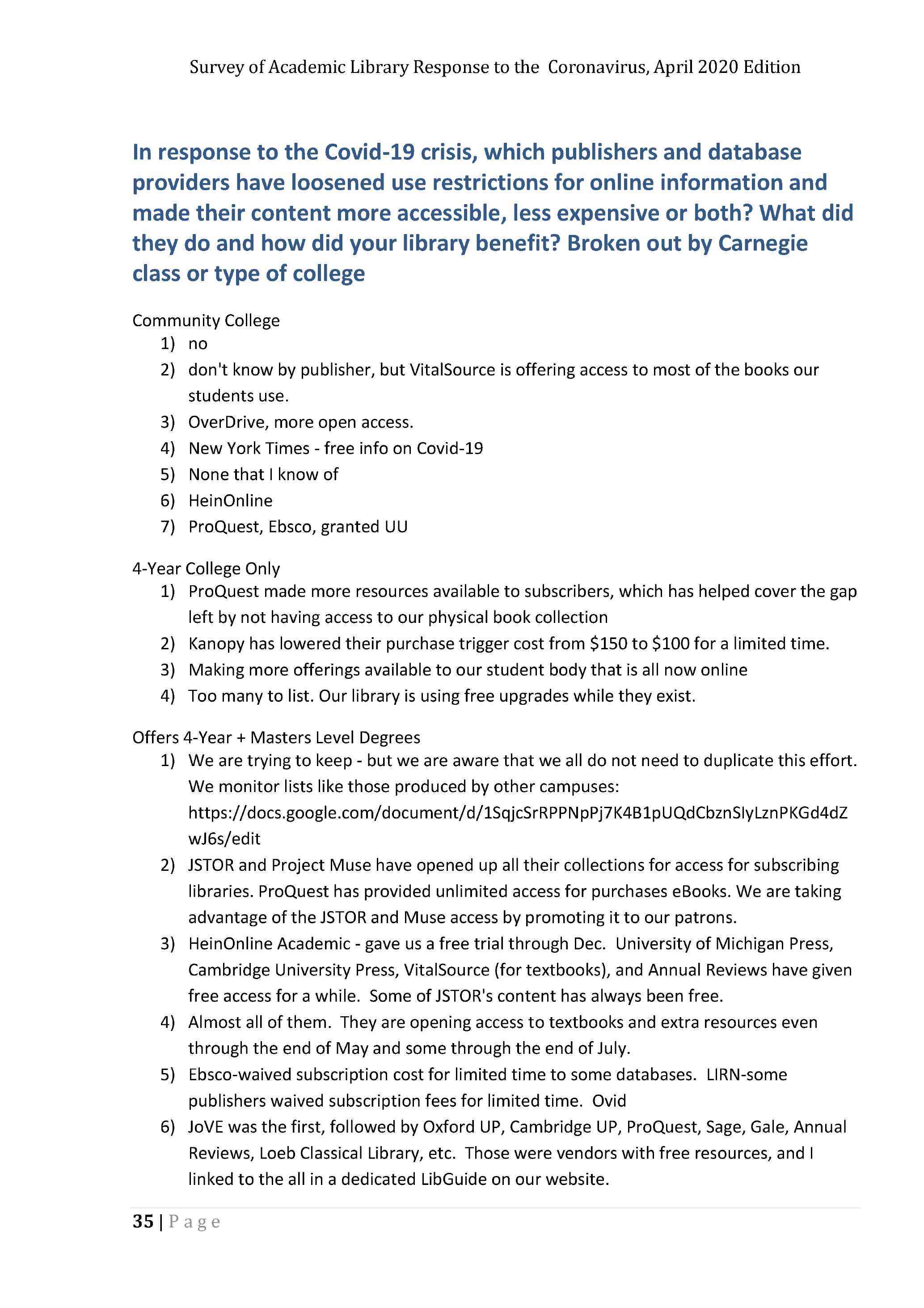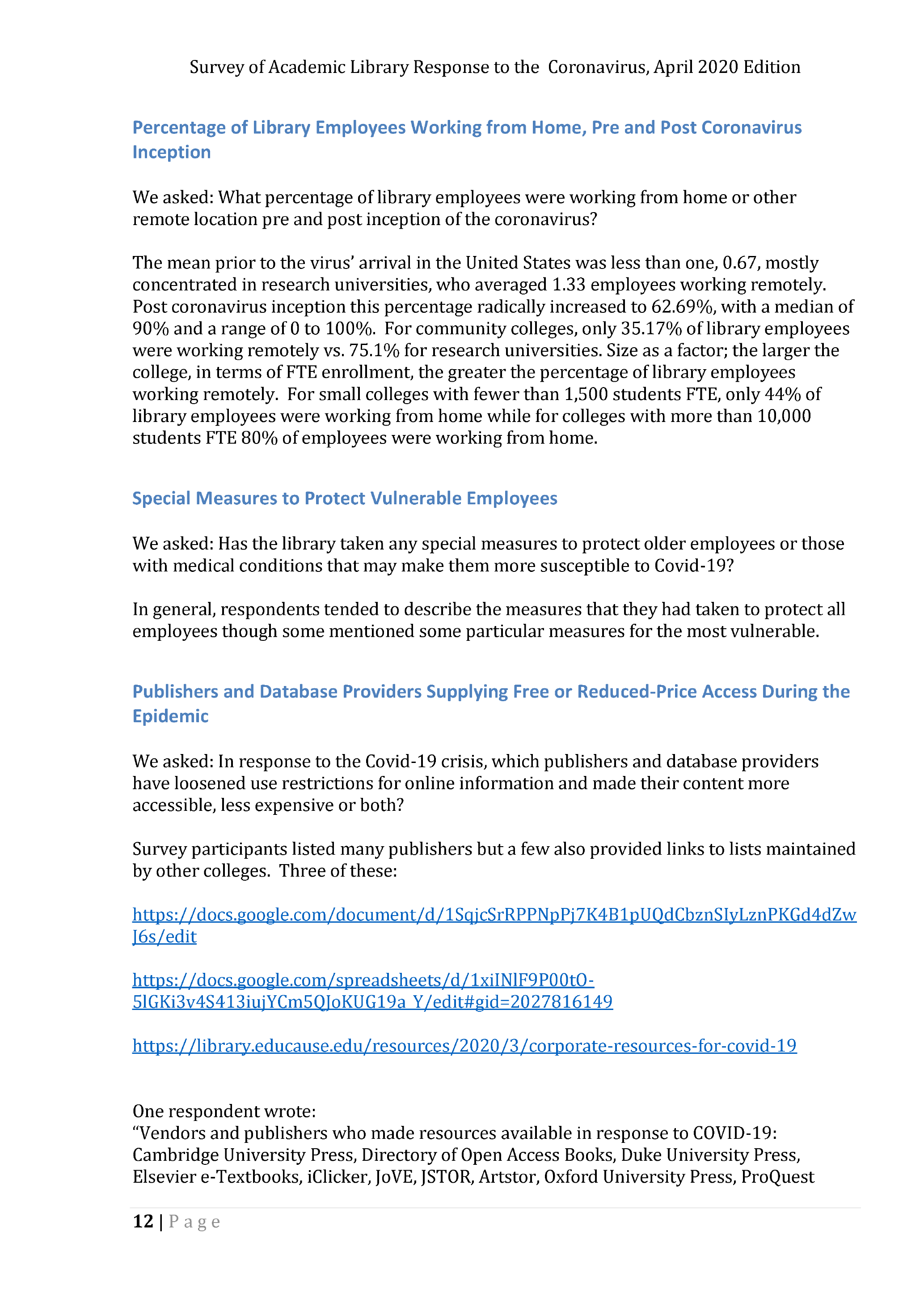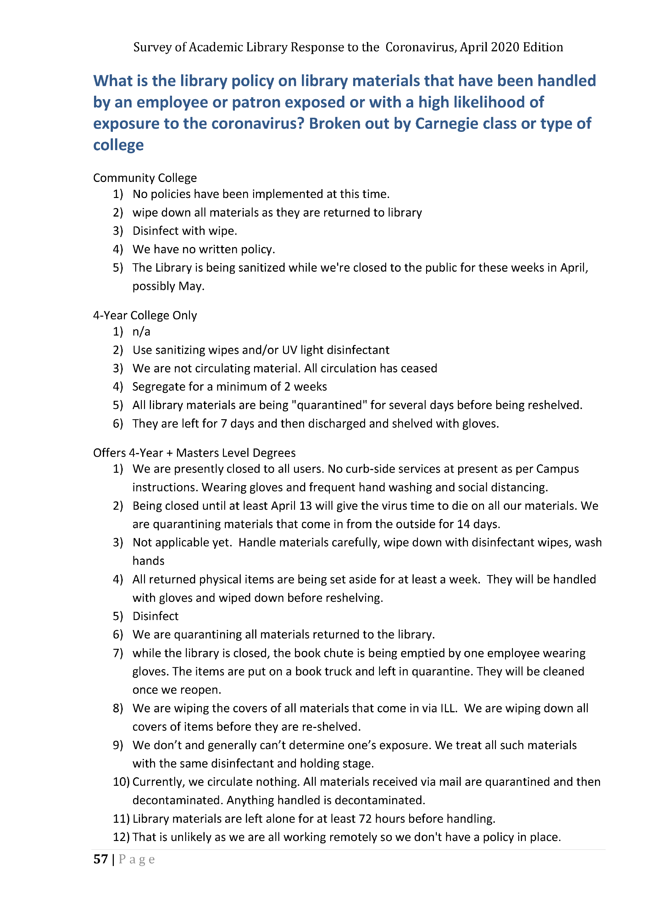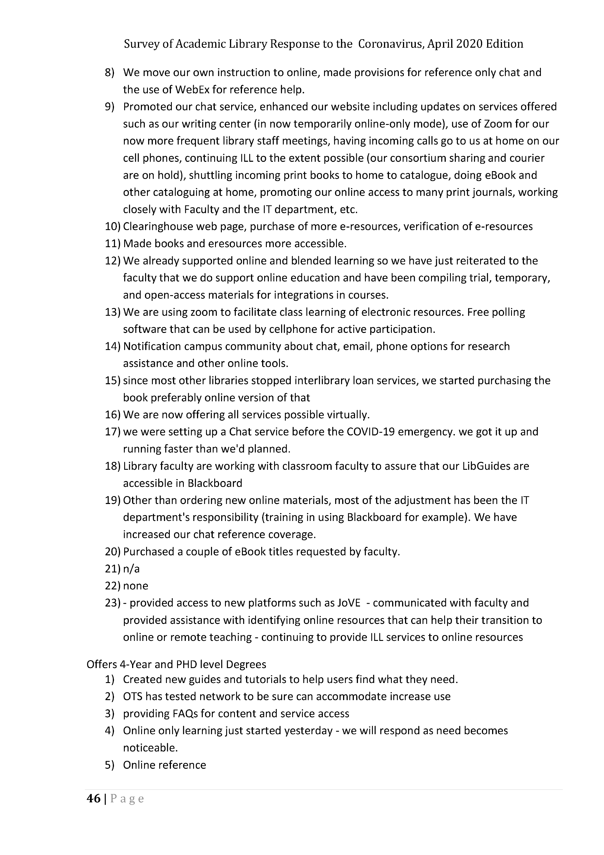 Survey of Academic Library Response to the Coronavirus April 2020 Edition |
