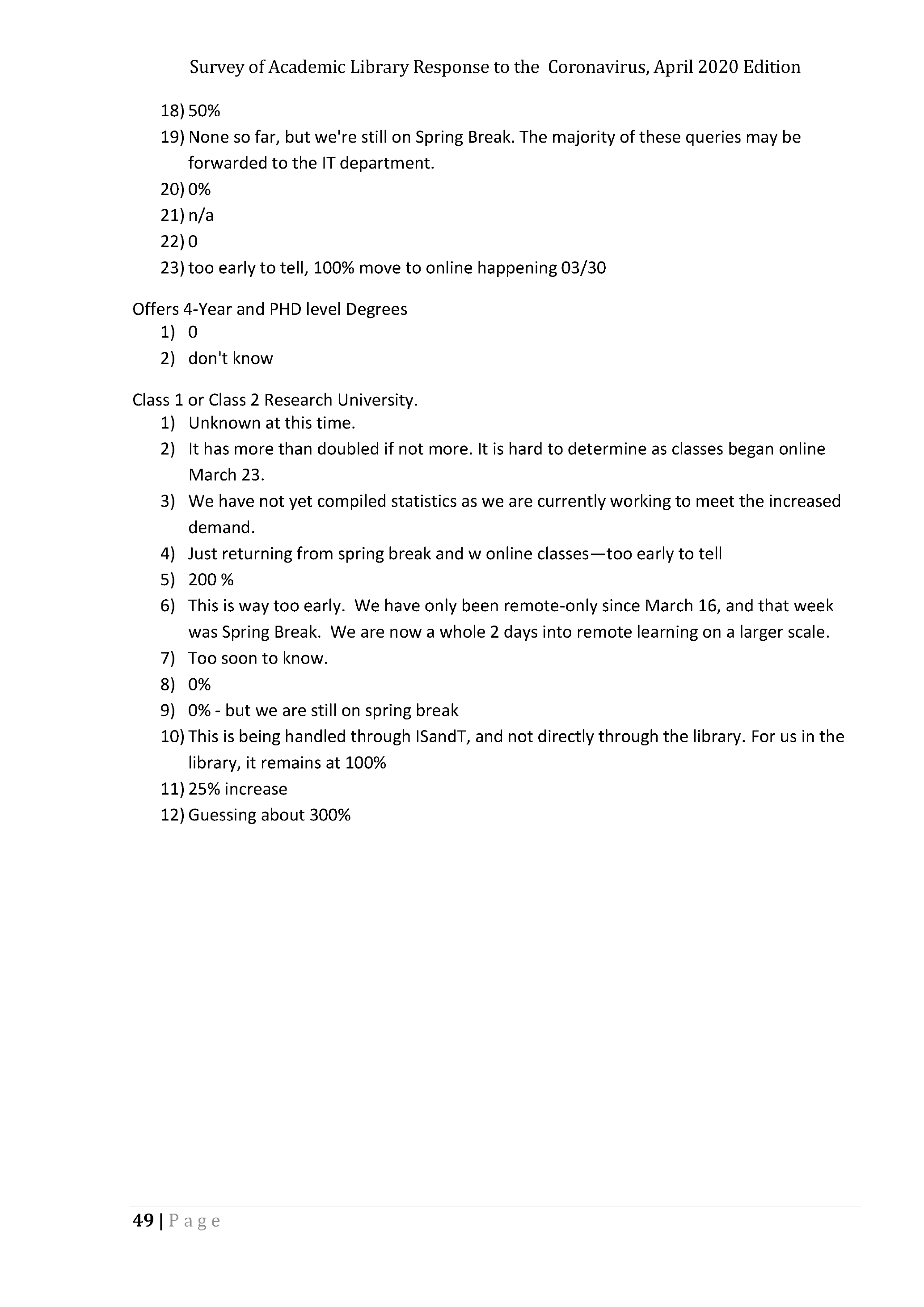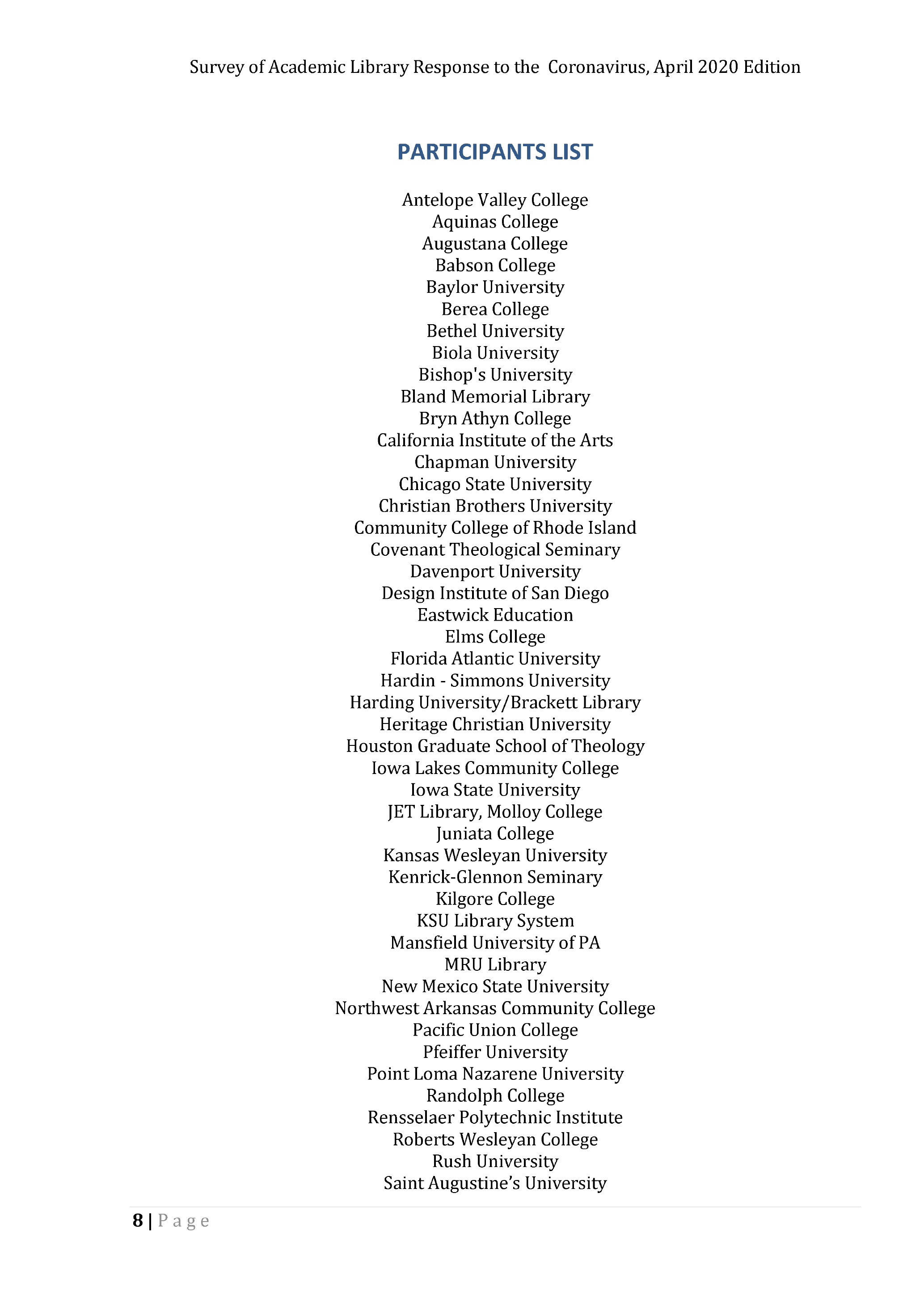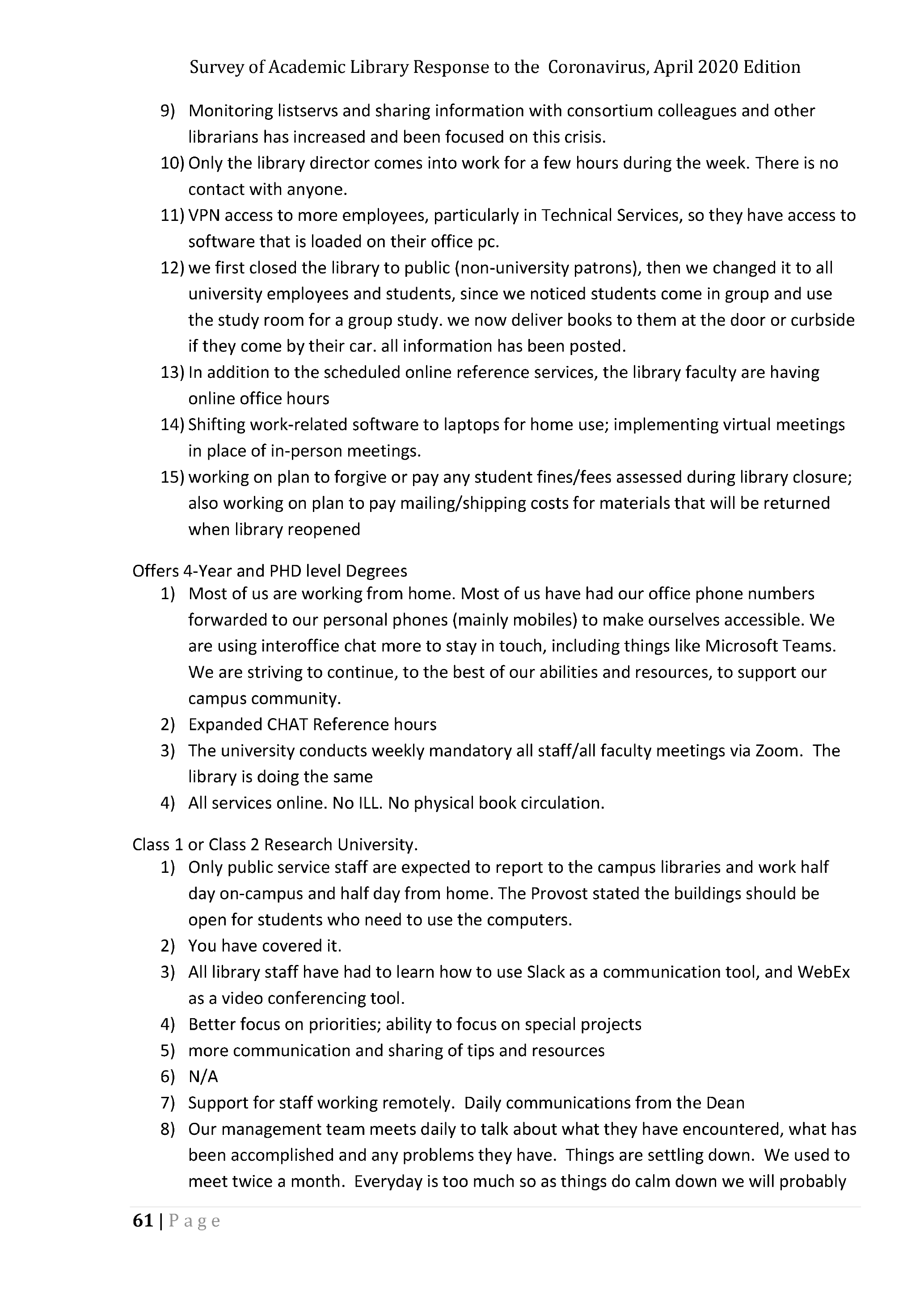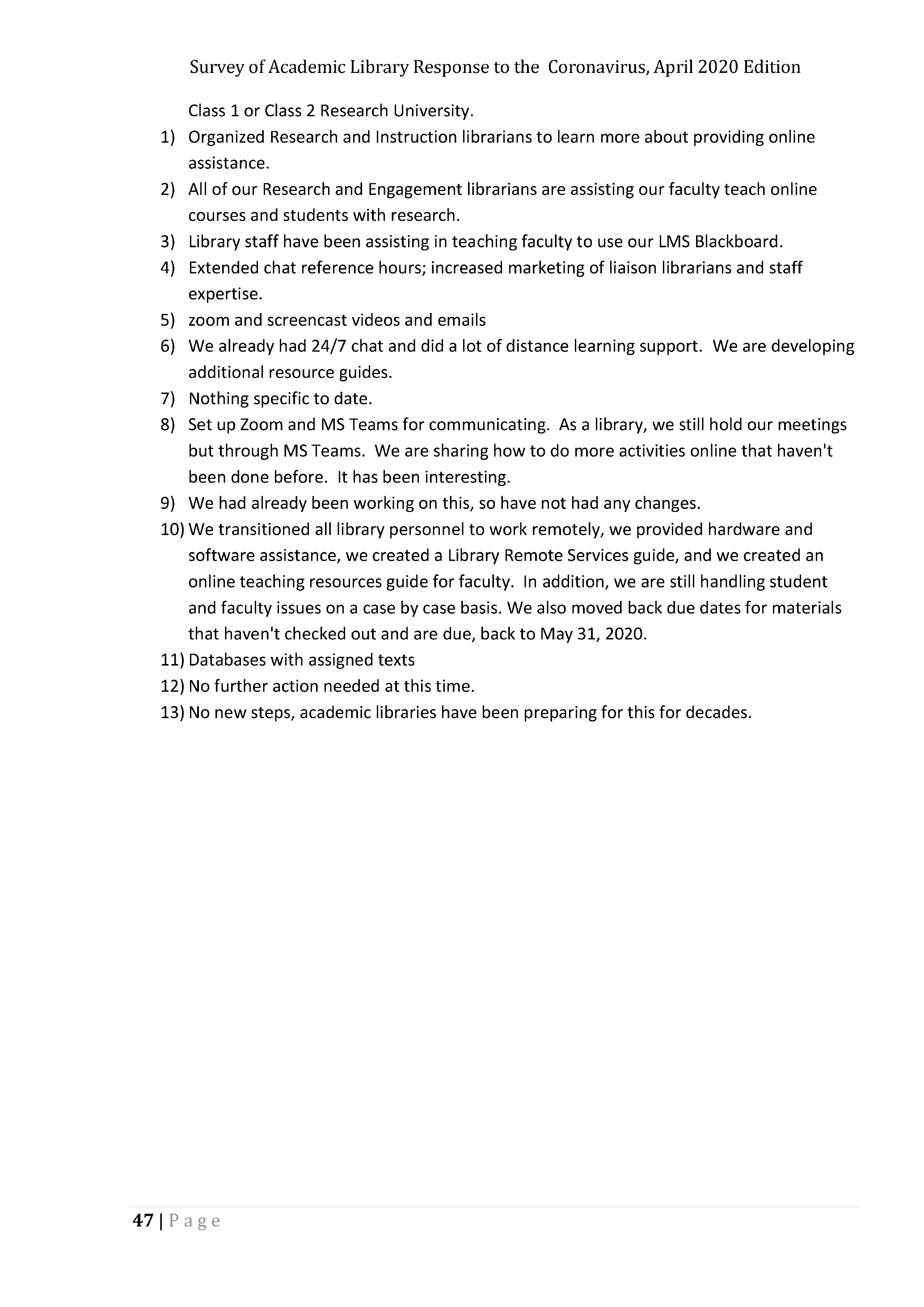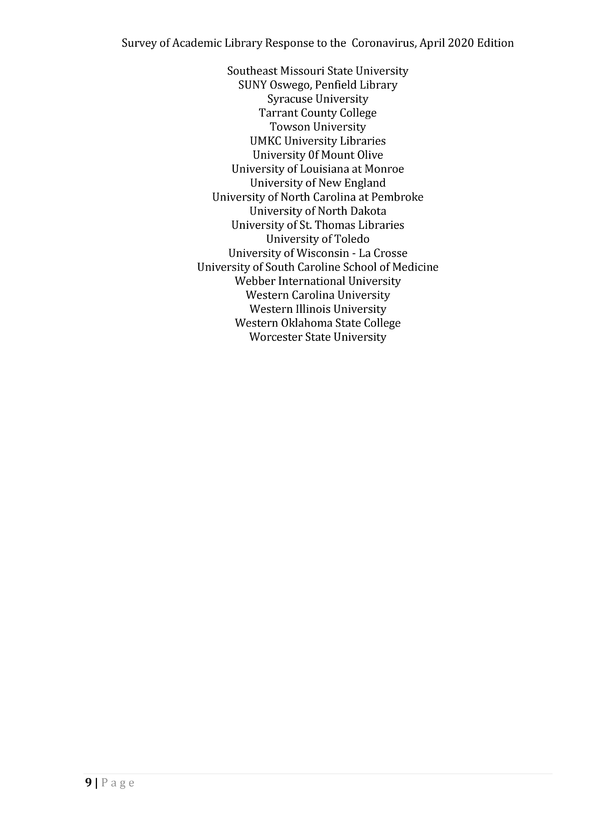 Survey of Academic Library Response to the Coronavirus April 2020 Edition |