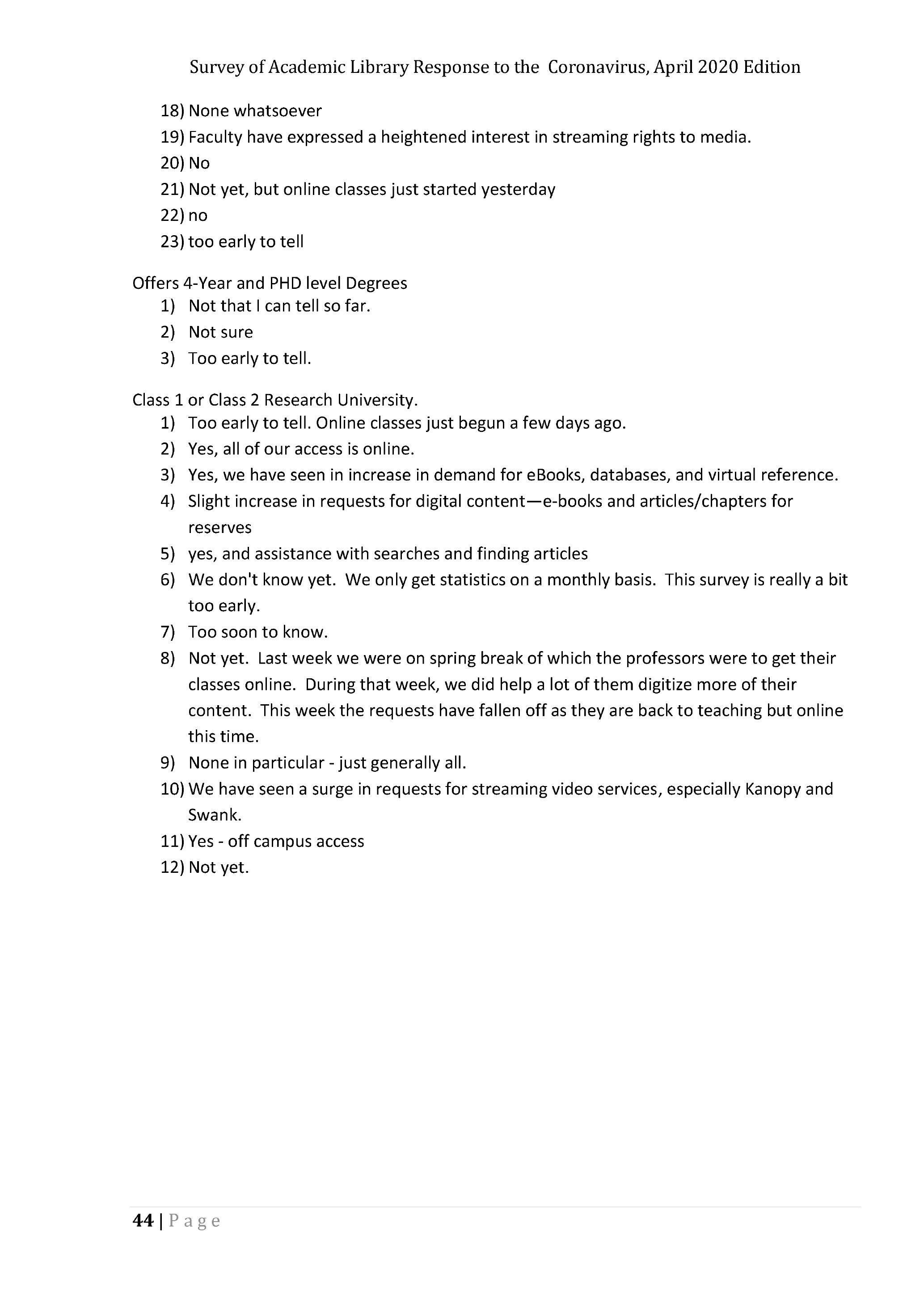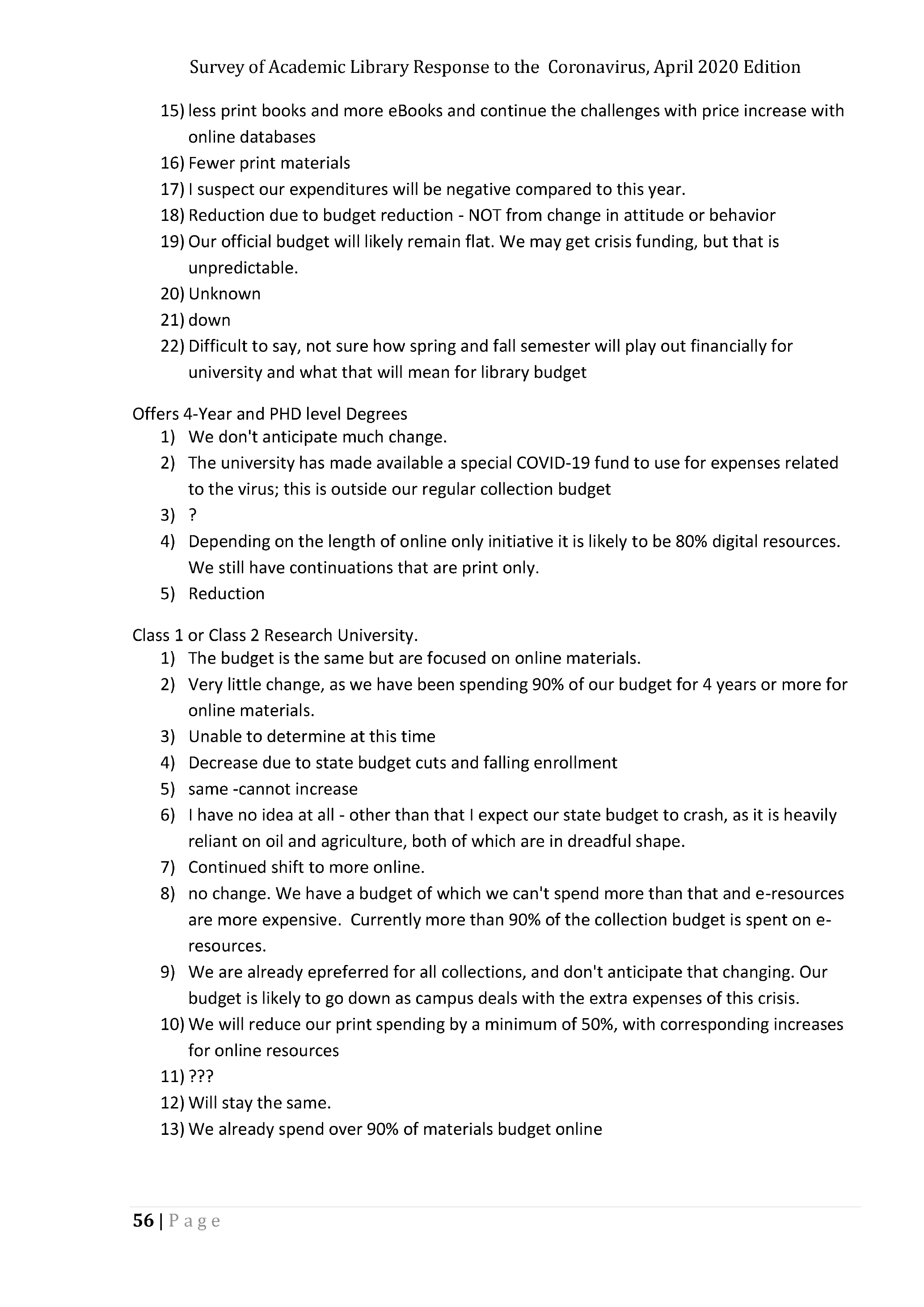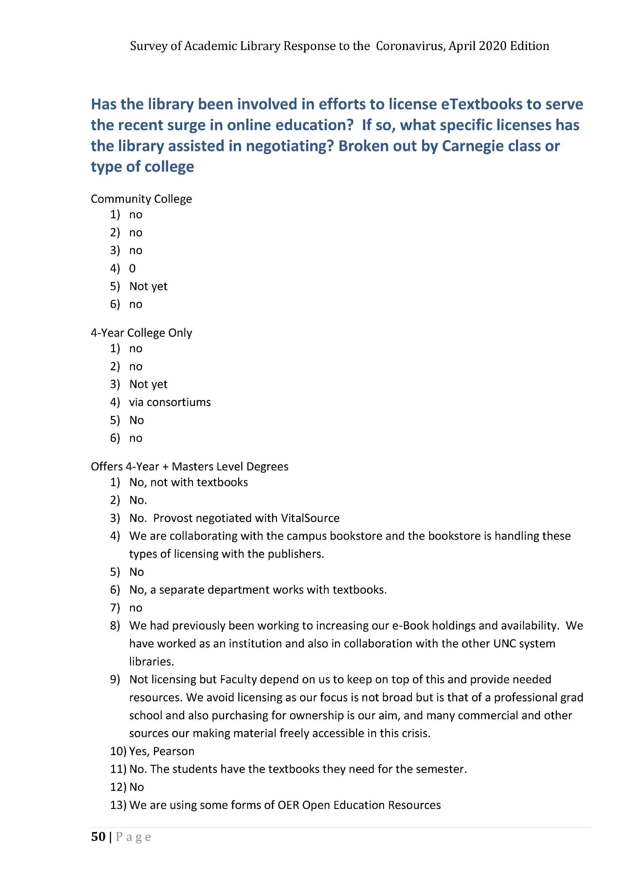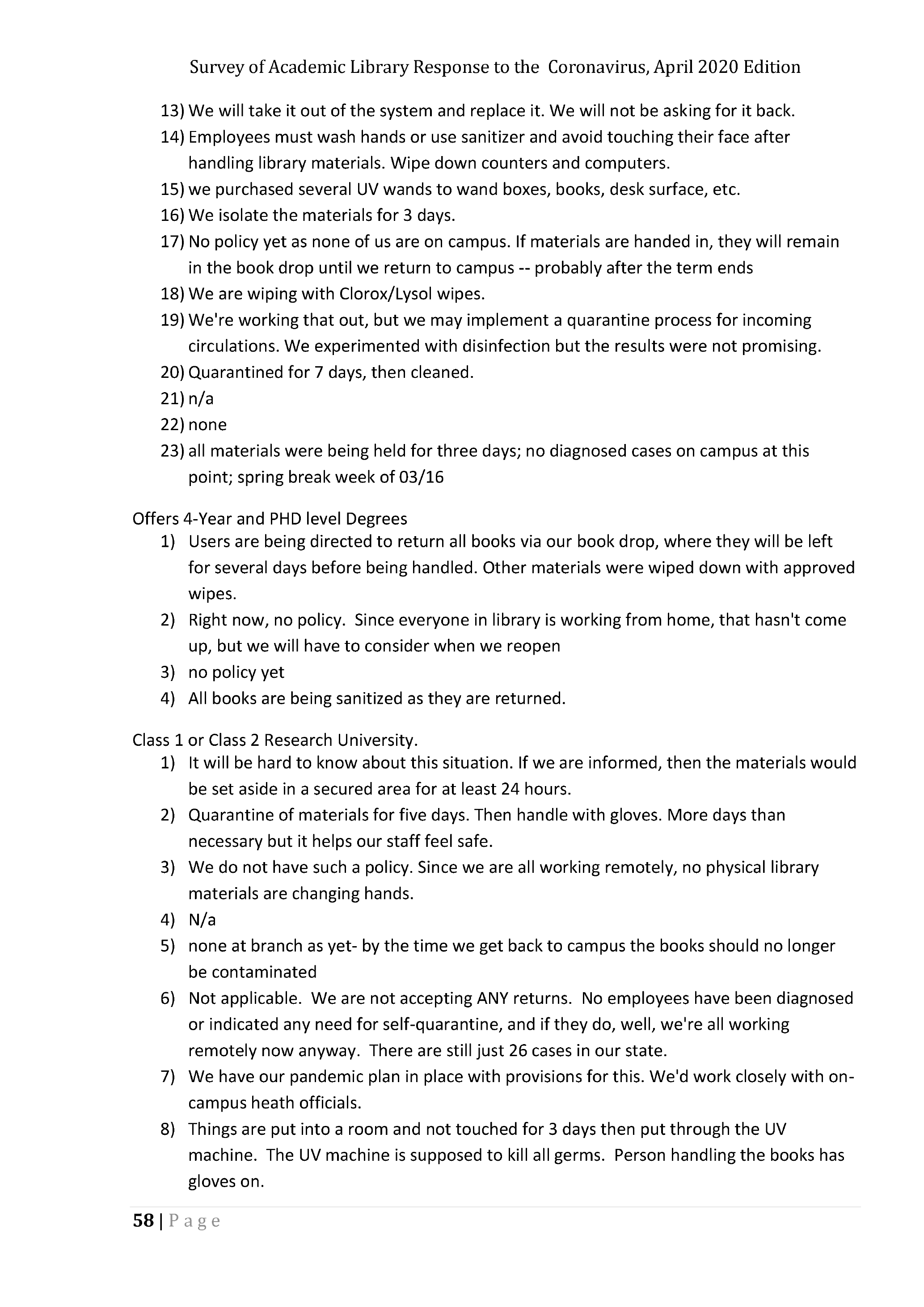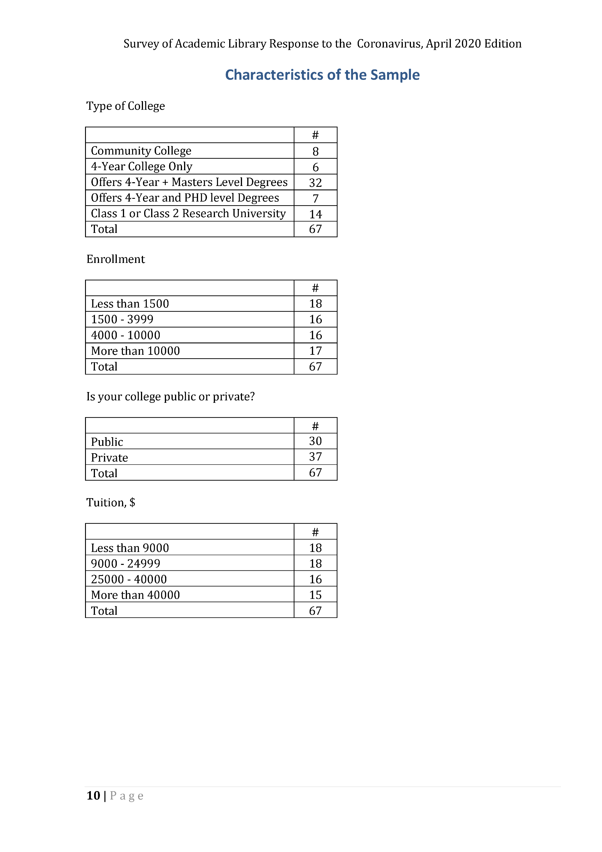 Survey of Academic Library Response to the Coronavirus April 2020 Edition |
