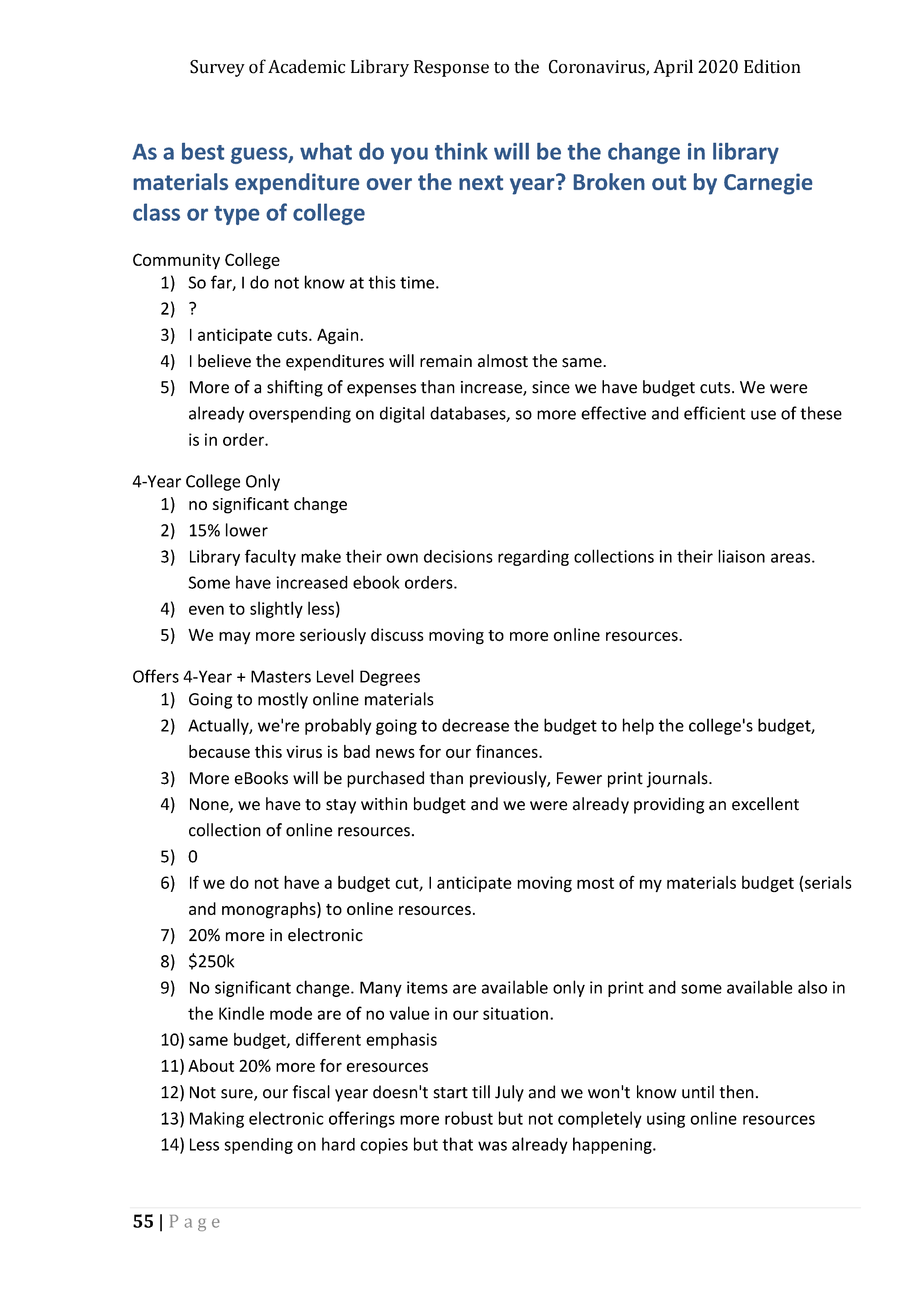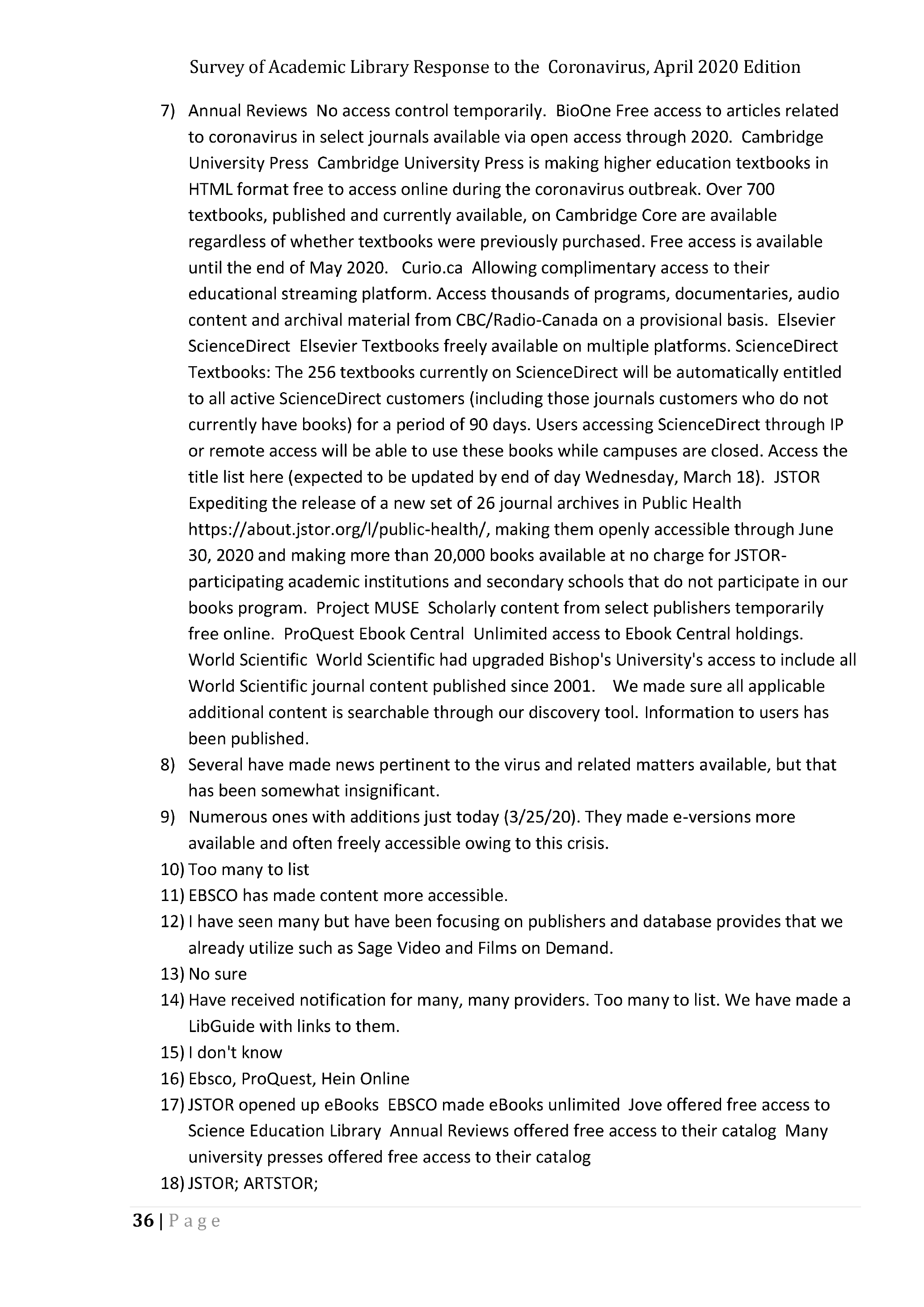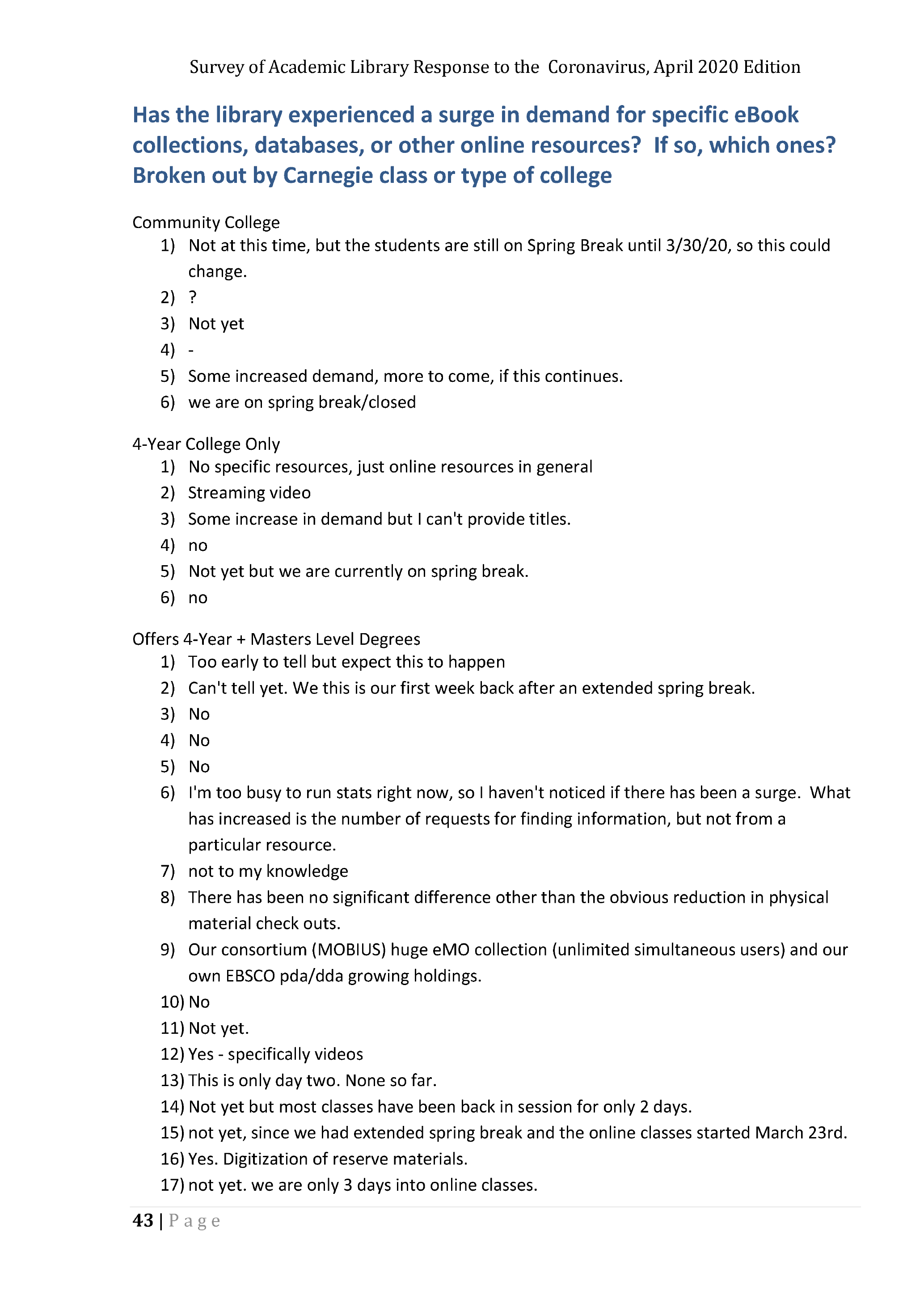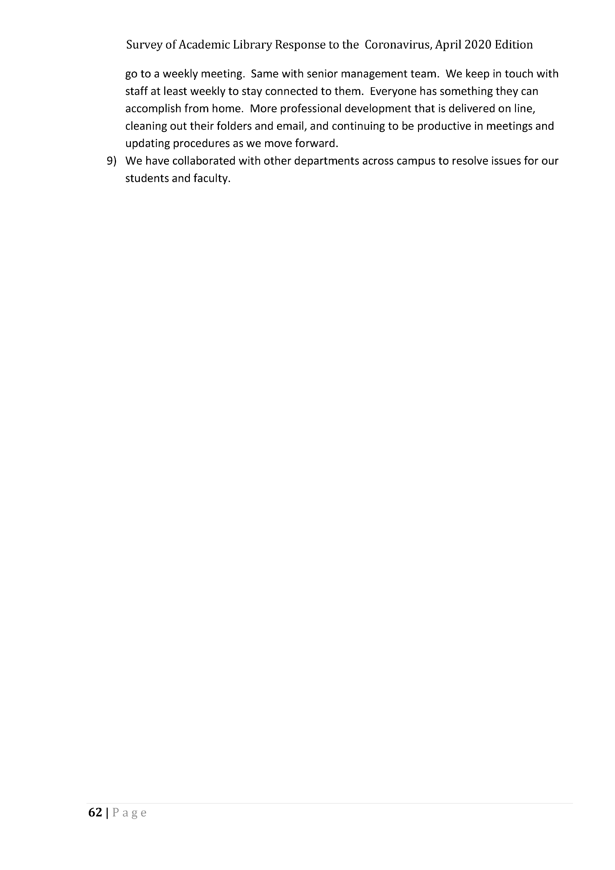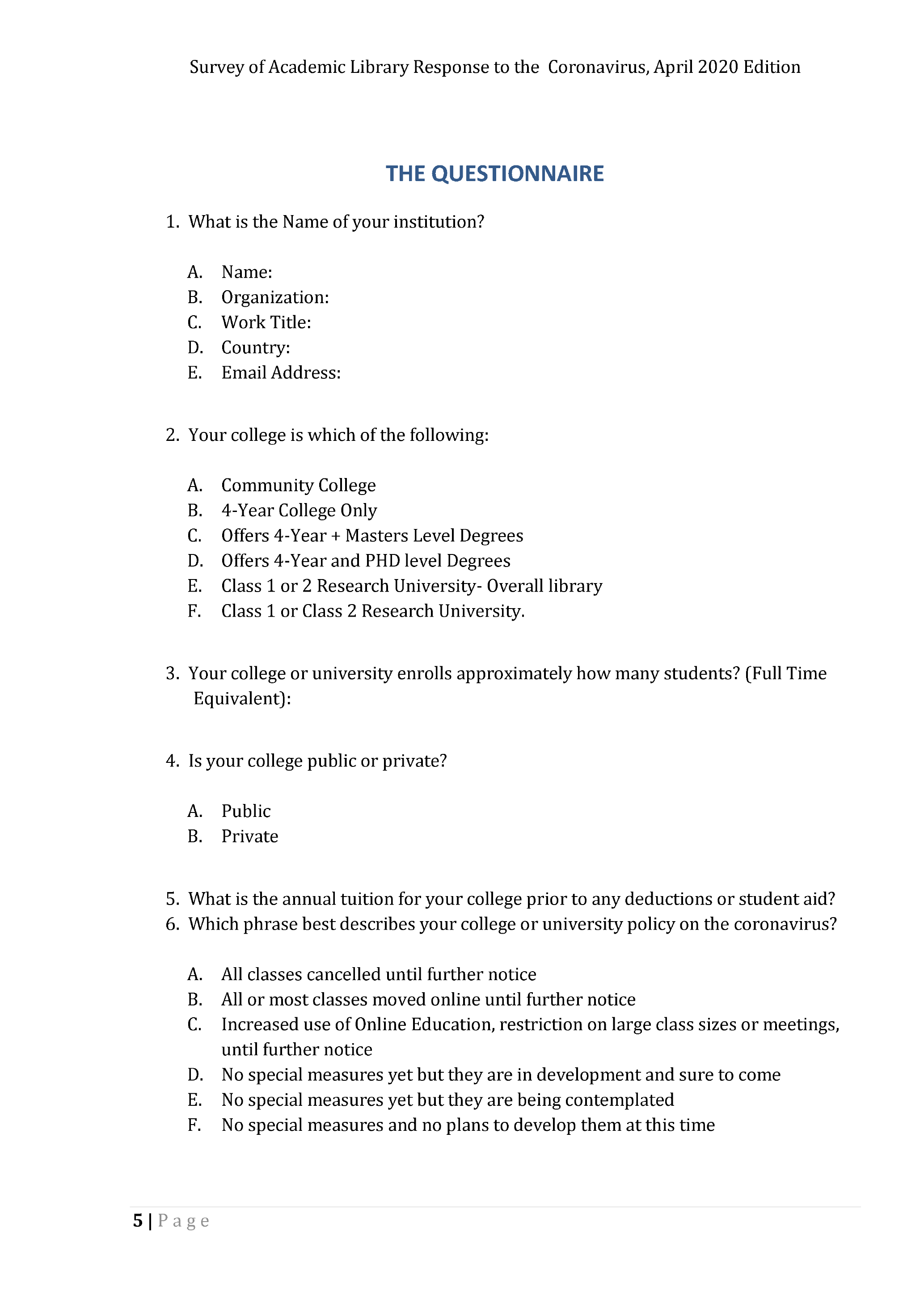 Survey of Academic Library Response to the Coronavirus April 2020 Edition |