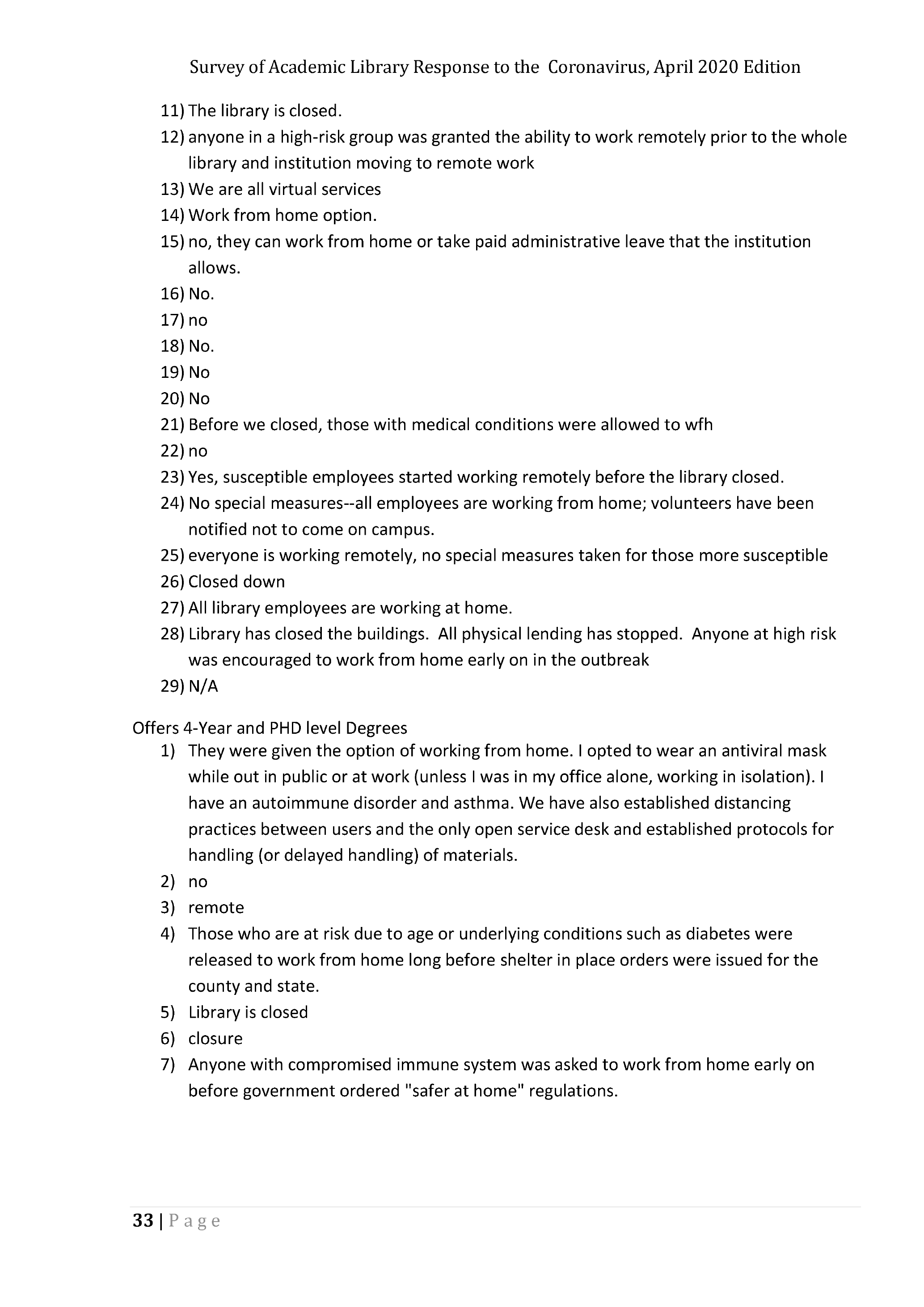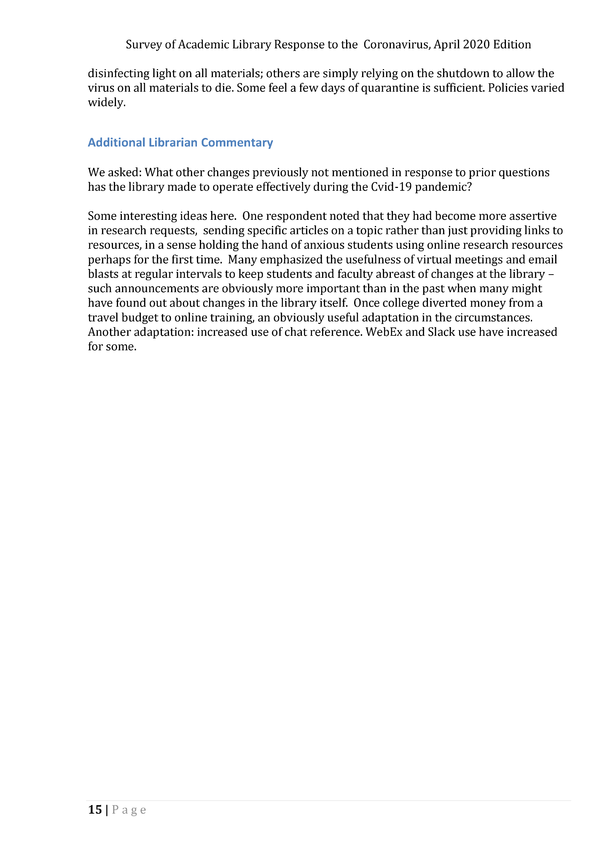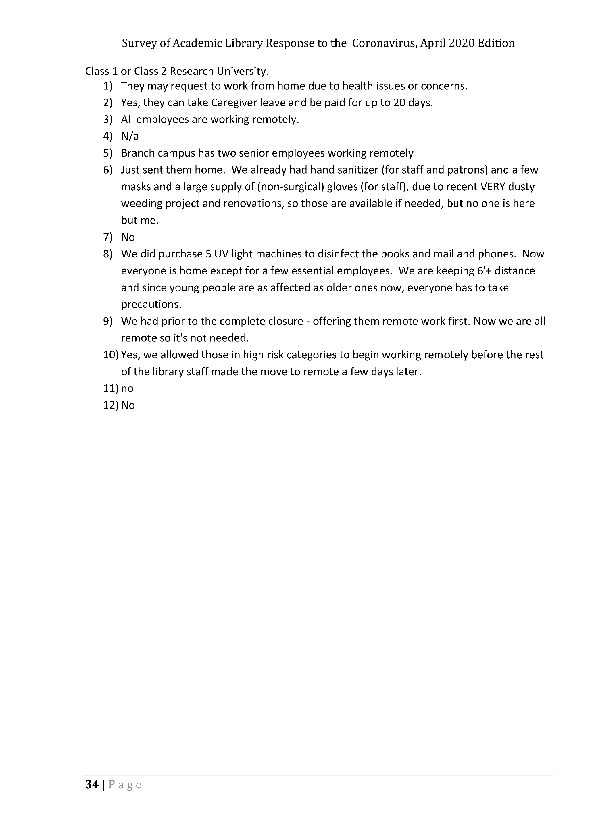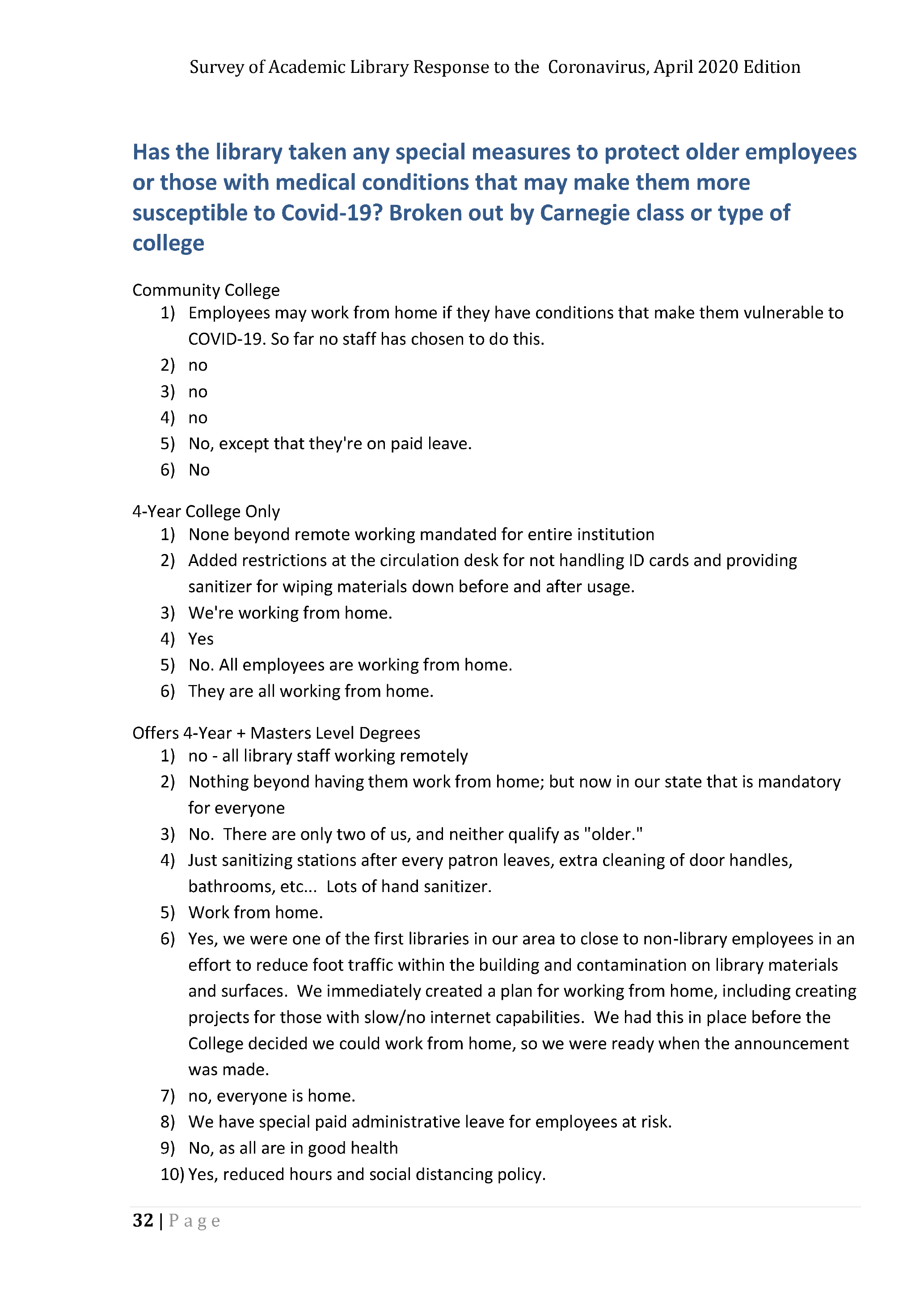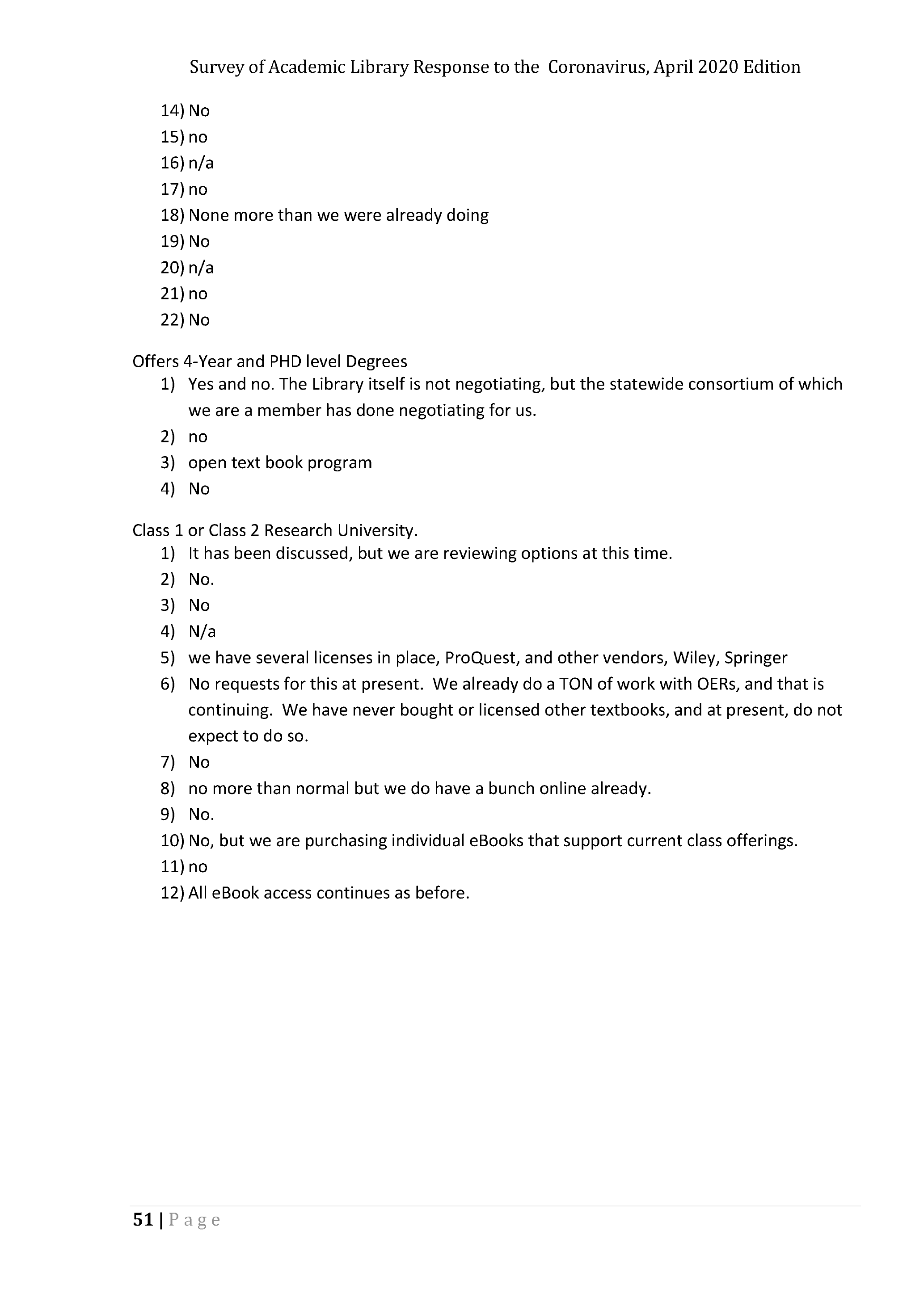 Survey of Academic Library Response to the Coronavirus April 2020 Edition |