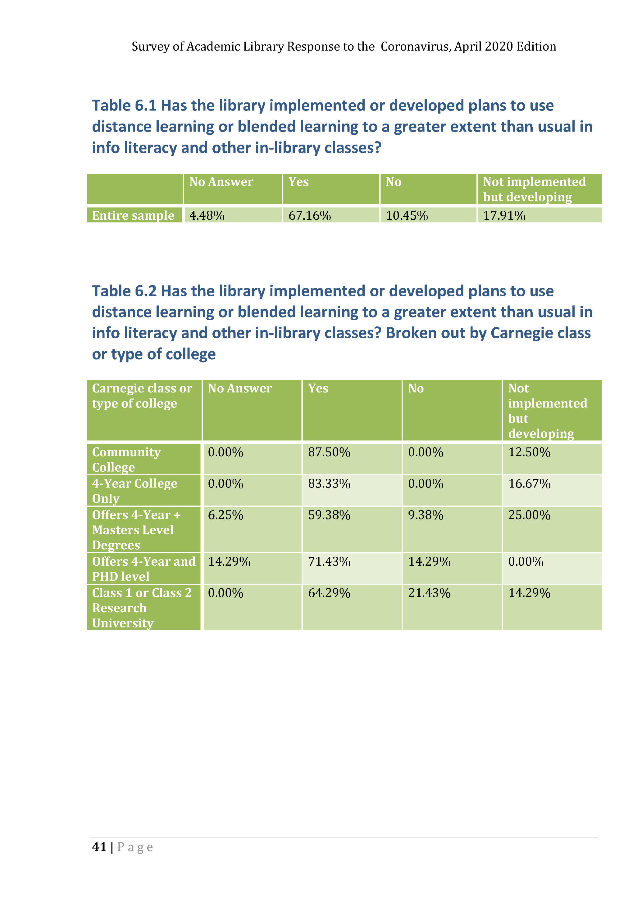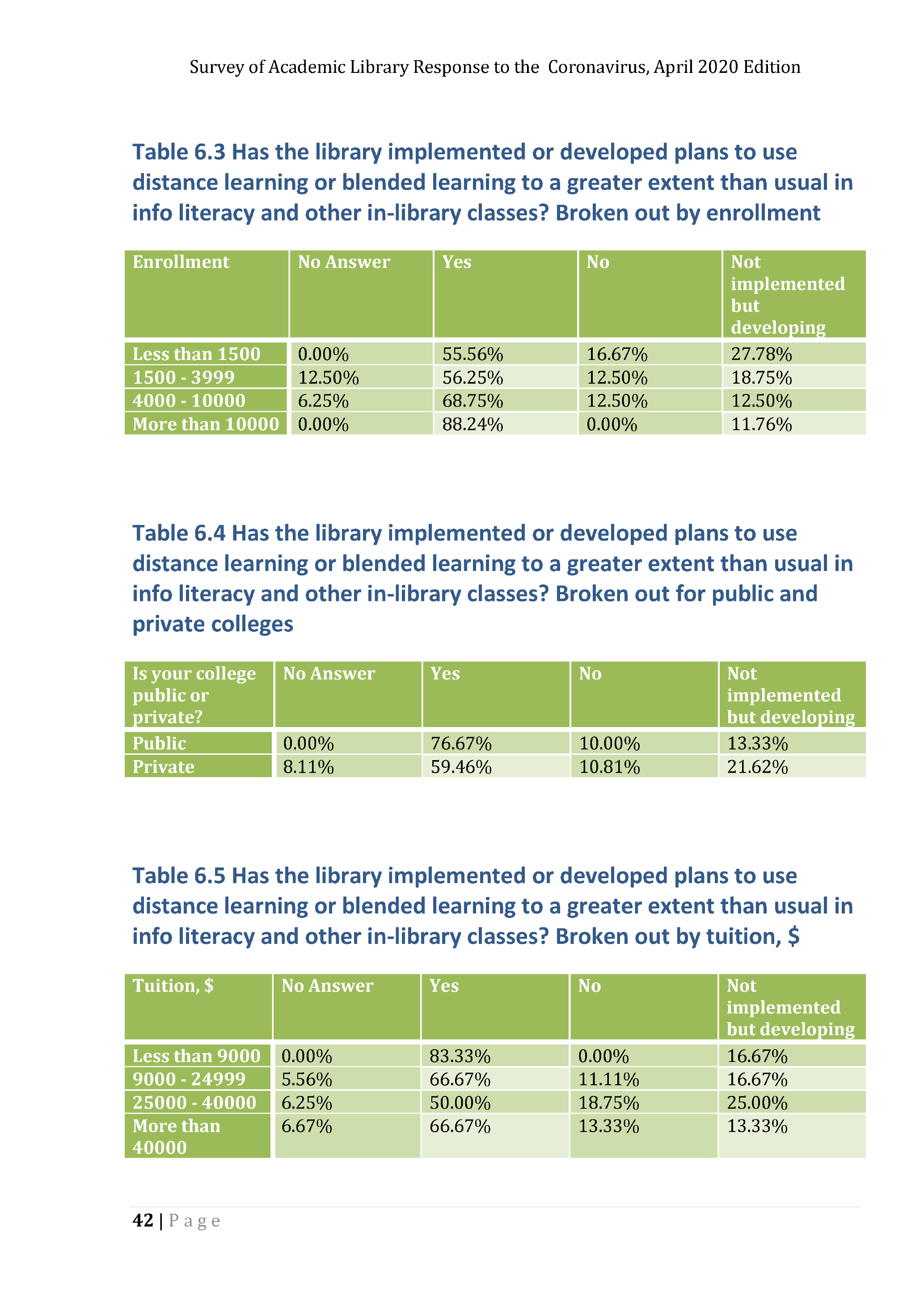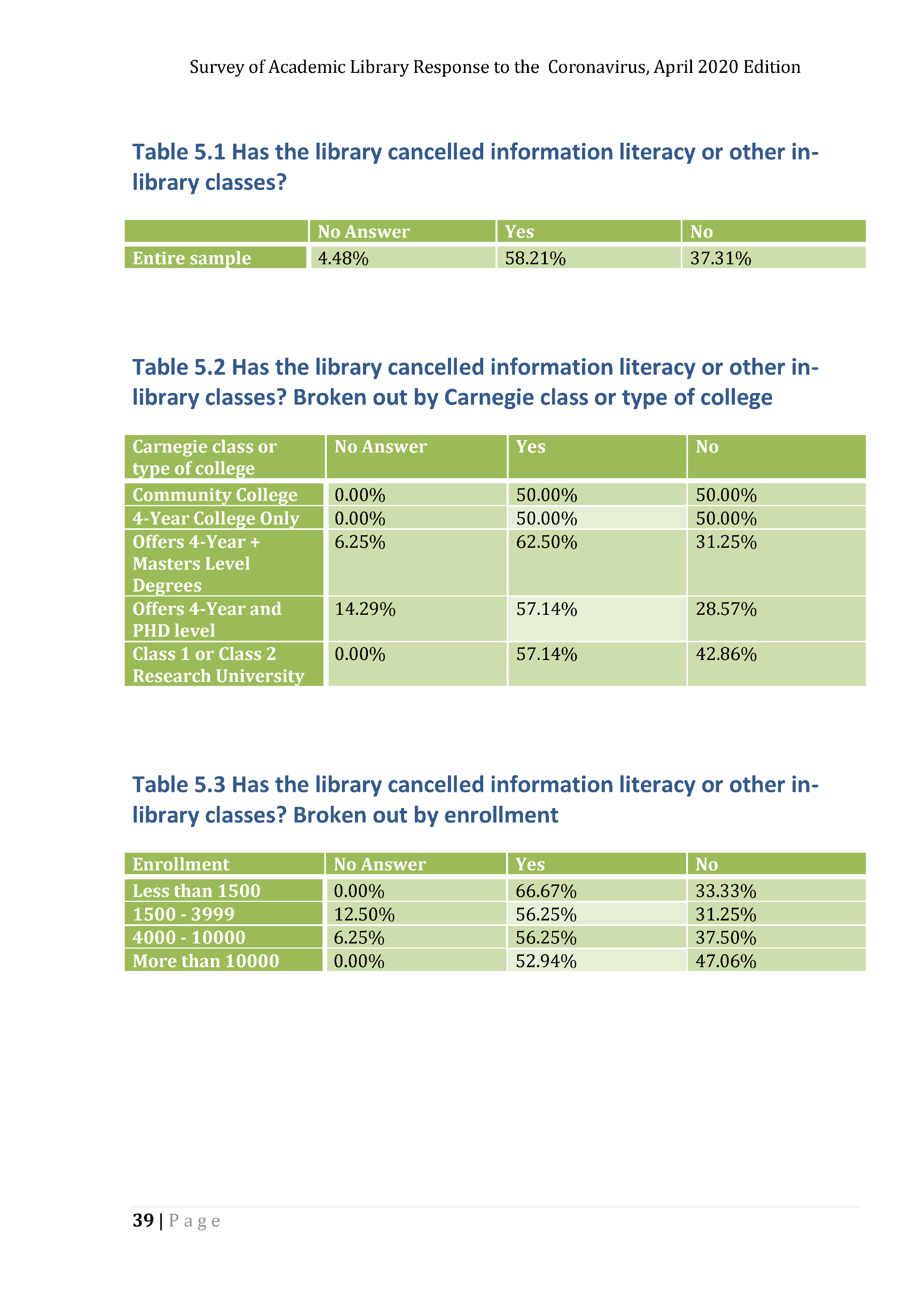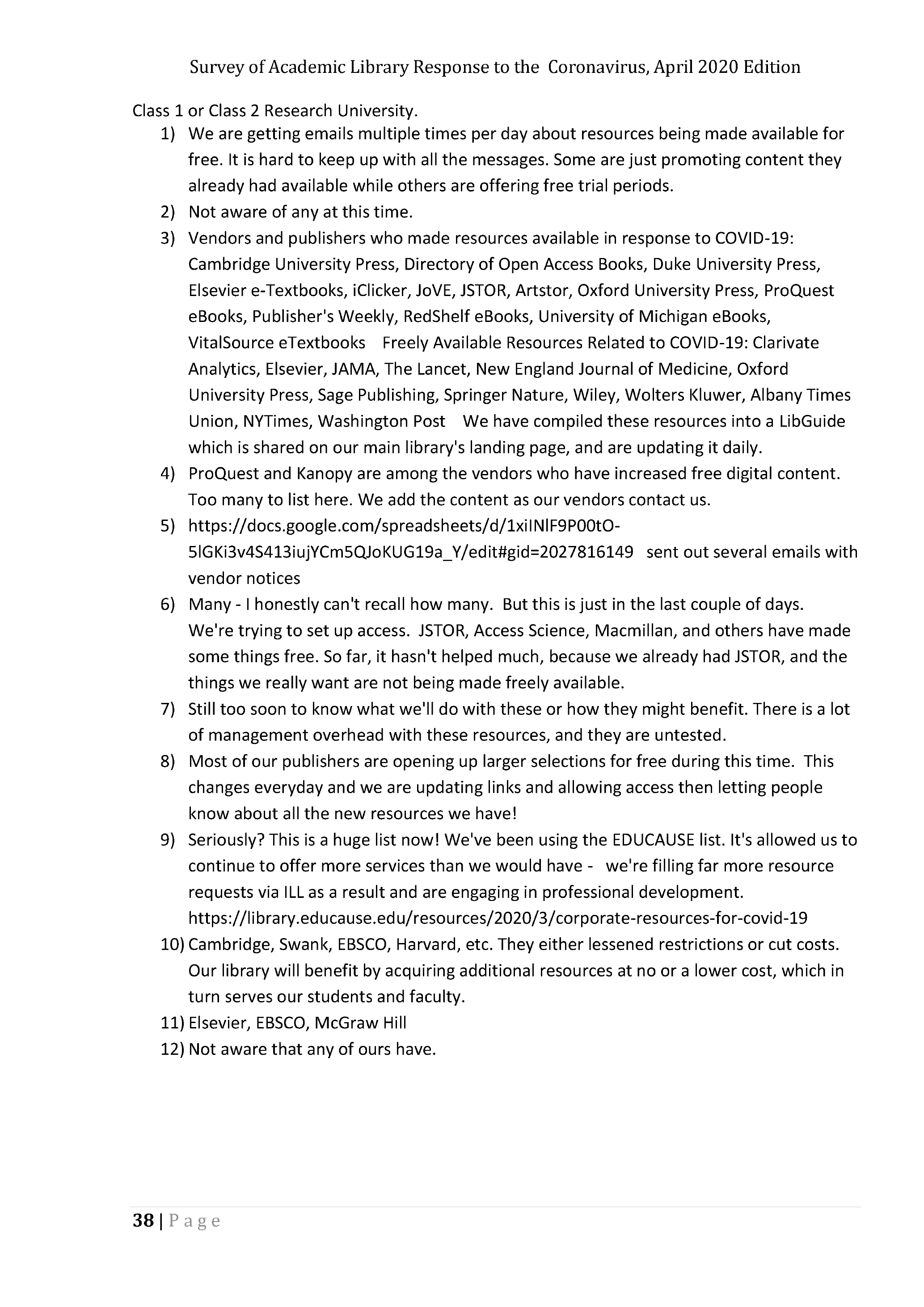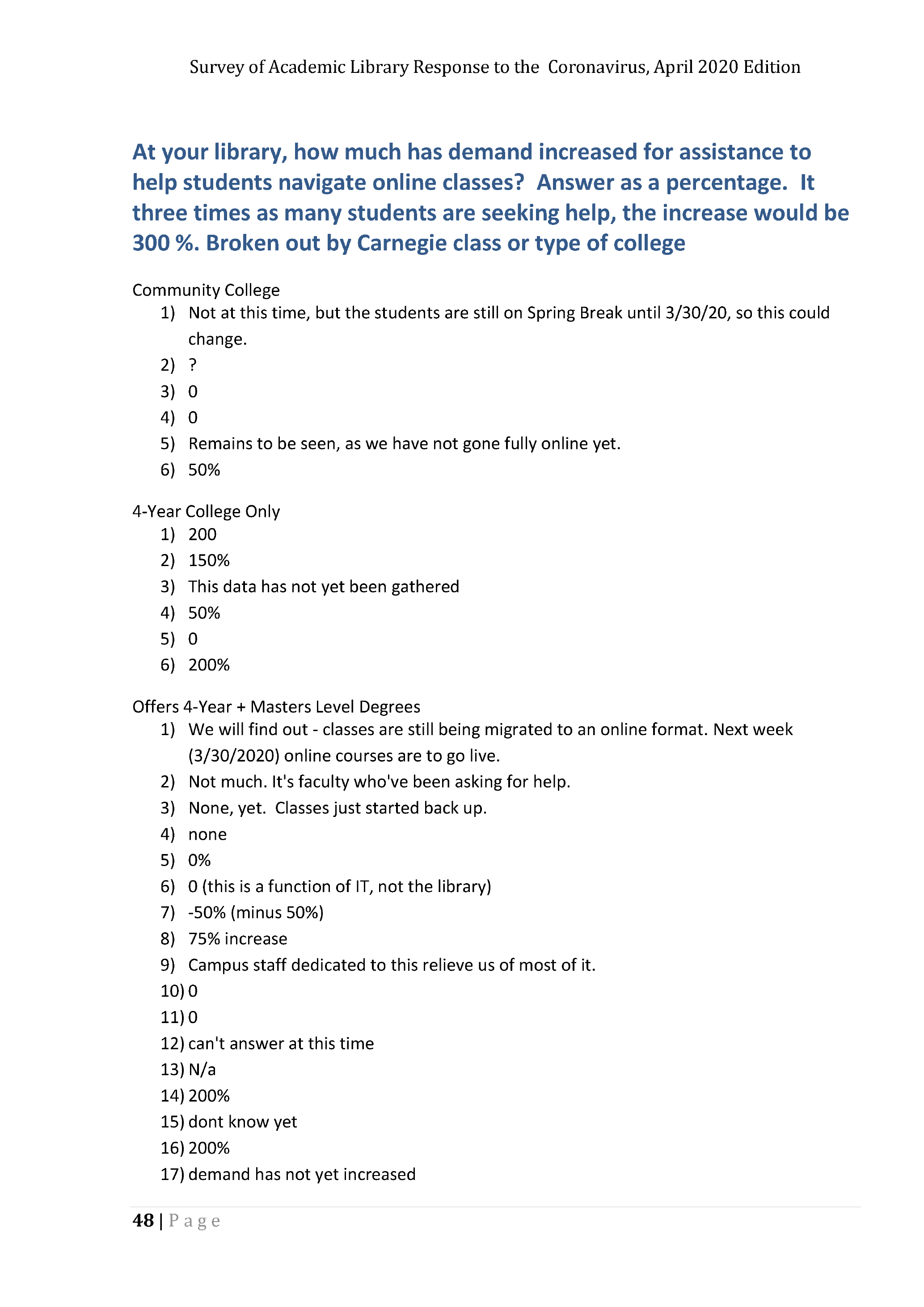 Survey of Academic Library Response to the Coronavirus April 2020 Edition |