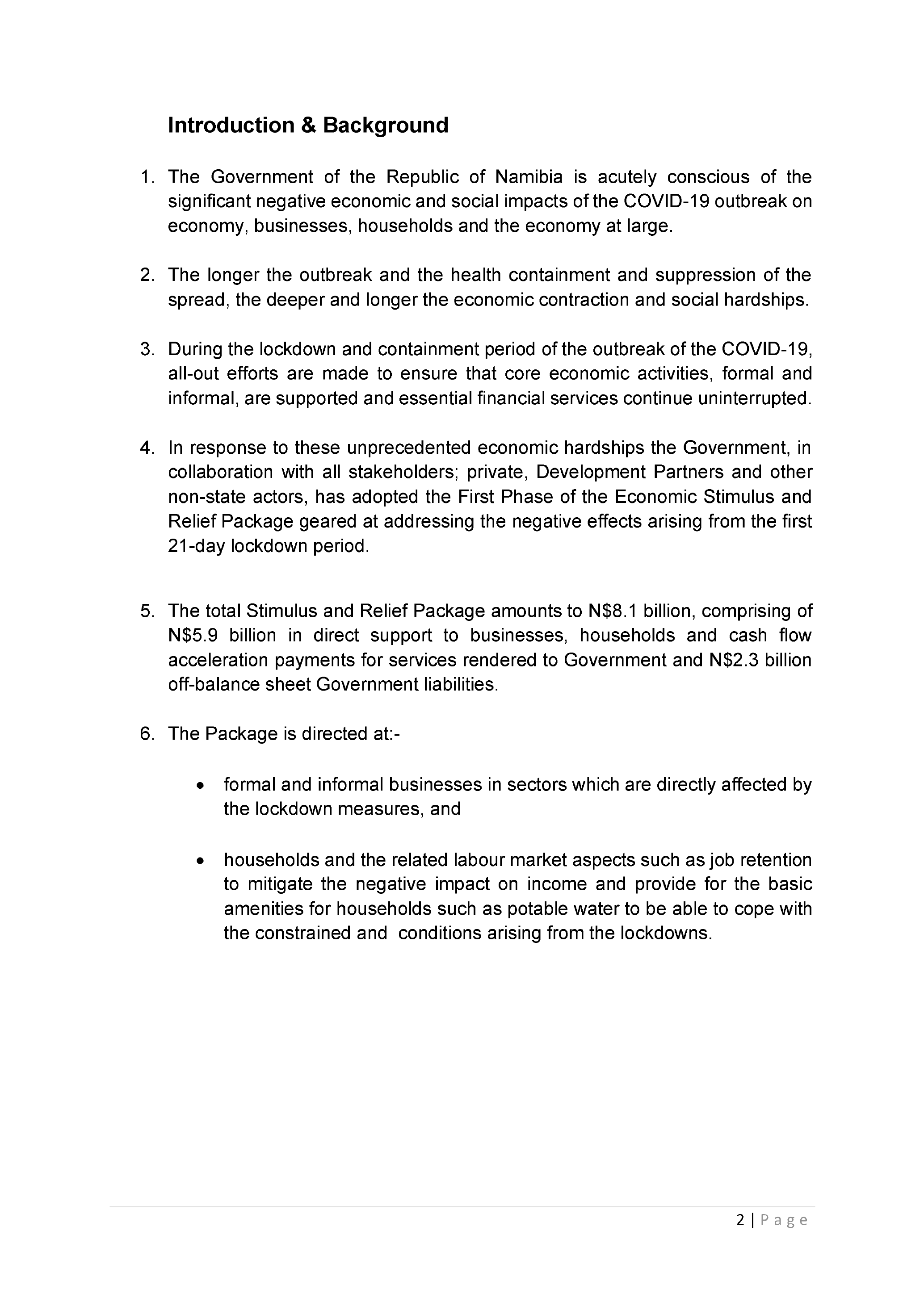 . The total Stimulus and Relief Package amounts to N$8.1 billion, comprising of