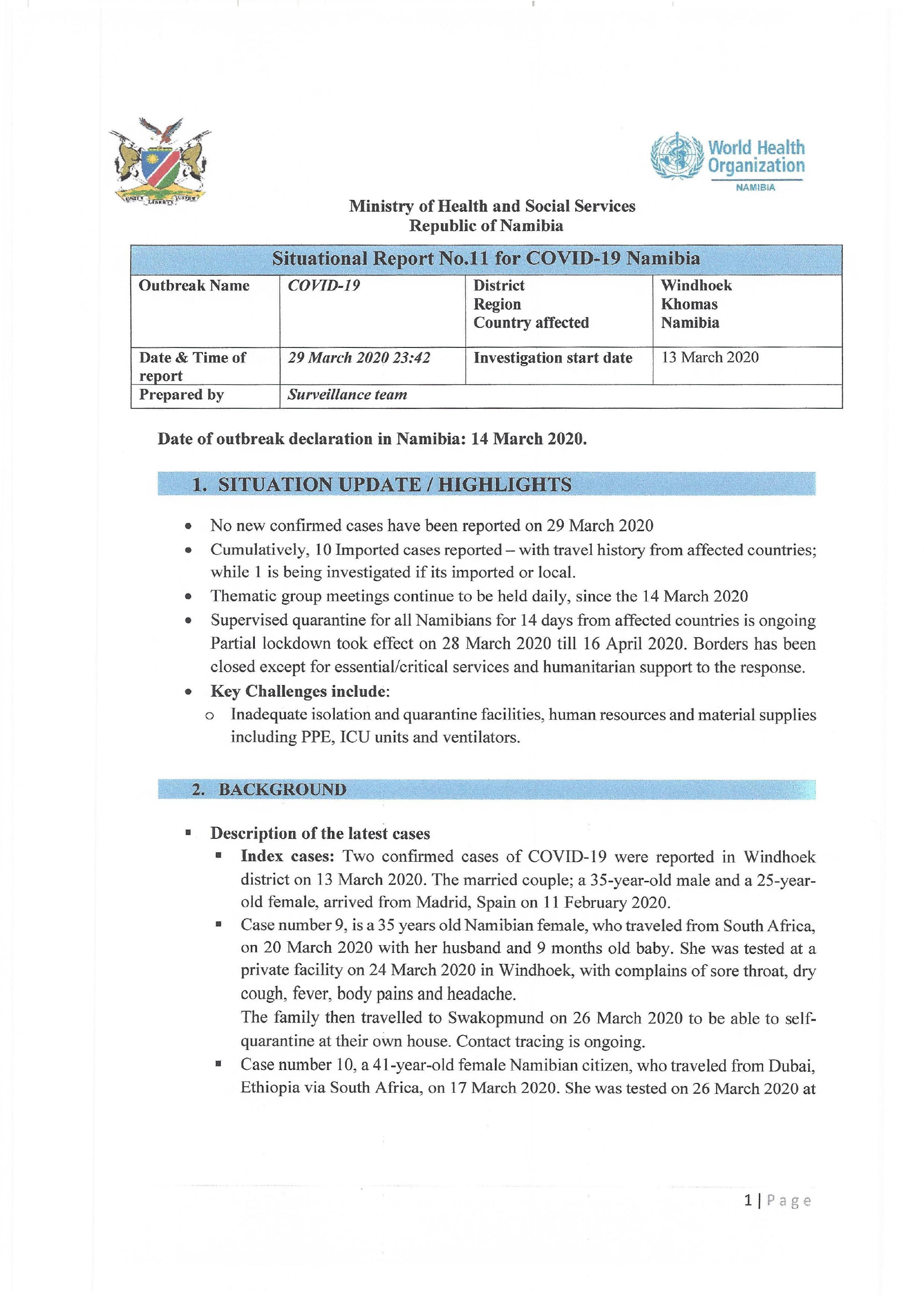 = Index cases: Two confirmed cases of COVID-19 were reported in Windhoek