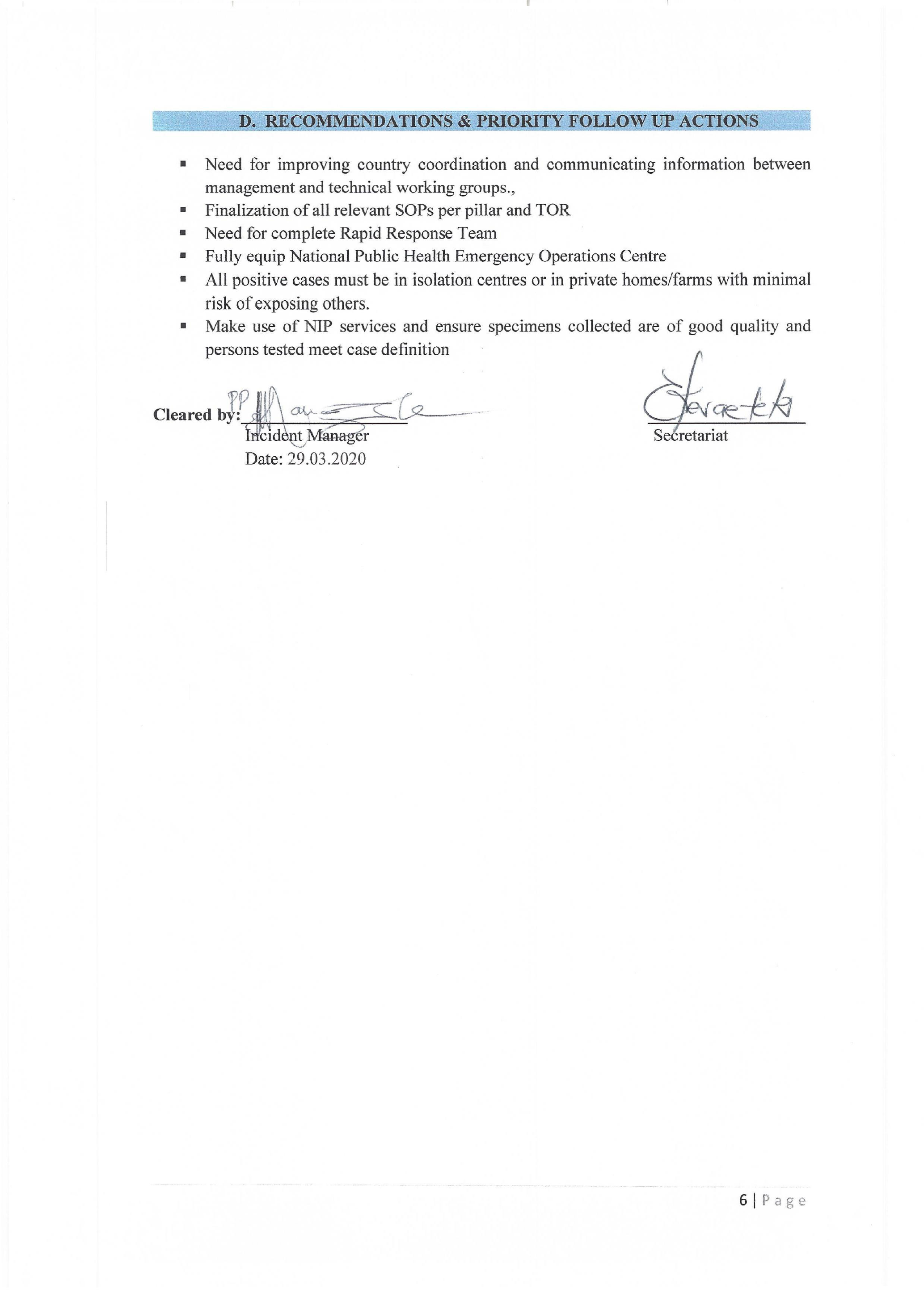 A High level meeting (chaired by secretary to cabinet) held on 29 March 2020