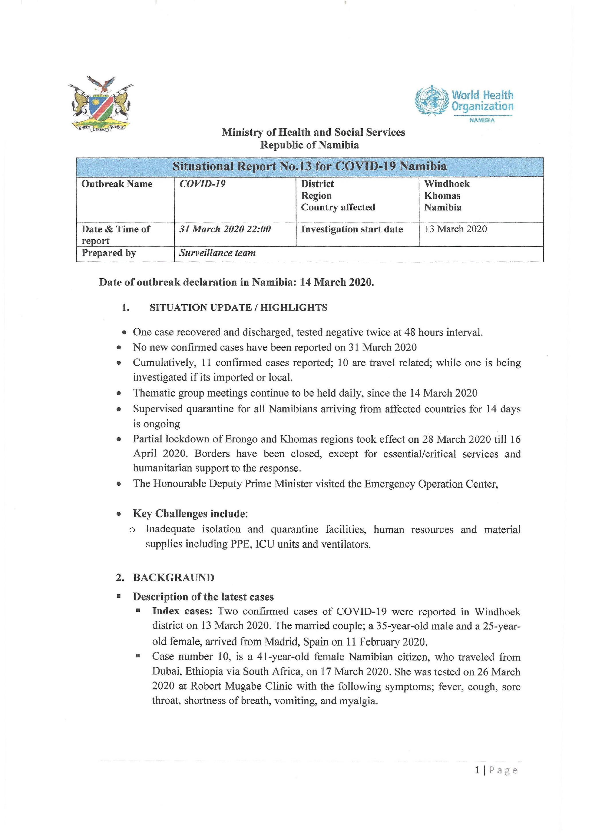 = Index cases: Two confirmed cases of COVID-19 were reported in Windhoek
