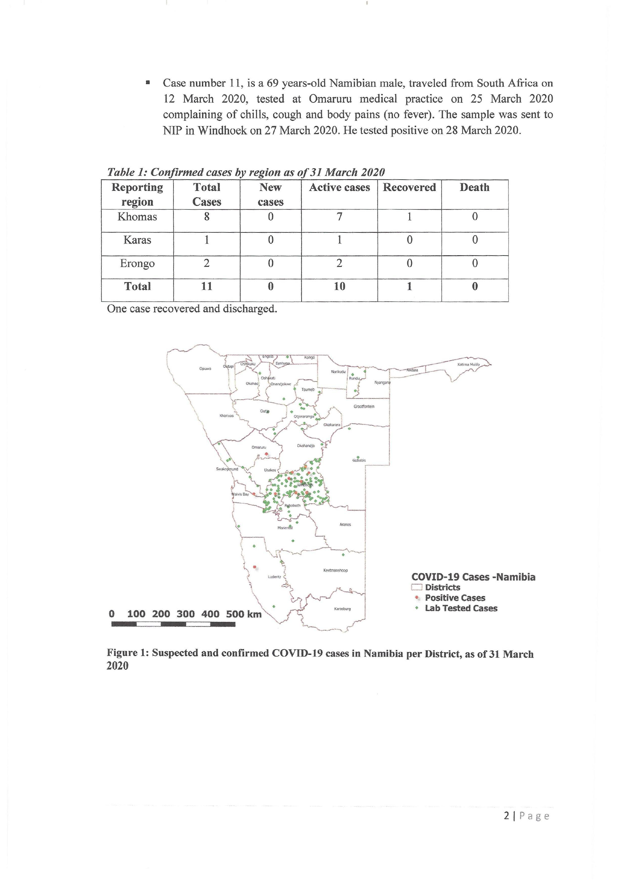 =» Case number 11, is a 69 years-old Namibian male, traveled from South Africa on