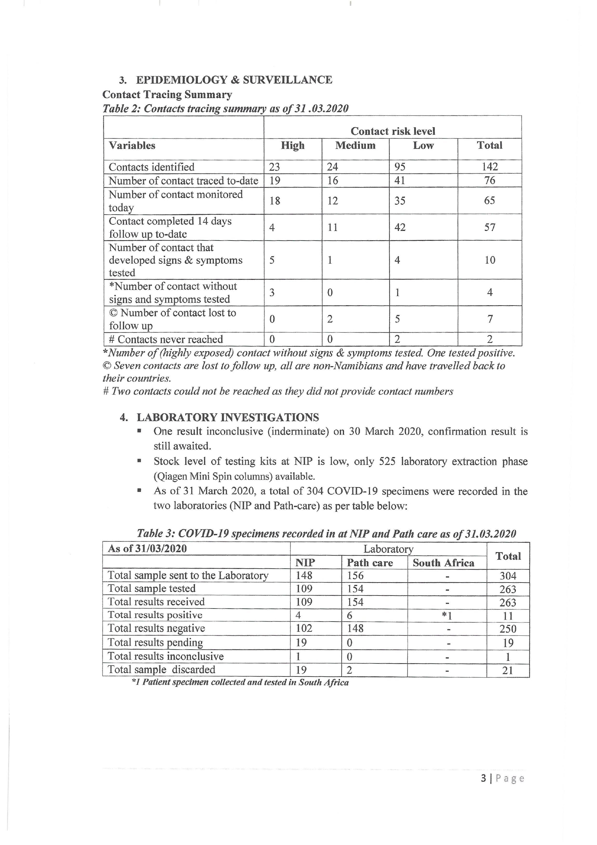 Table 2: Contacts tracing summary as of 31 .03.2020