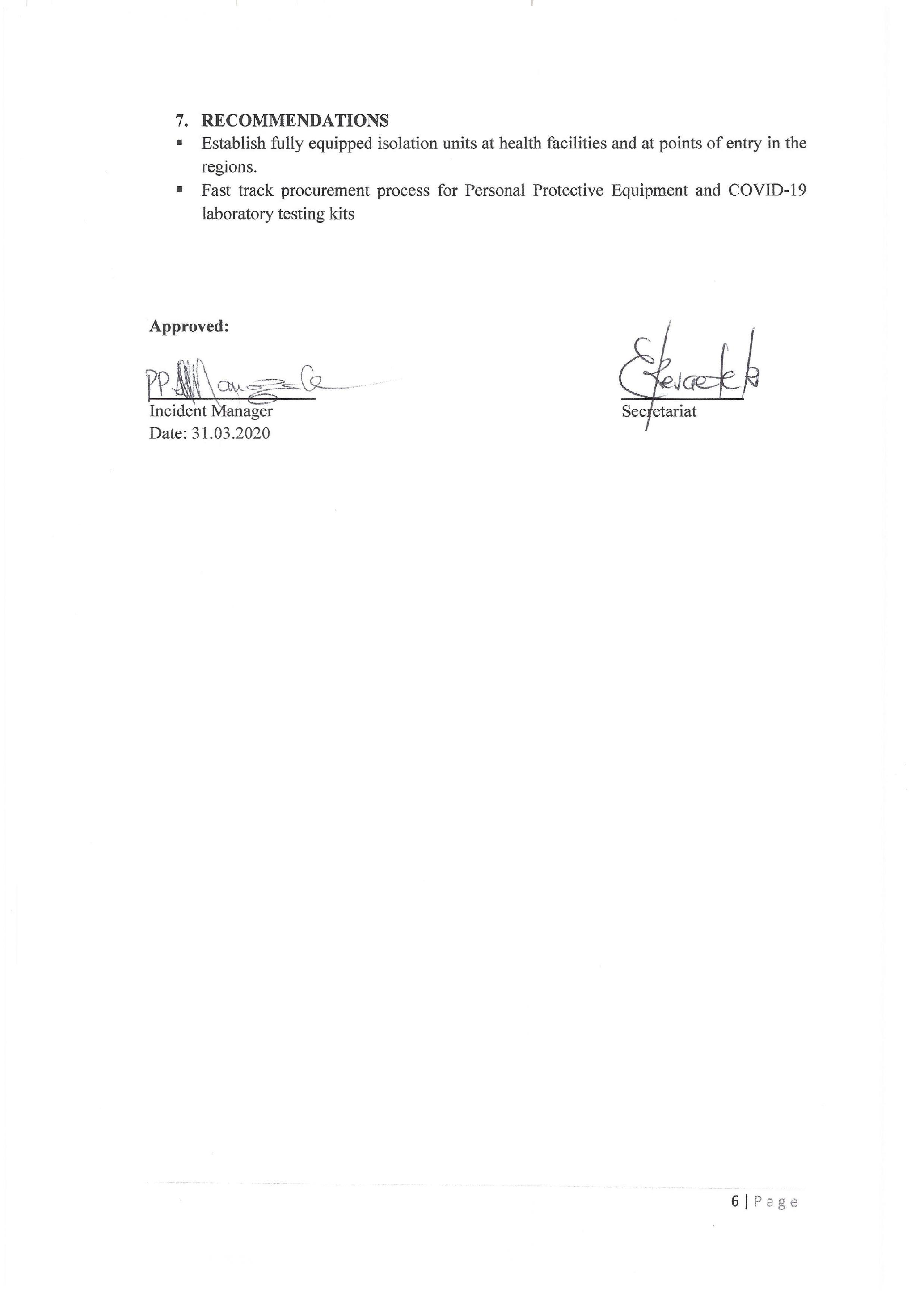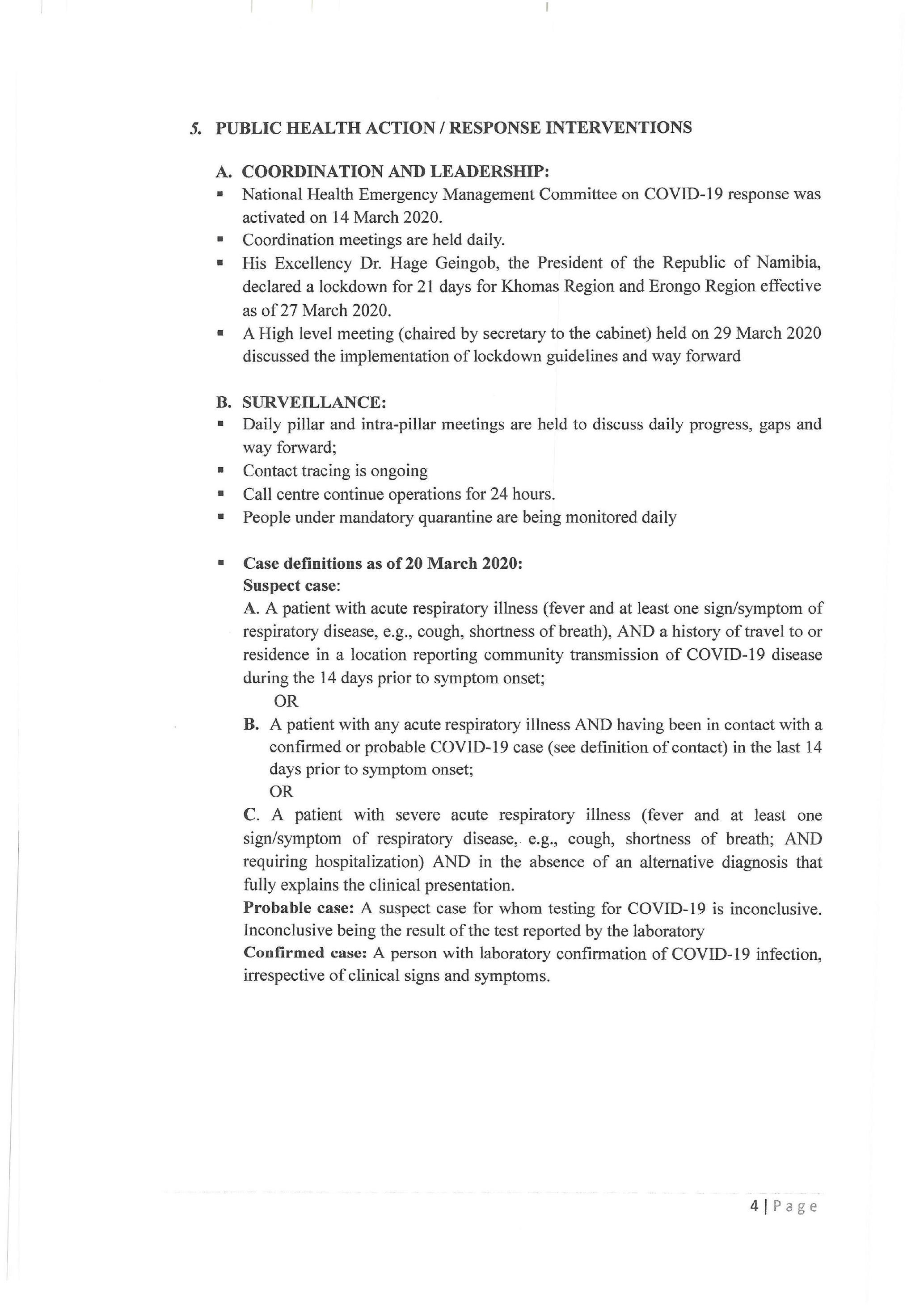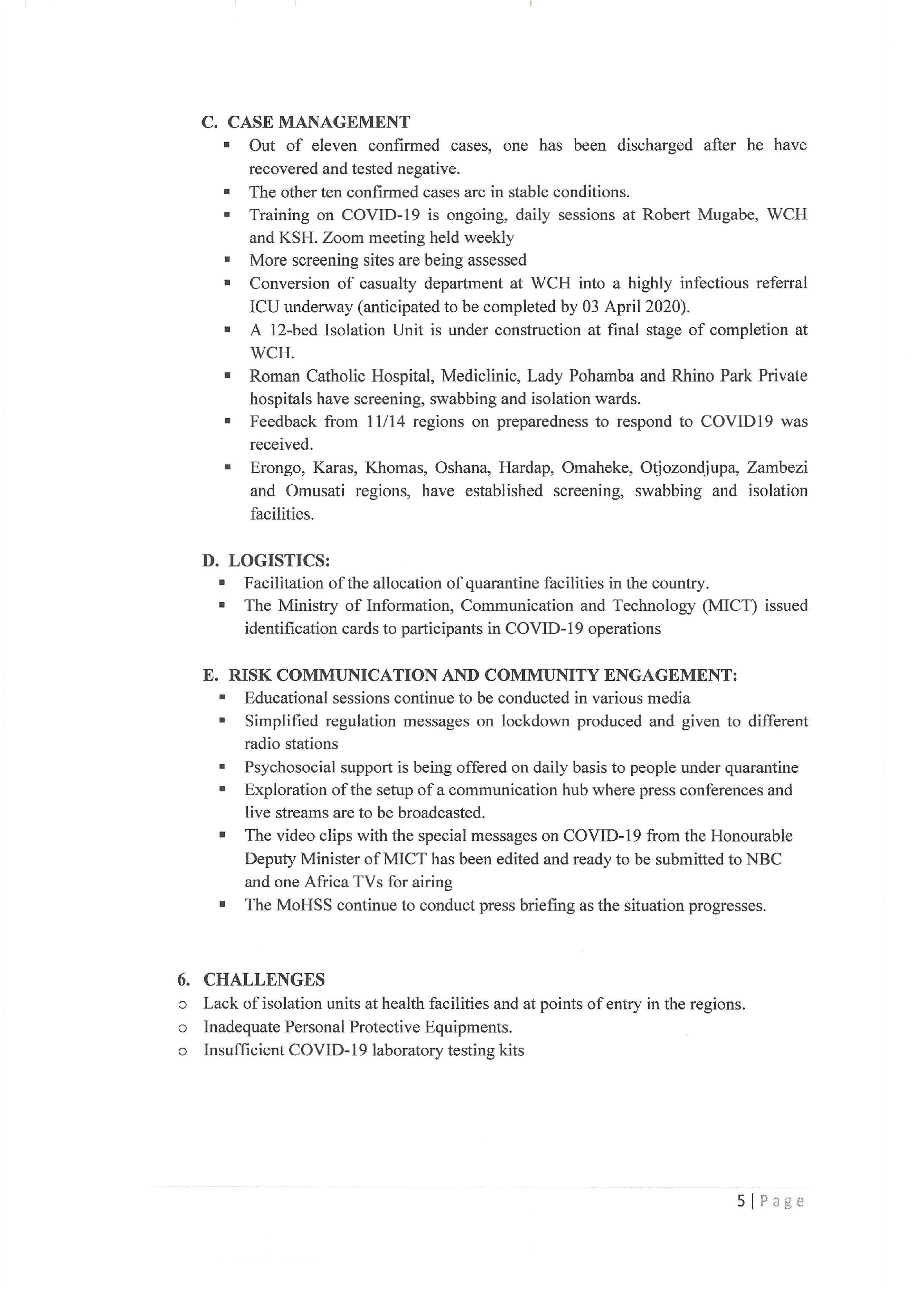 e Supervised quarantine for all Namibians arriving from affected countries for 14 days
