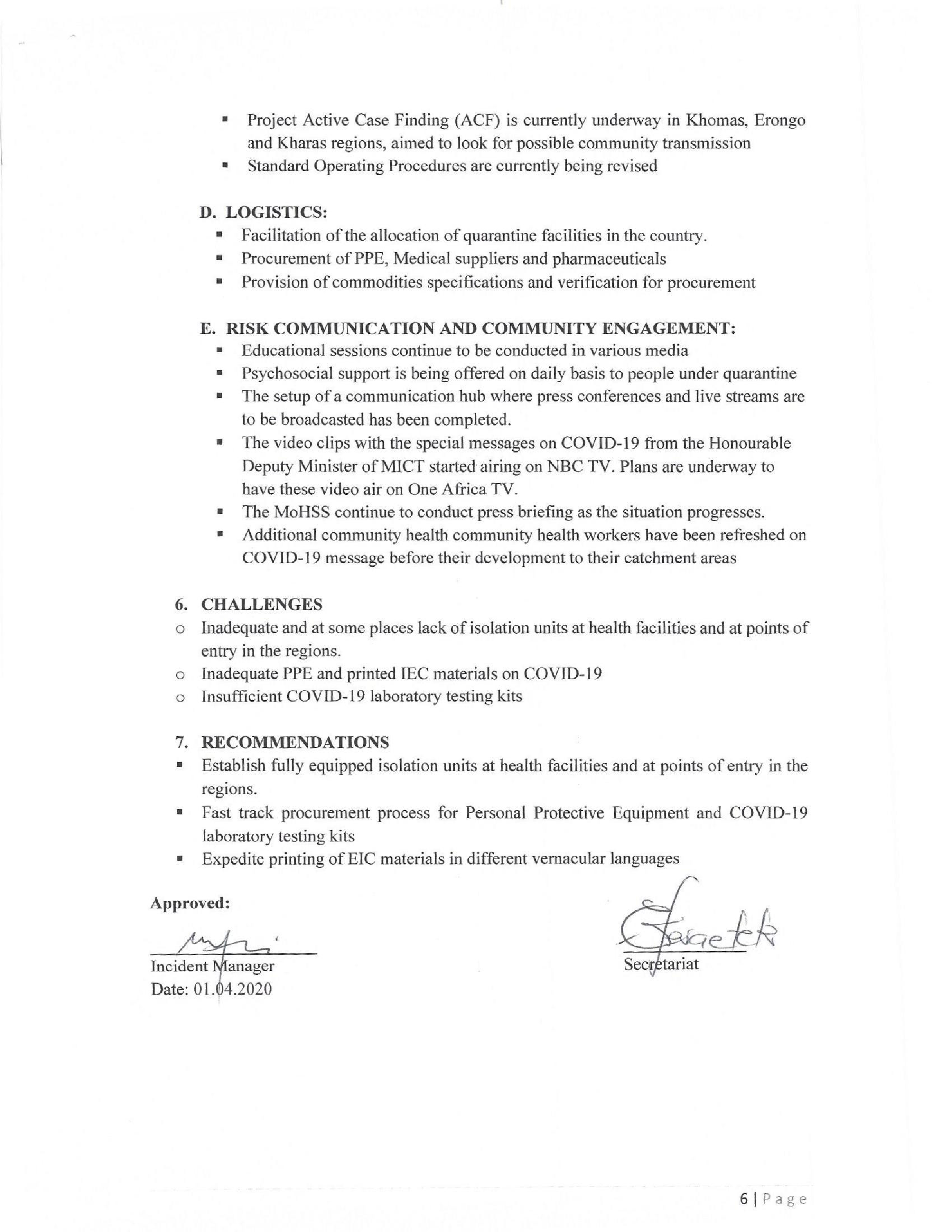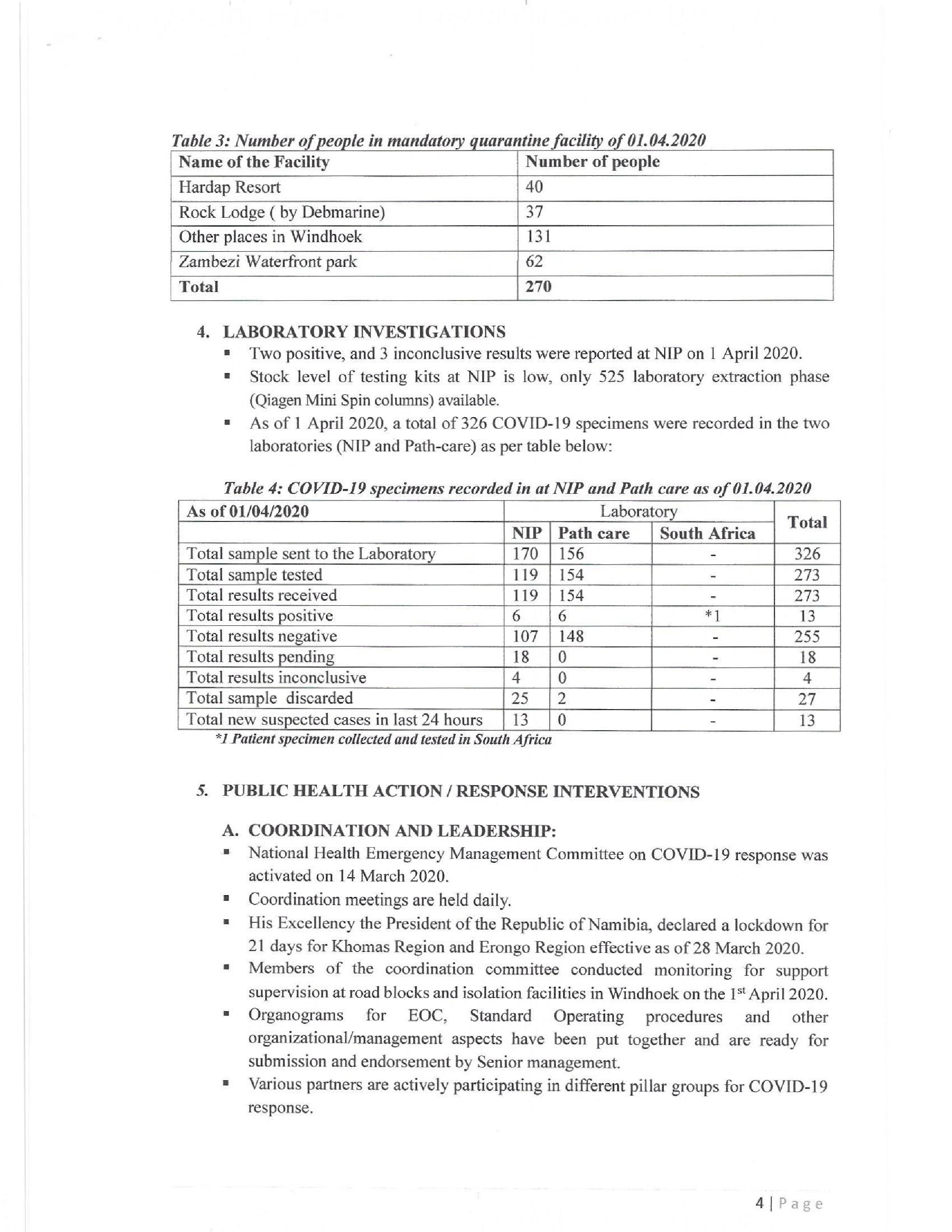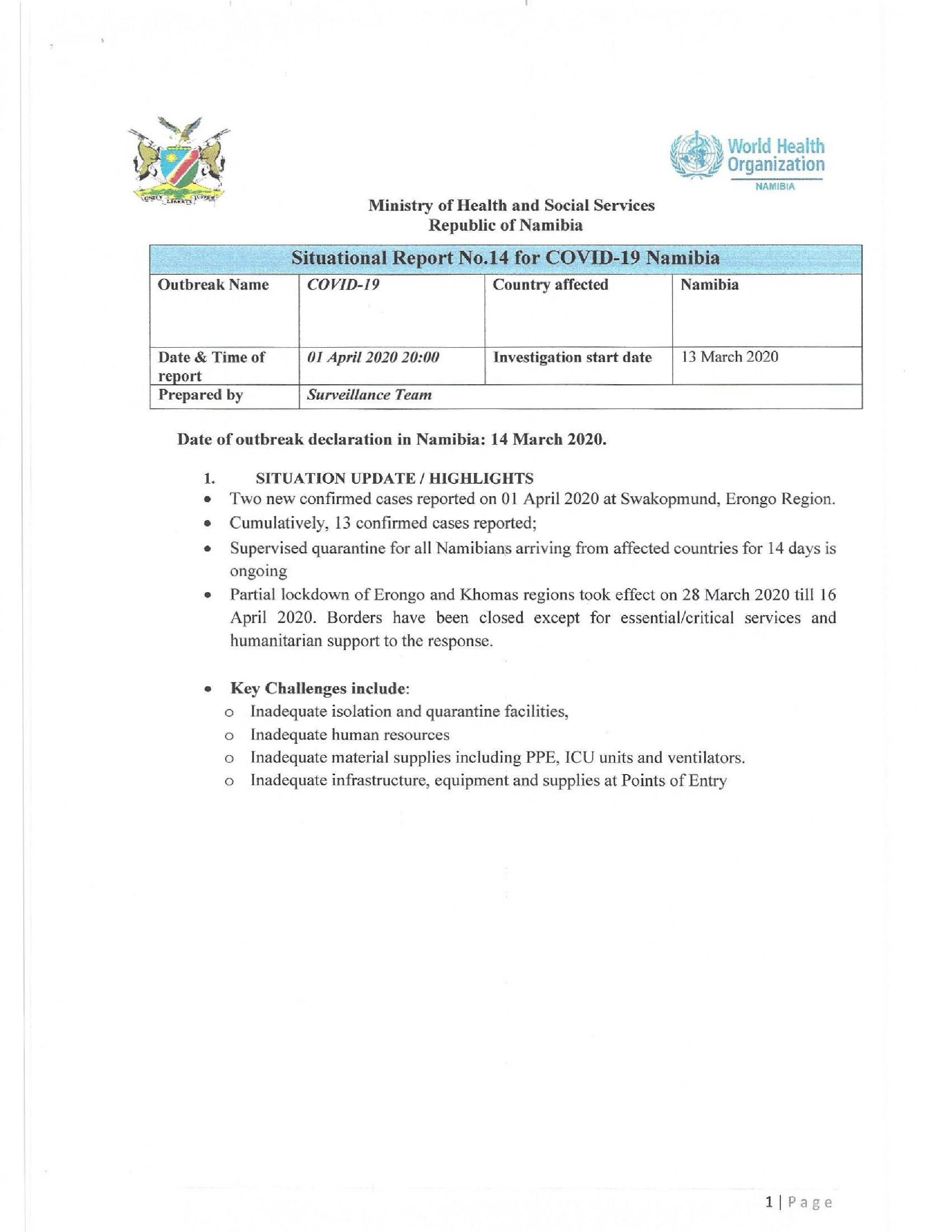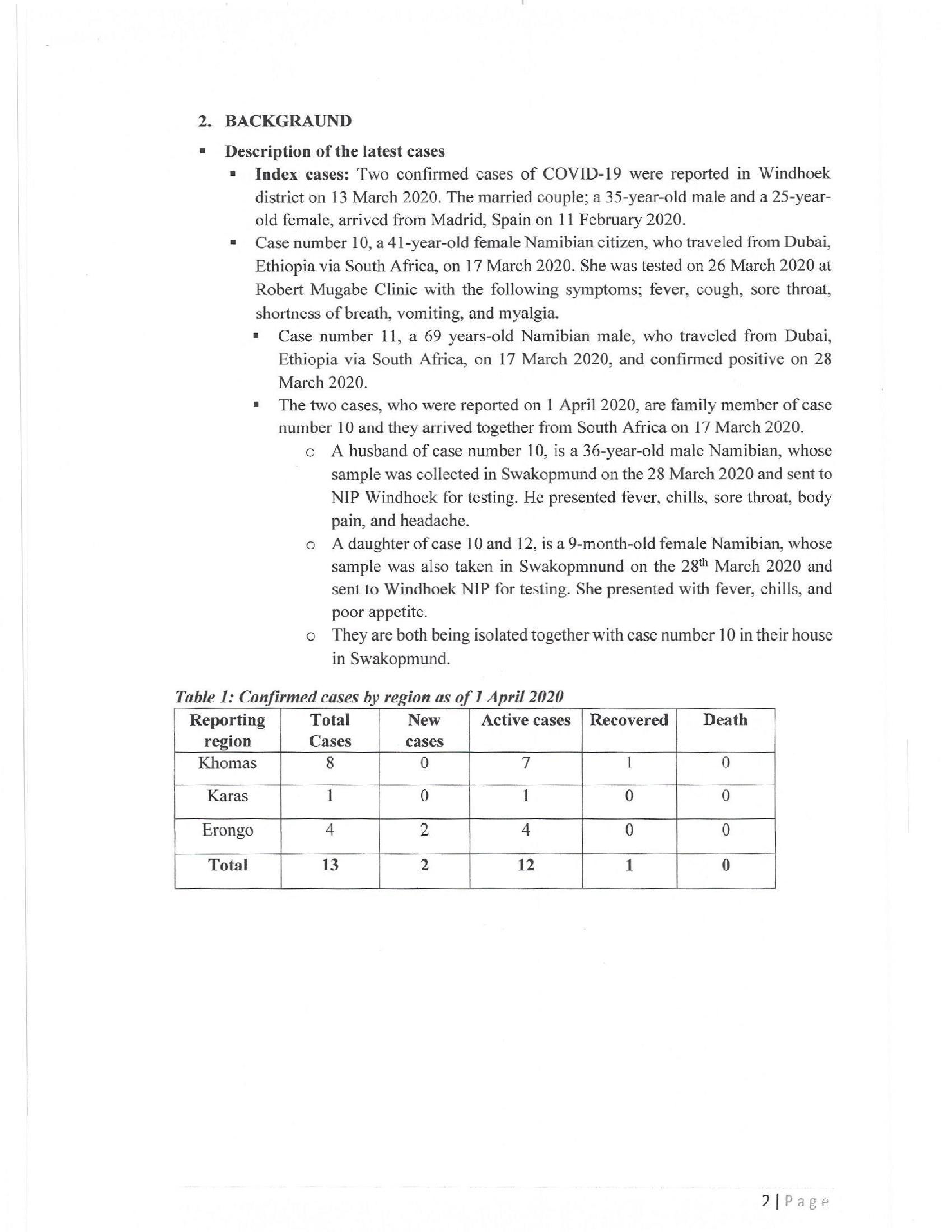 e Two new confirmed cases reported on 01 April 2020 at Swakopmund, Erongo Region.