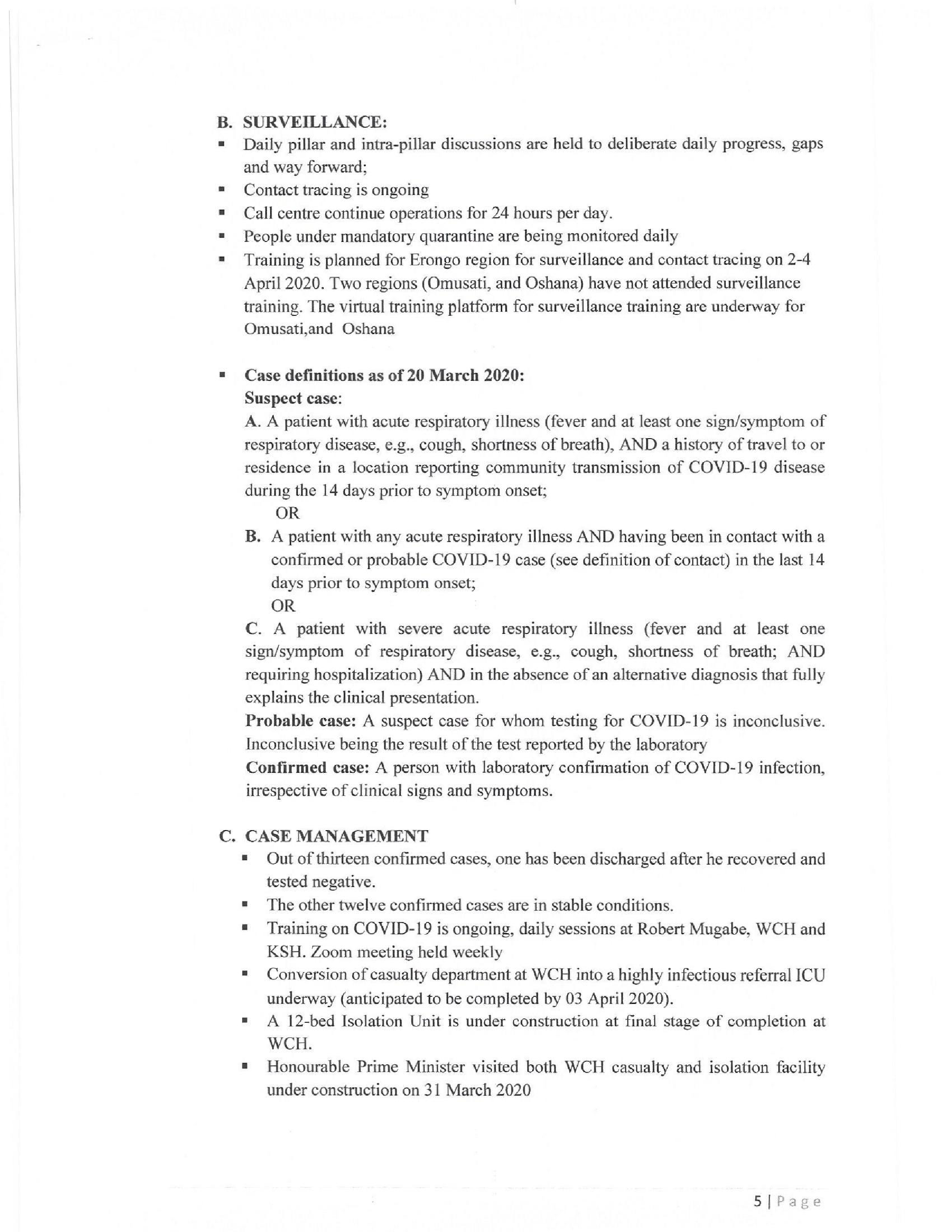 April 2020. Two regions (Omusati, and Oshana) have not attended surveillance