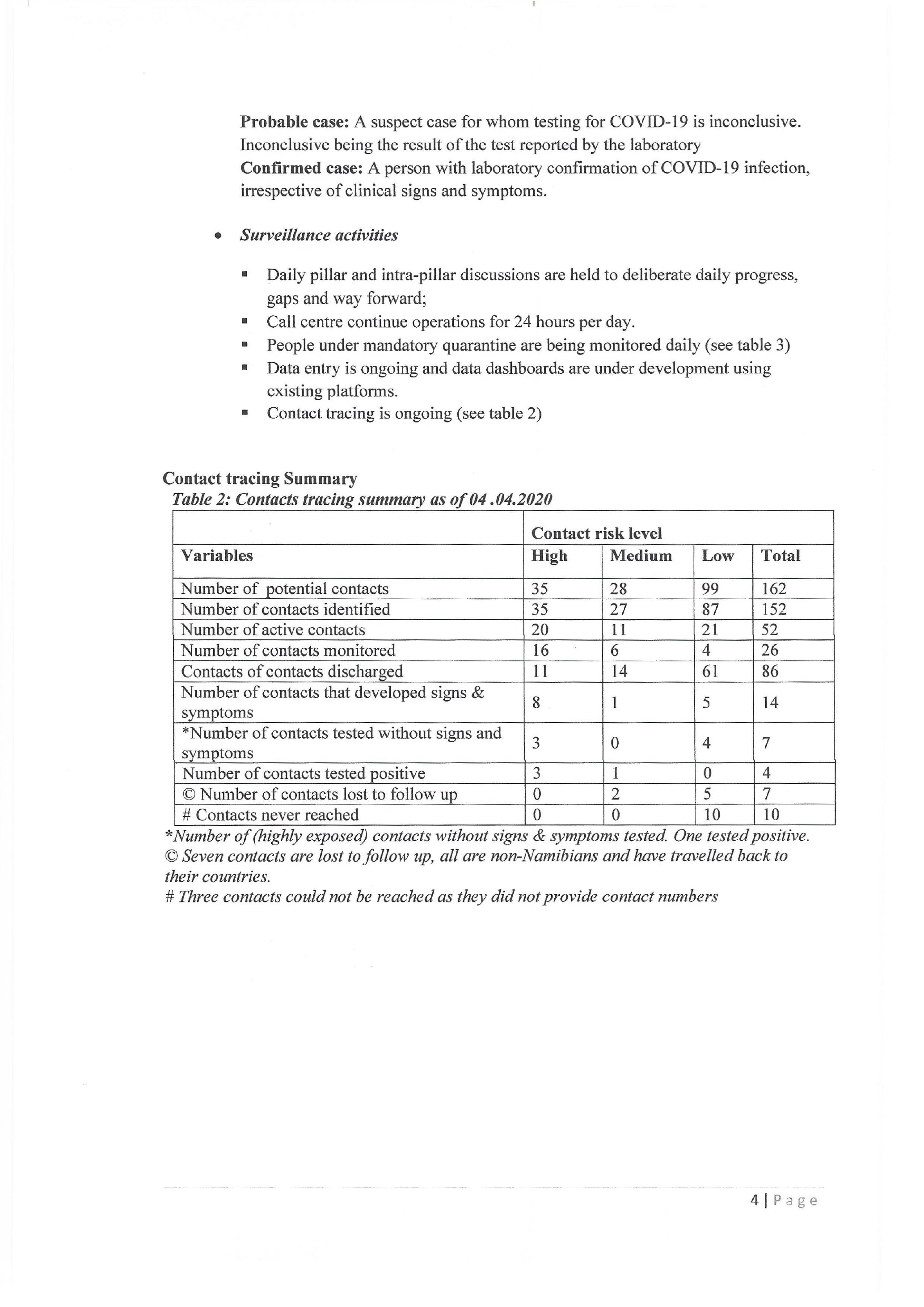 worker, with the history of travel to South Africa and return to Namibia on 02