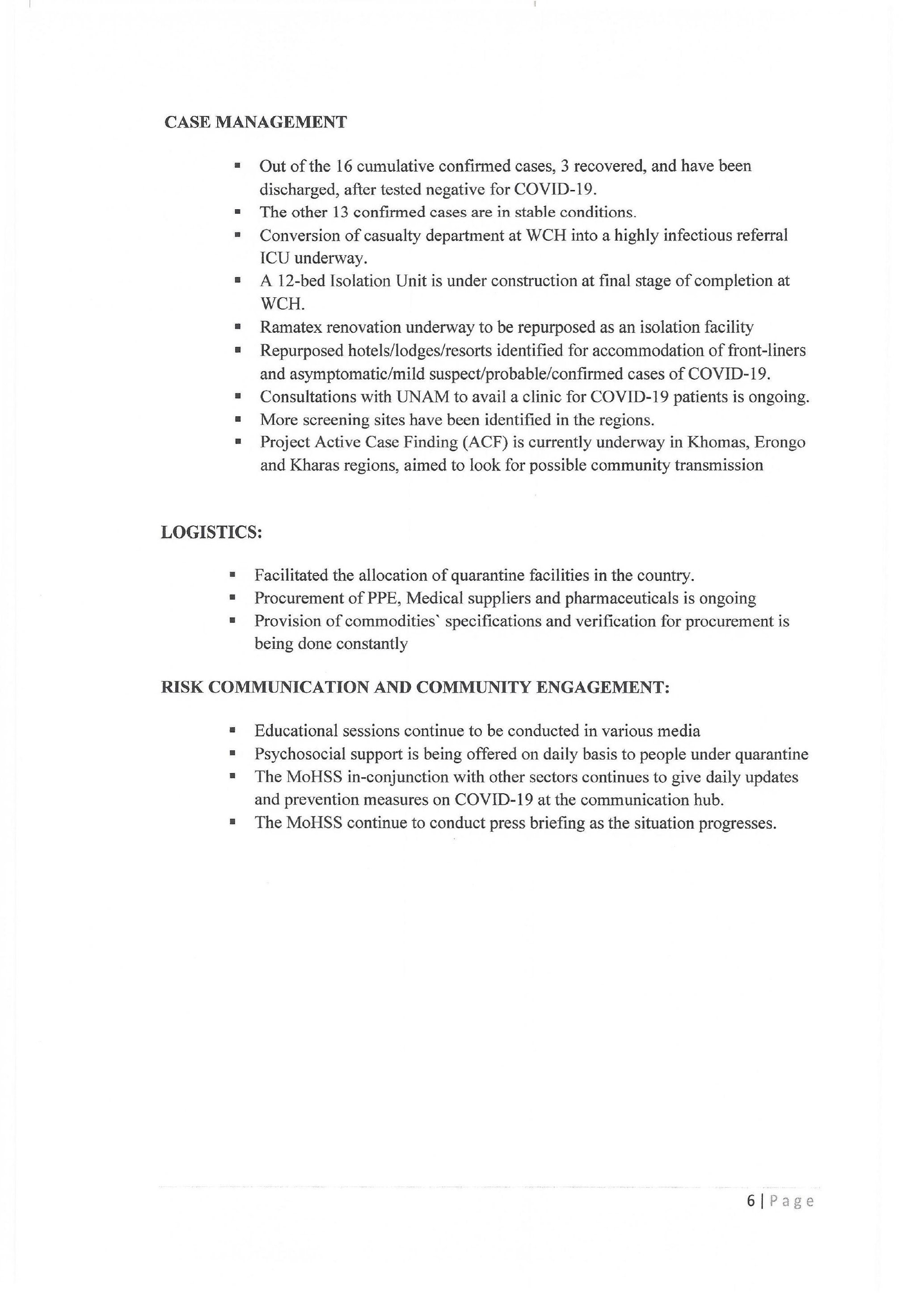 =» The MoHSS in-conjunction with other sectors continues to give daily updates