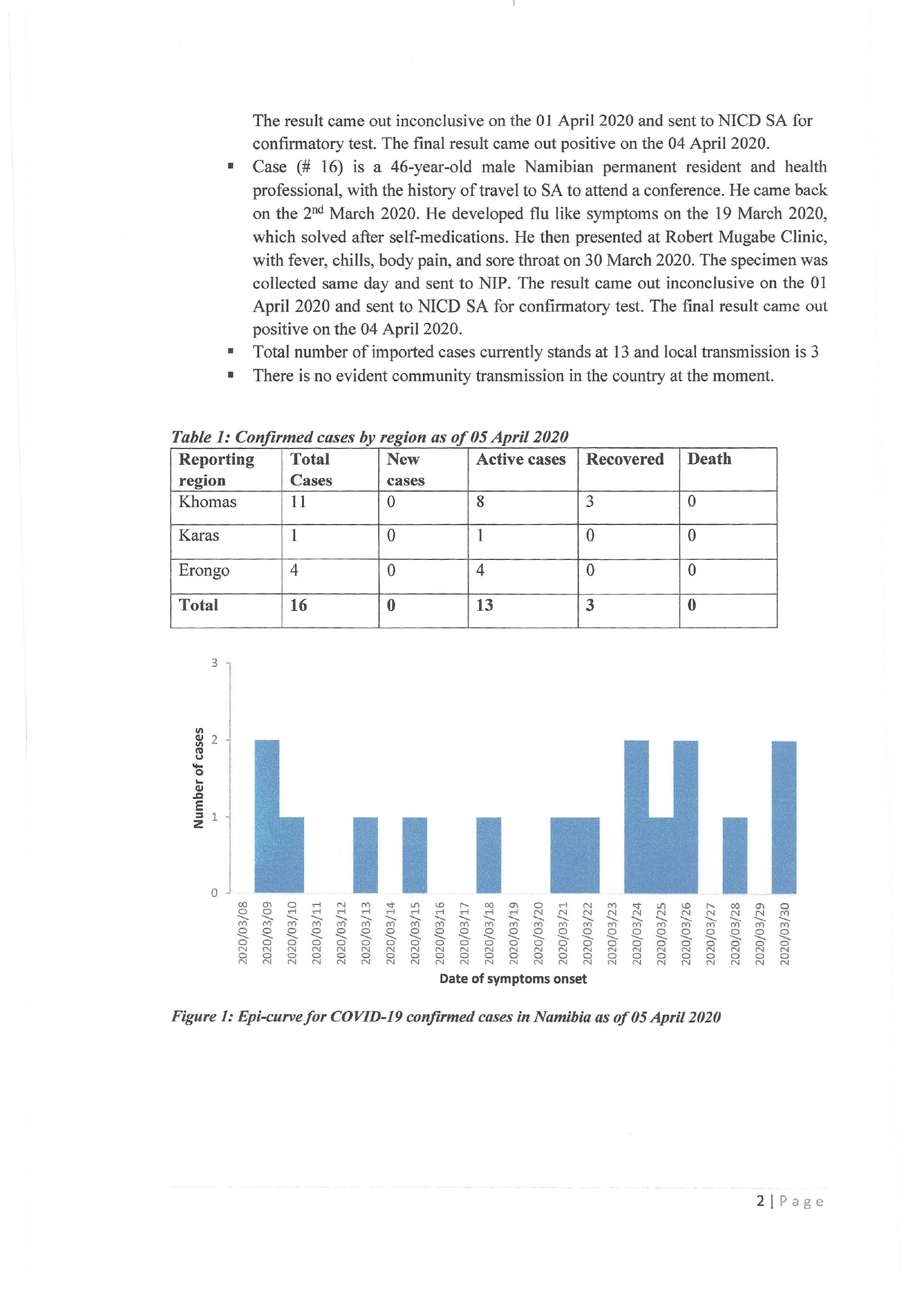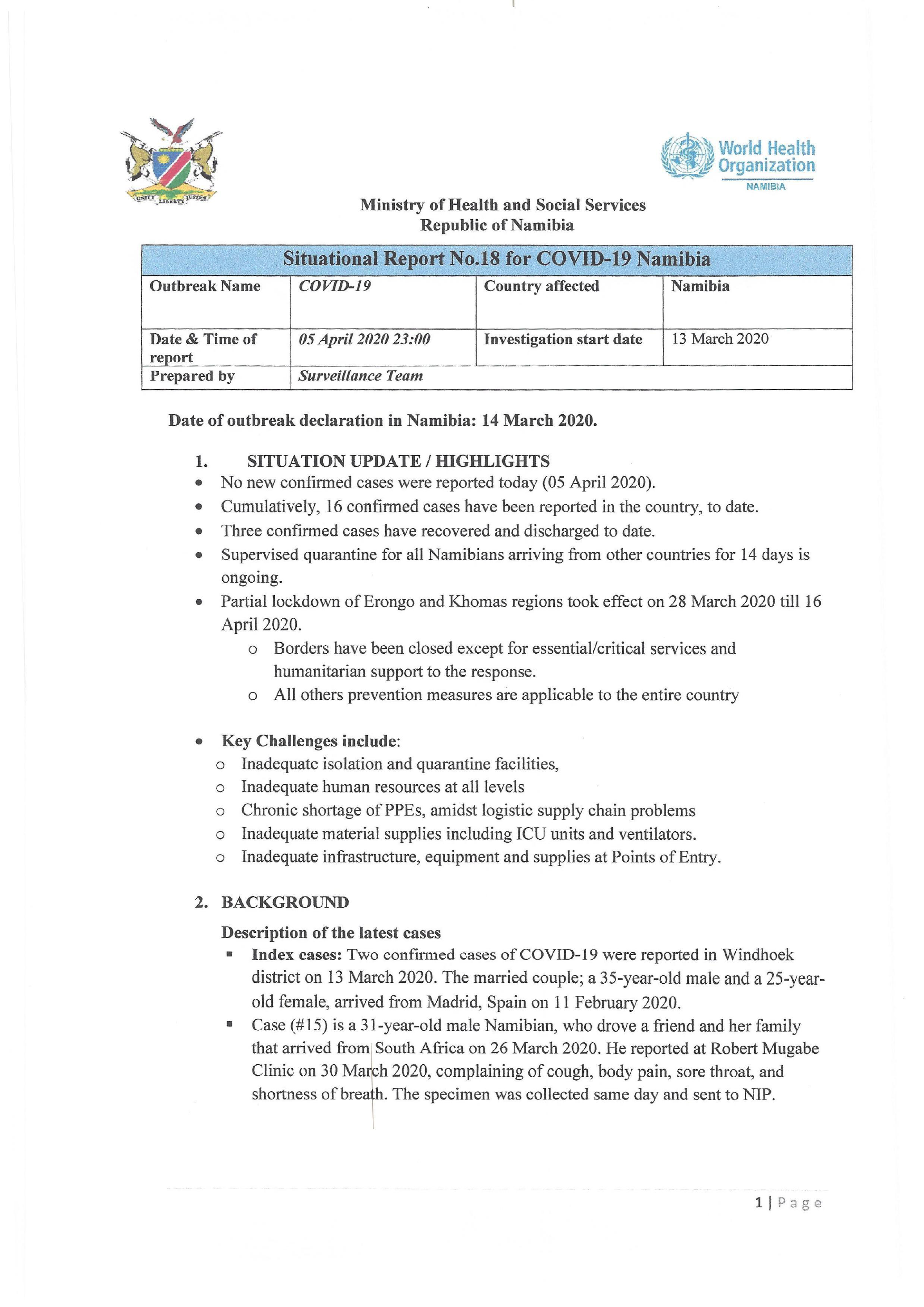 Index cases: Two confirmed cases of COVID-19 were reported in Windhoek