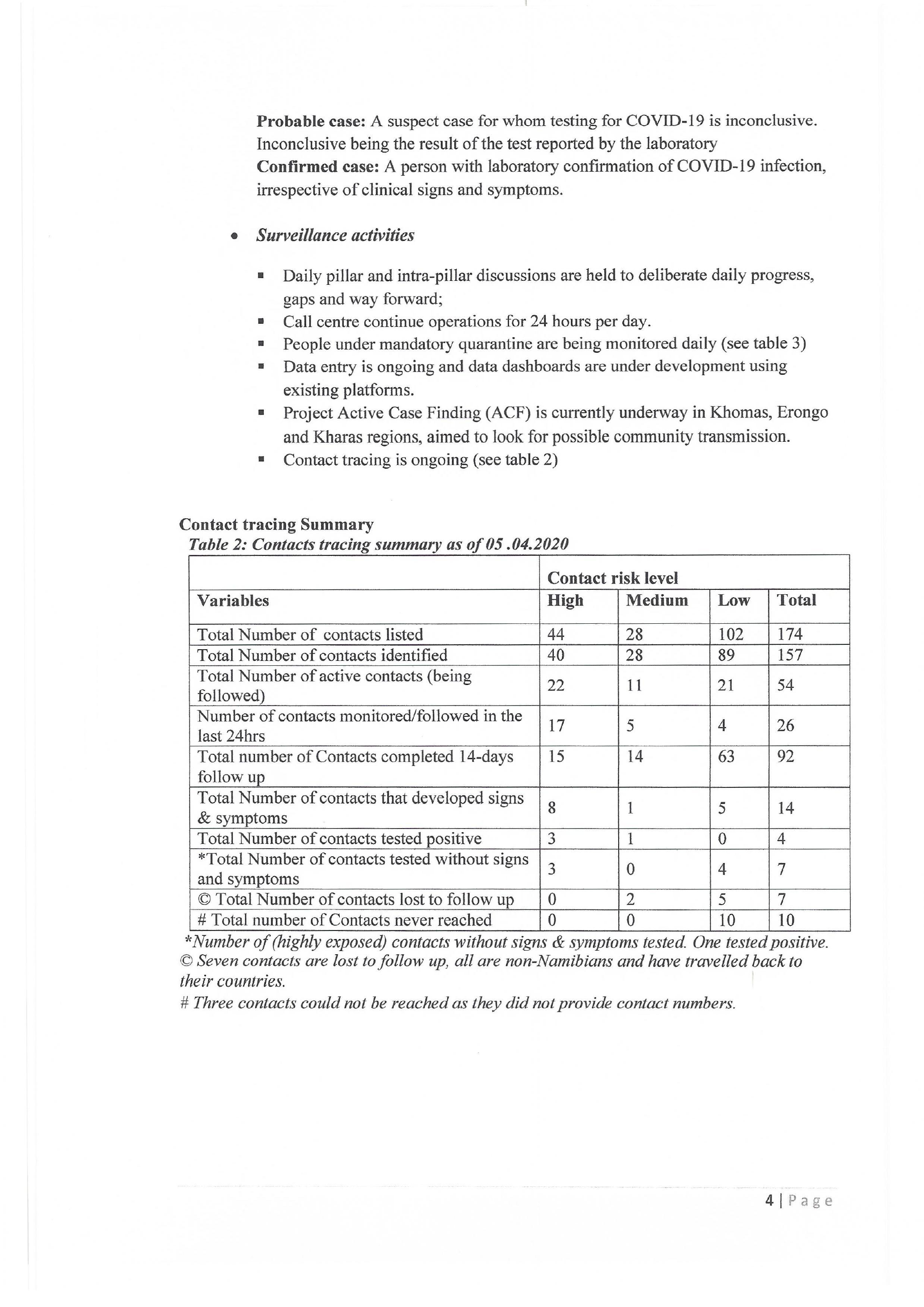 e Partial lockdown of Erongo and Khomas regions took effect on 28 March 2020 till 16