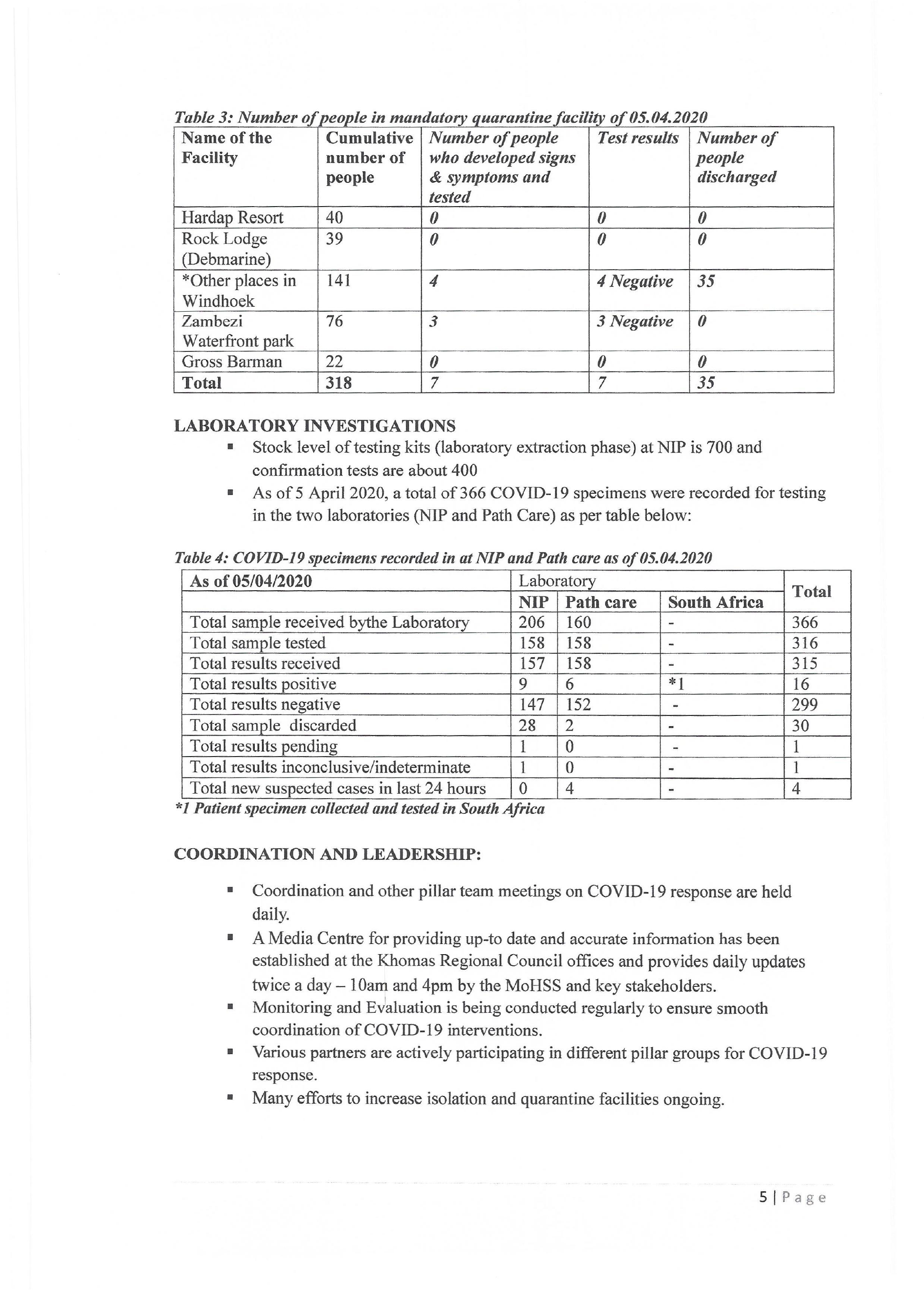 = As of5 April 2020, a total of 366 COVID-19 specimens were recorded for testing