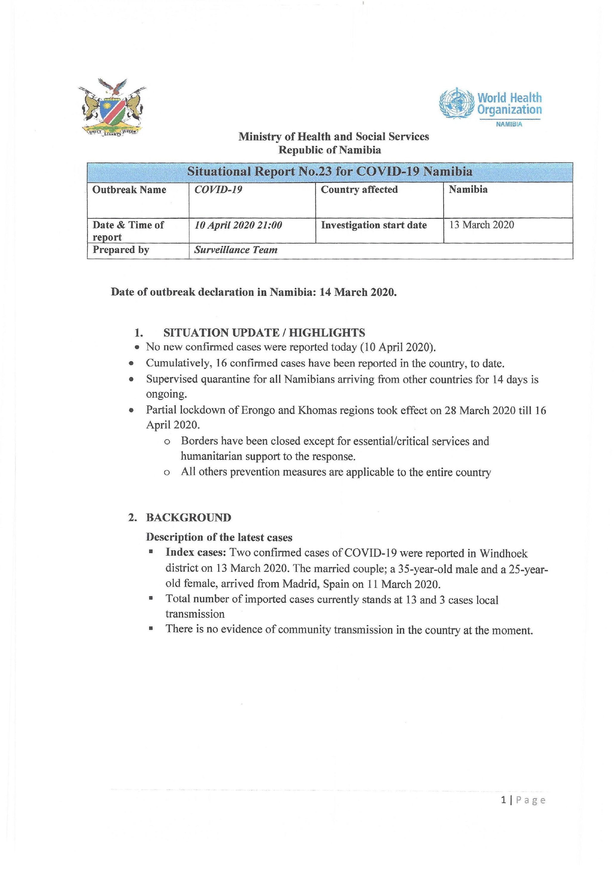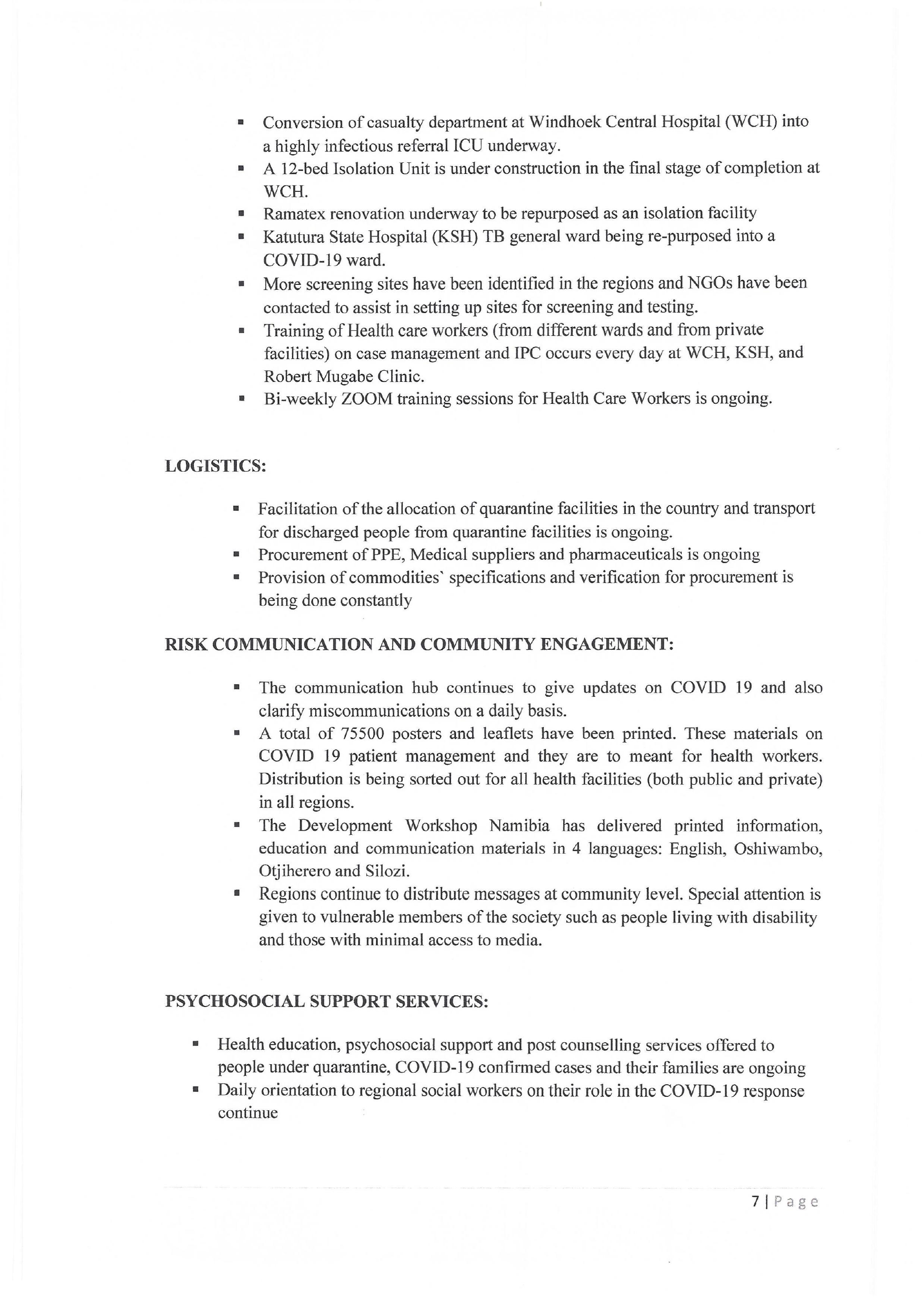 " Project Active Case Finding (ACF) is currently underway in Khomas, Erongo