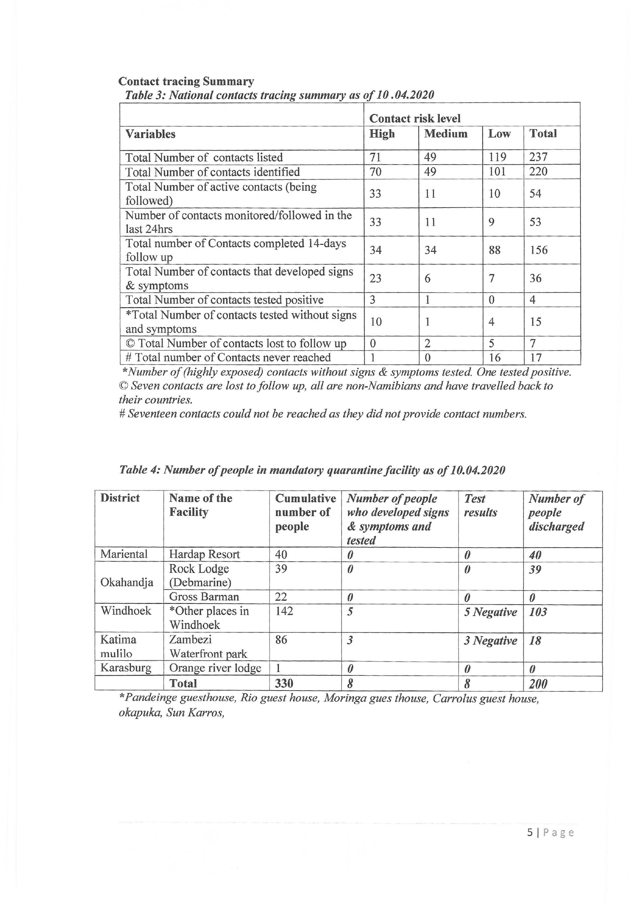 = People under mandatory quarantine are being monitored daily (see table 4)