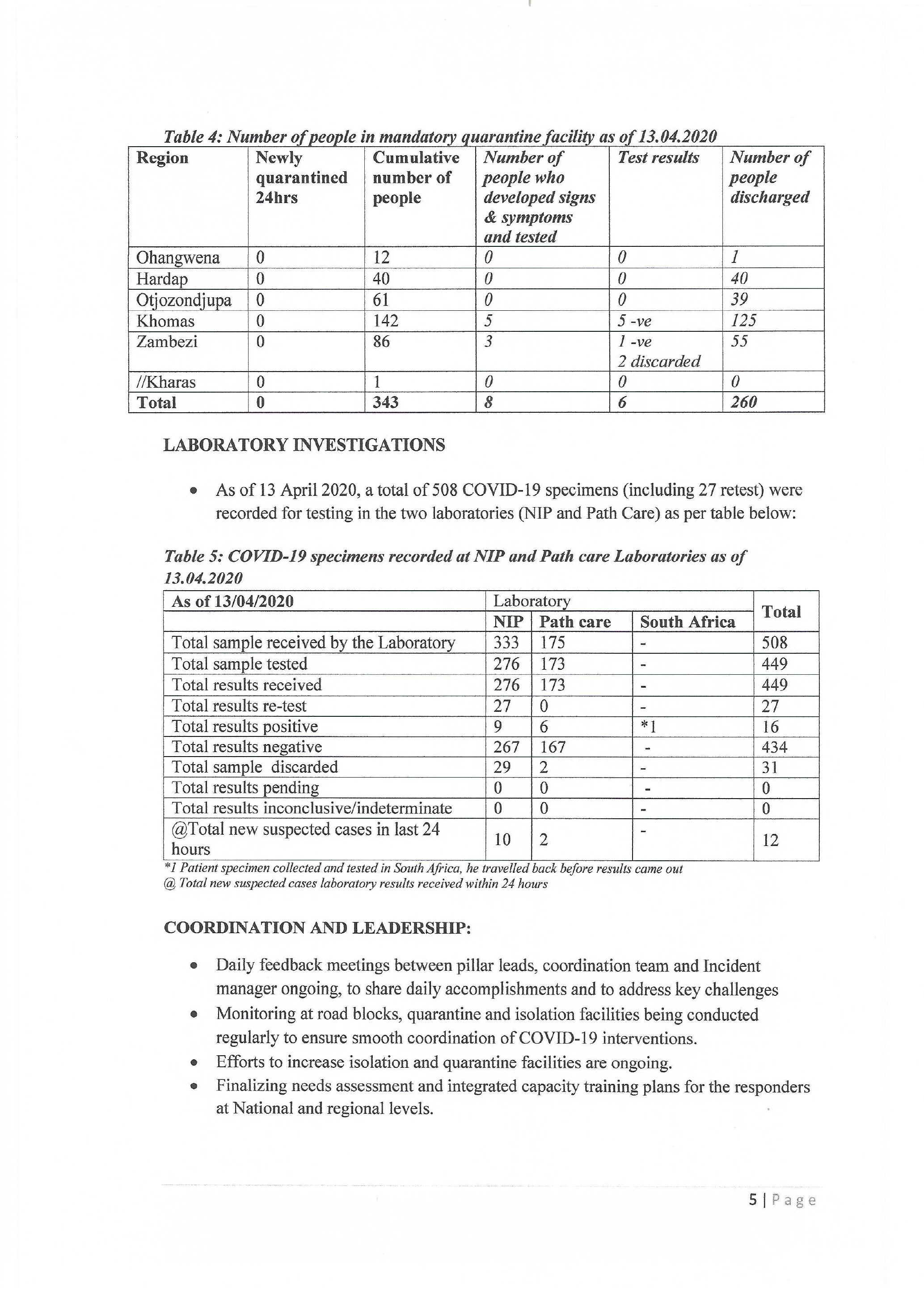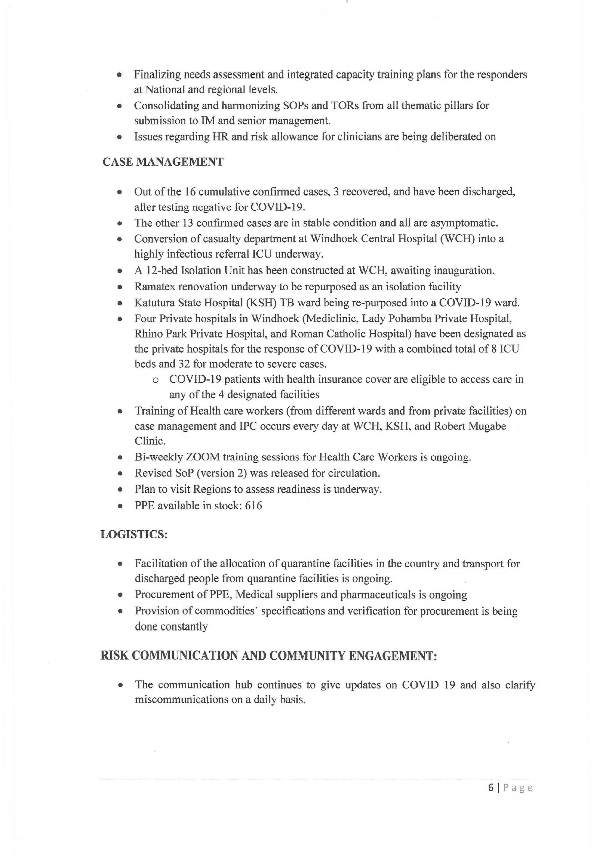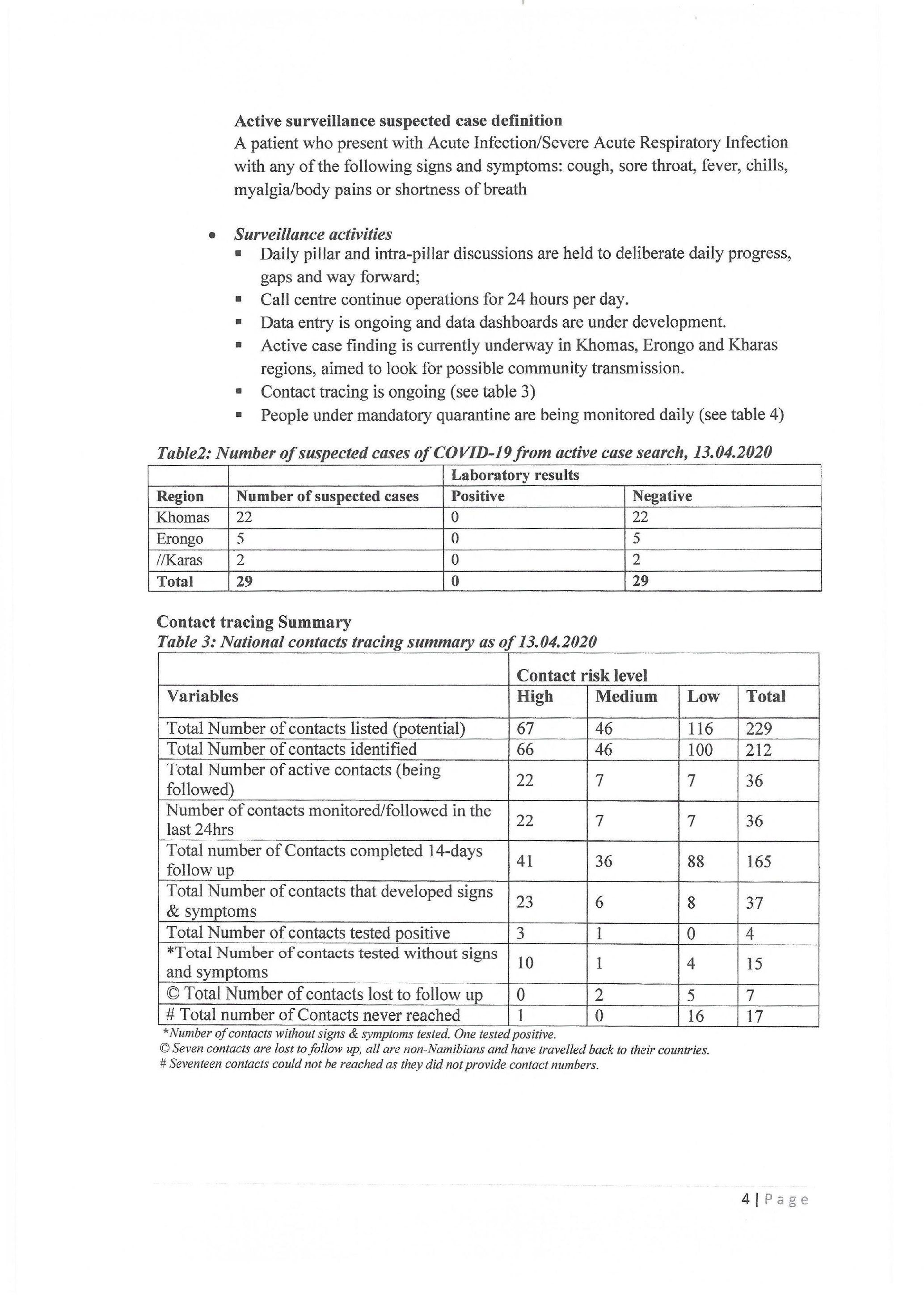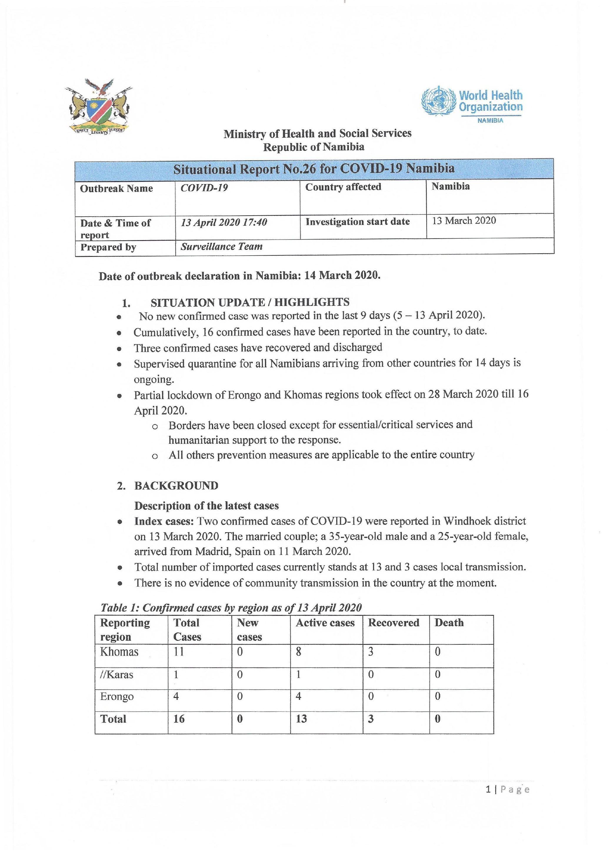 e Index cases: Two confirmed cases of COVID-19 were reported in Windhoek district