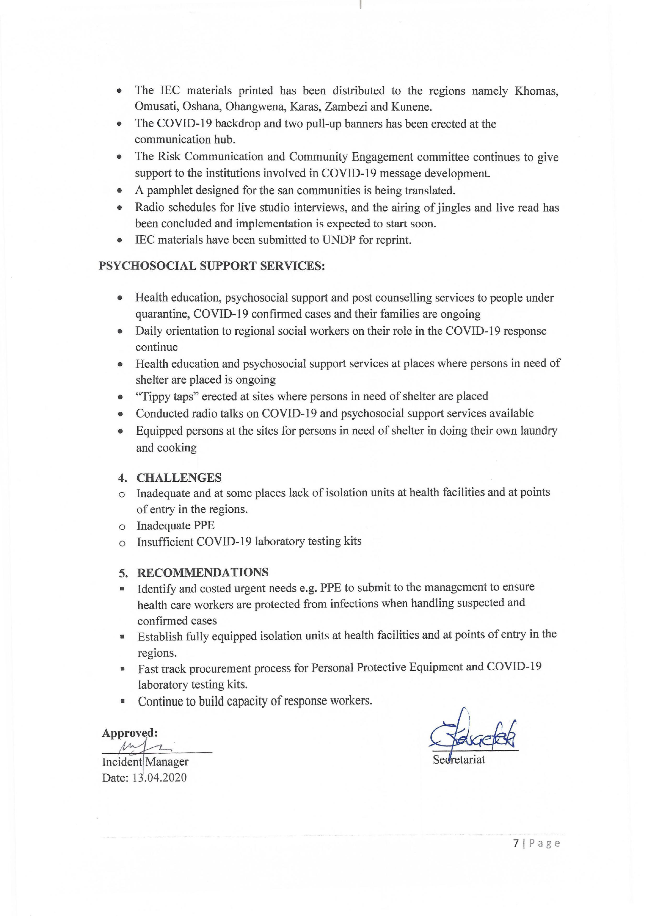 e Partial lockdown of Erongo and Khomas regions took effect on 28 March 2020 till 16