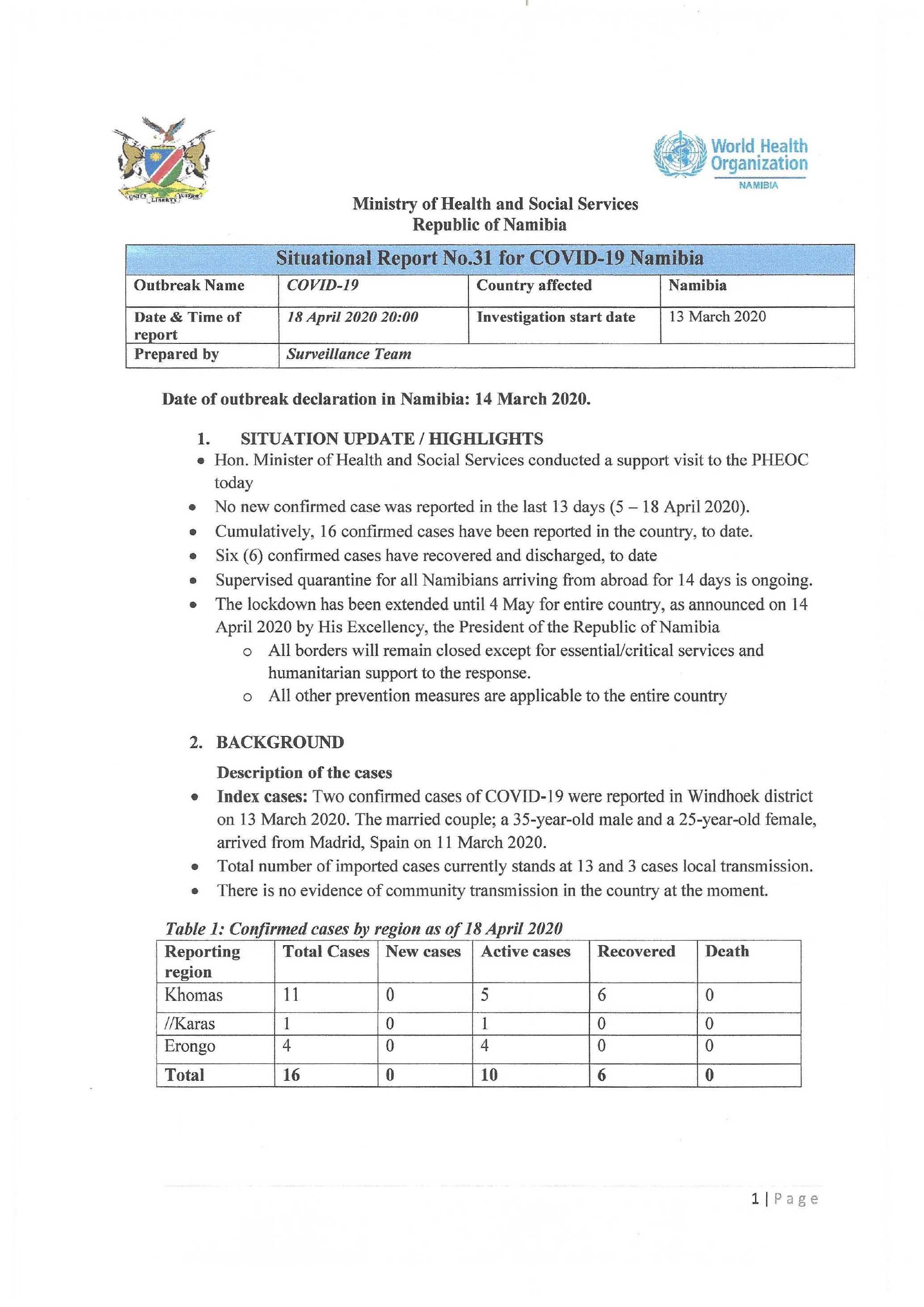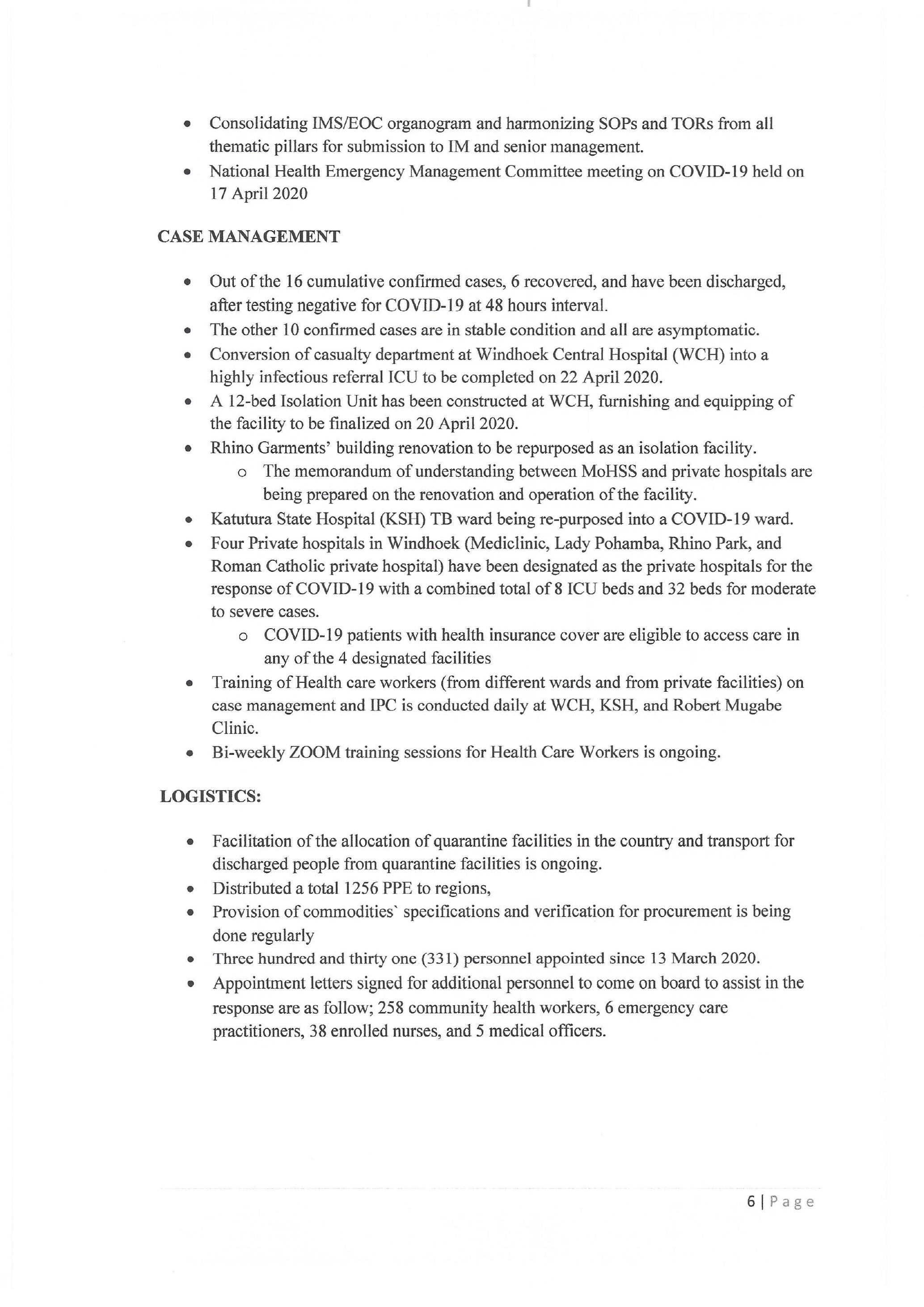 e Out of the 16 cumulative confirmed cases, 6 recovered, and have been discharged,
