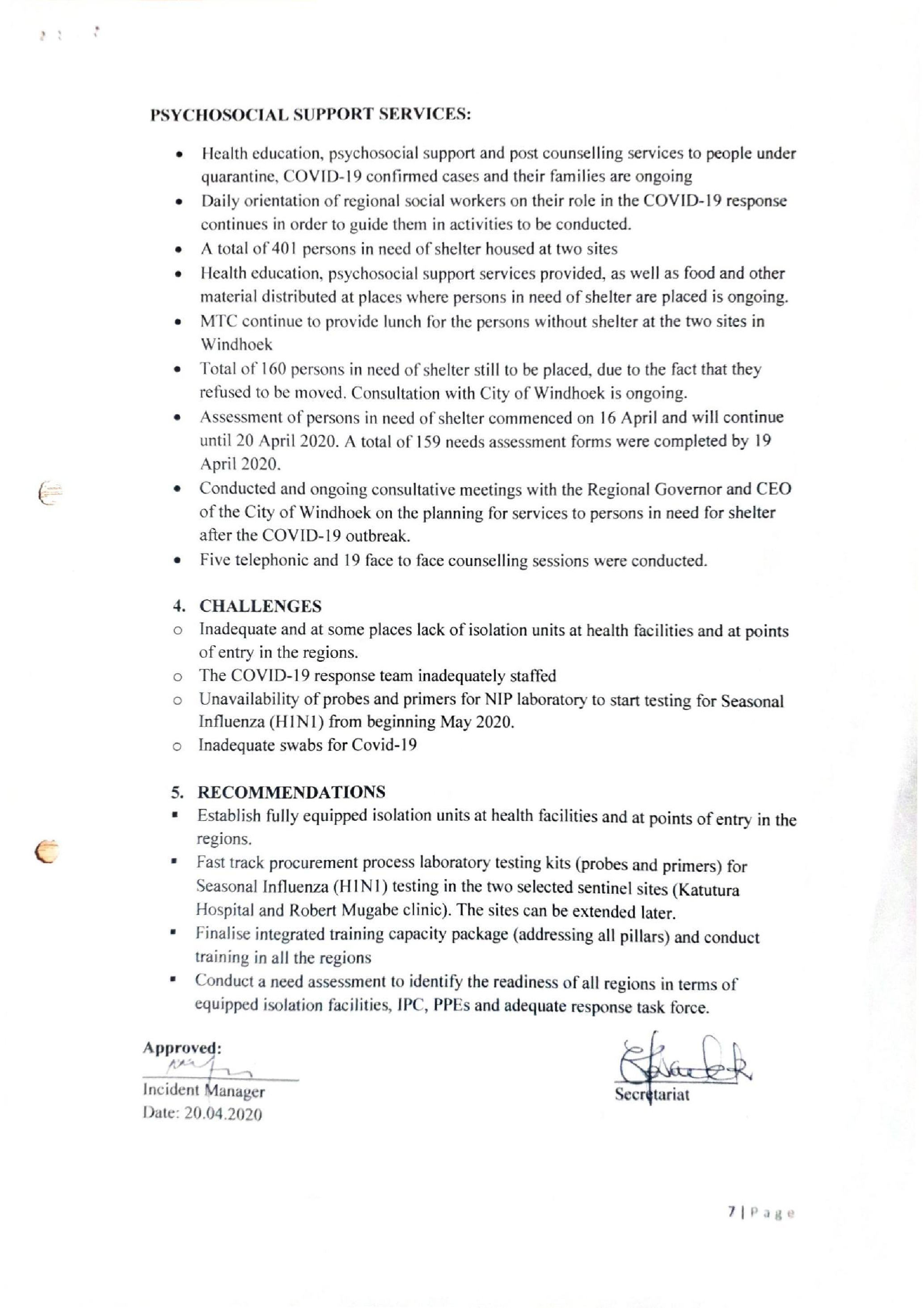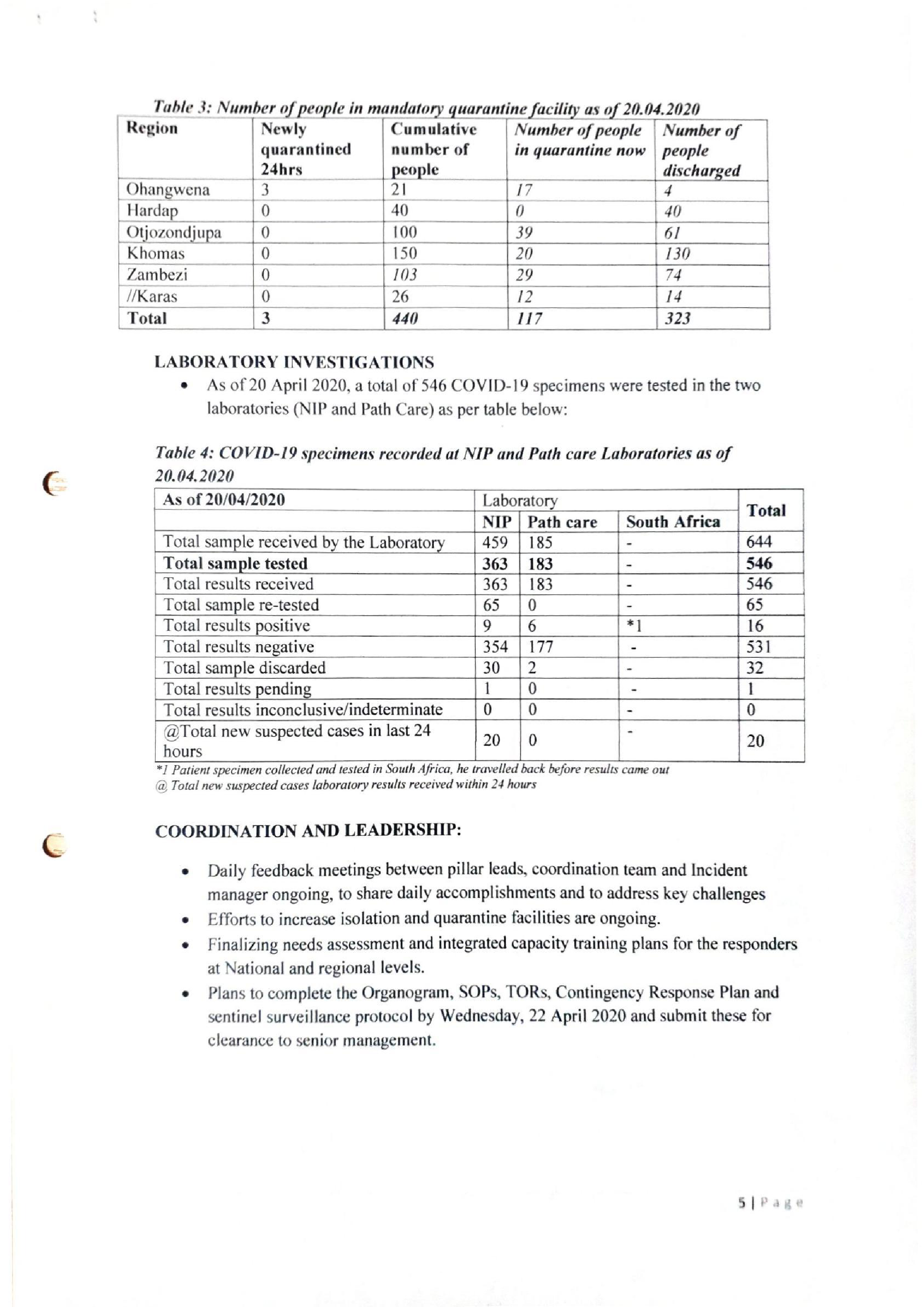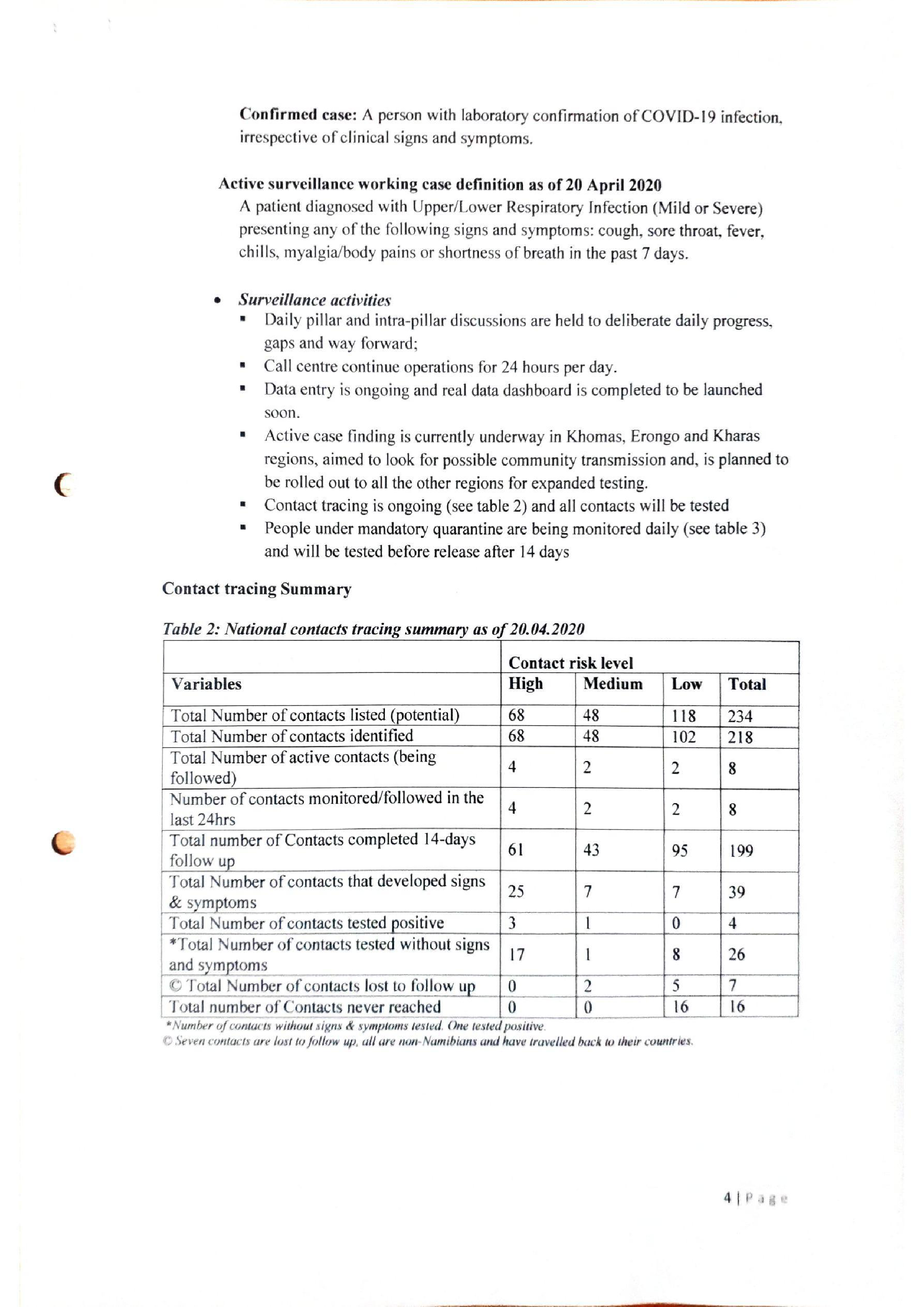 e Supervised quarantine for all Namibians arriving from abroad for 14 days is ongoing.