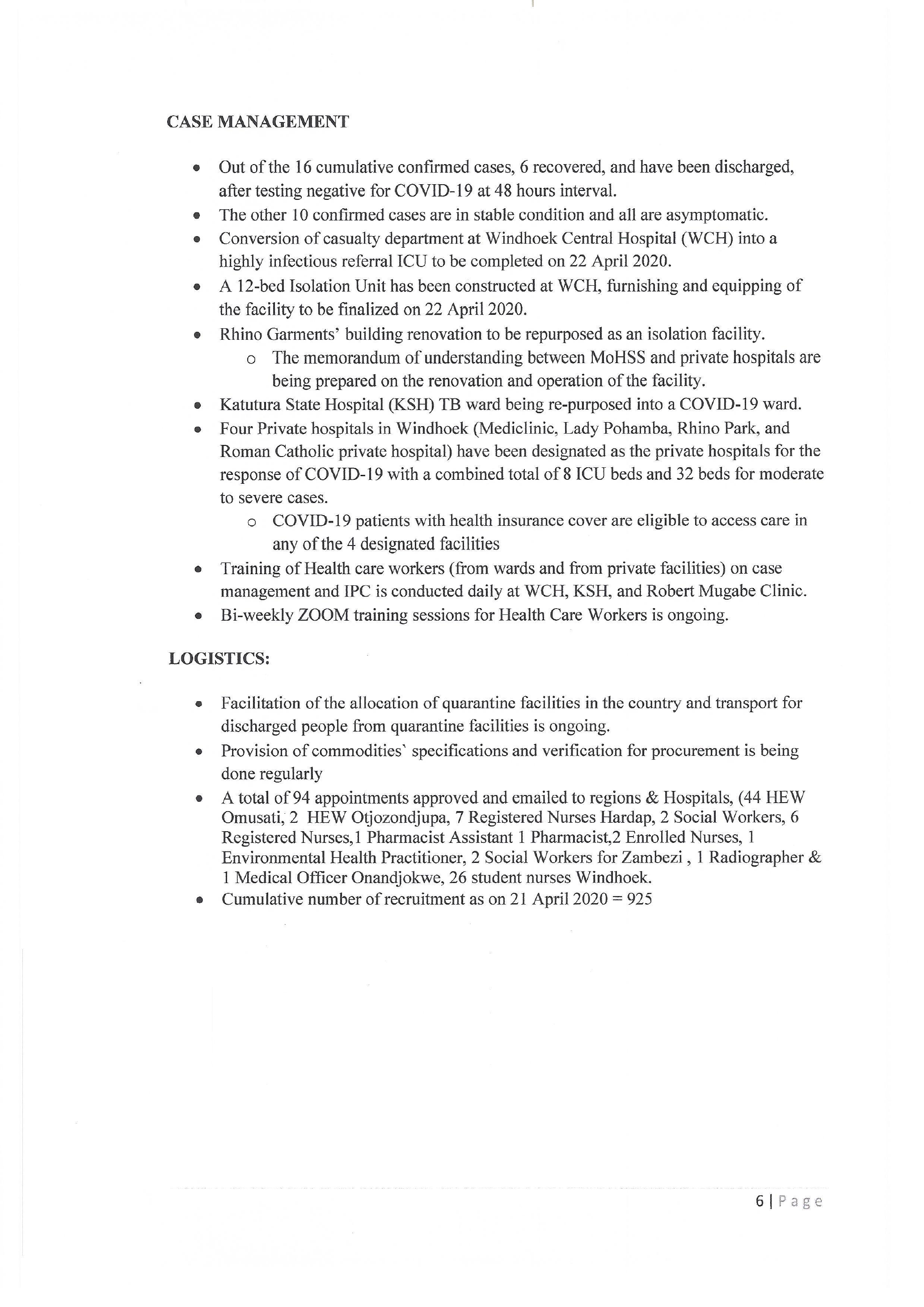 e Out of the 16 cumulative confirmed cases, 6 recovered, and have been discharged,