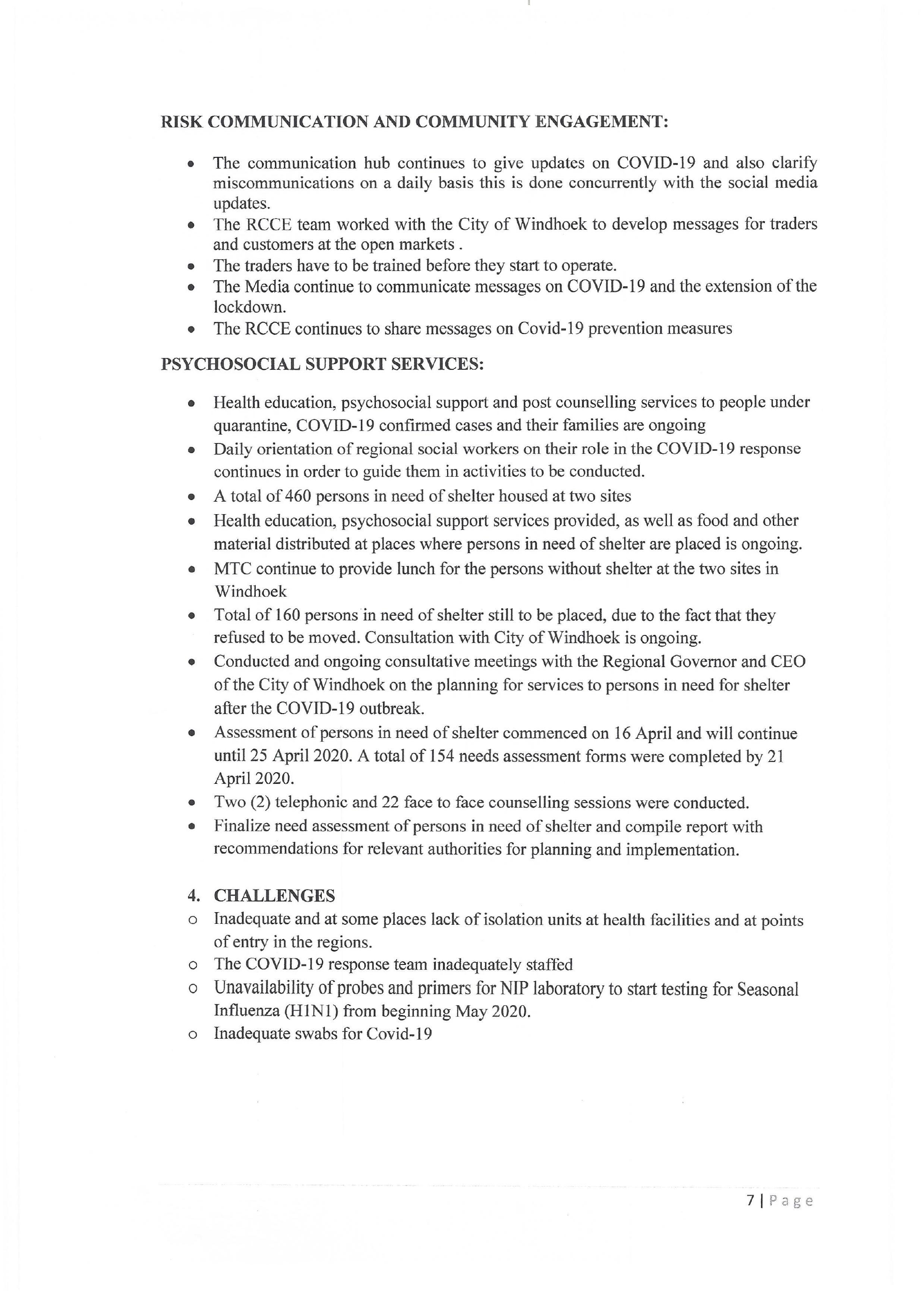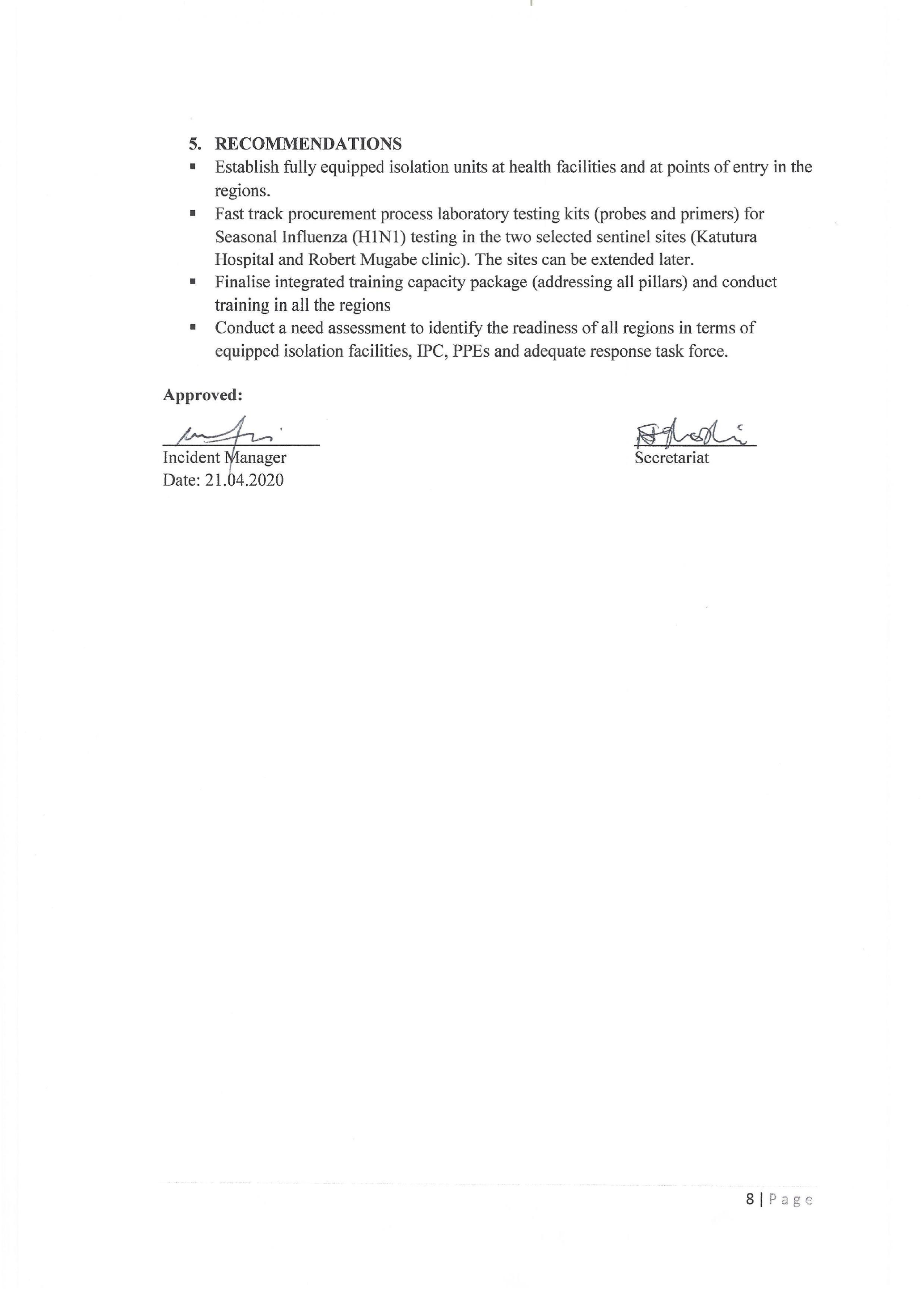 management and IPC is conducted daily at WCH, KSH, and Robert Mugabe Clinic.