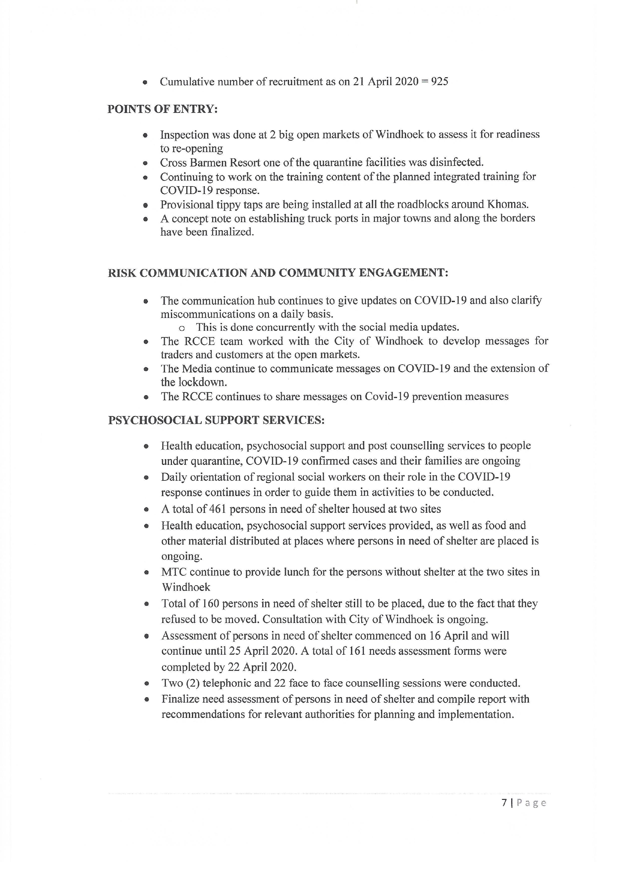 HEW Omusati, 2 HEW Otjozondjupa, 7 Registered Nurses Hardap, 2 Social