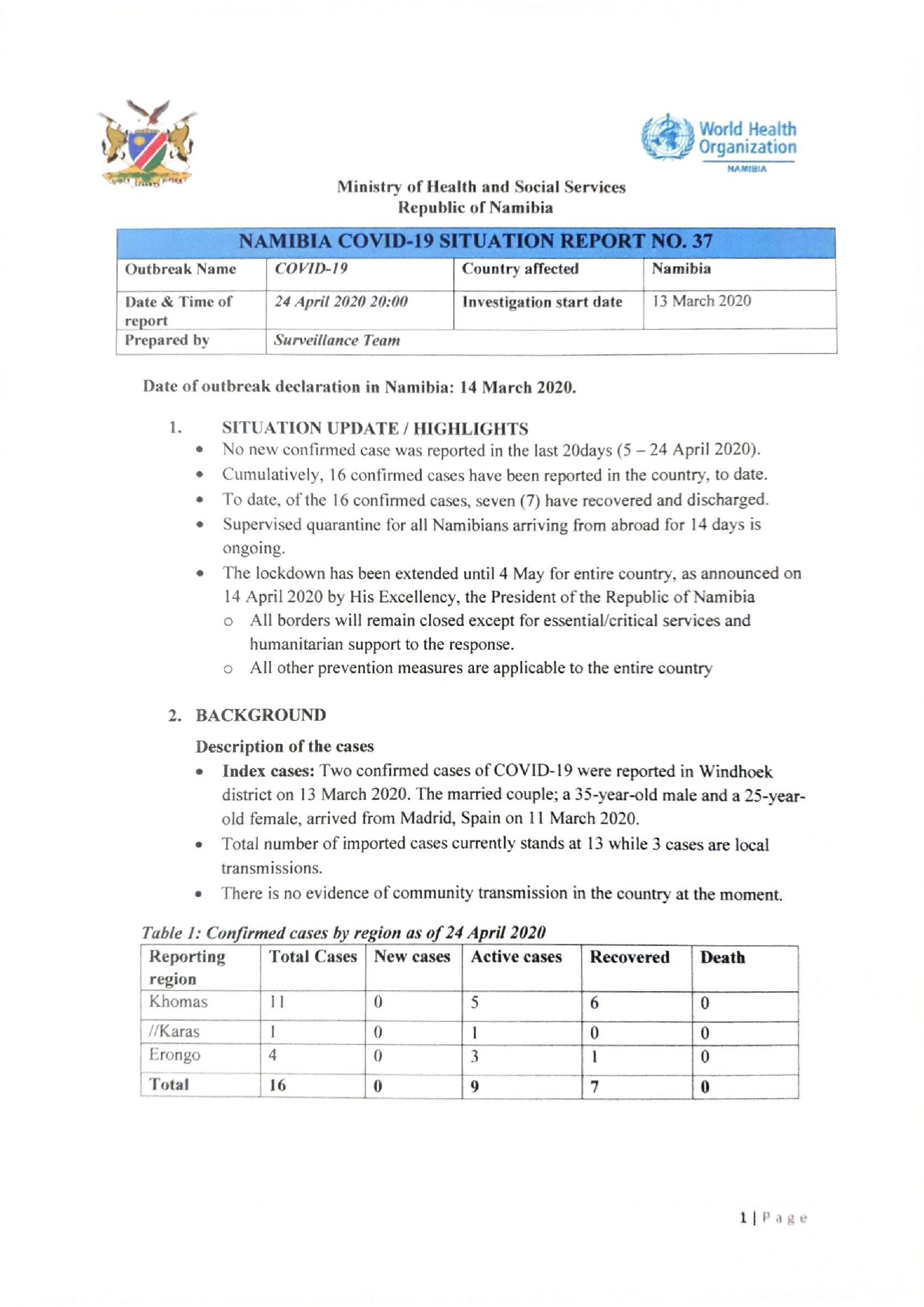 e Out of the 16 cumulative confirmed cases, 7 recovered, and have been discharged,