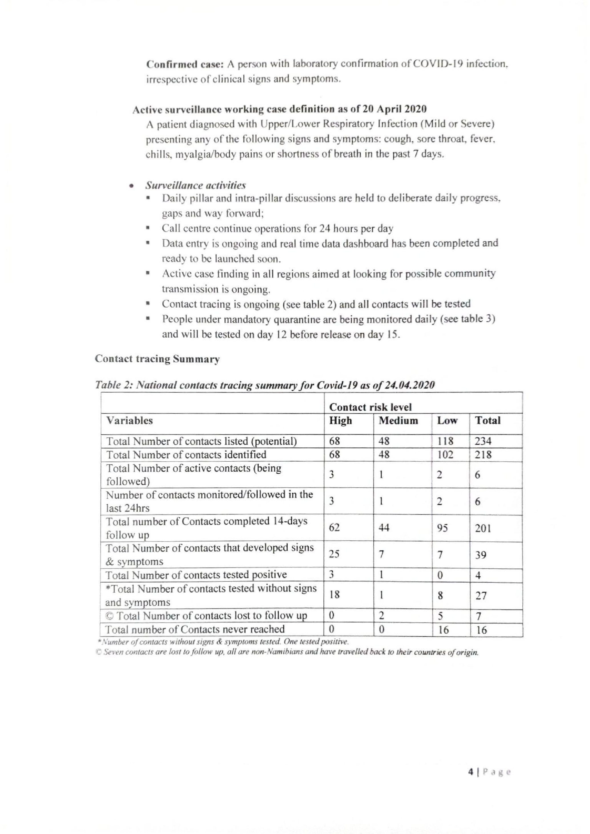 o Were deployed on 24 April 2020 to Case Management and Surveillance
