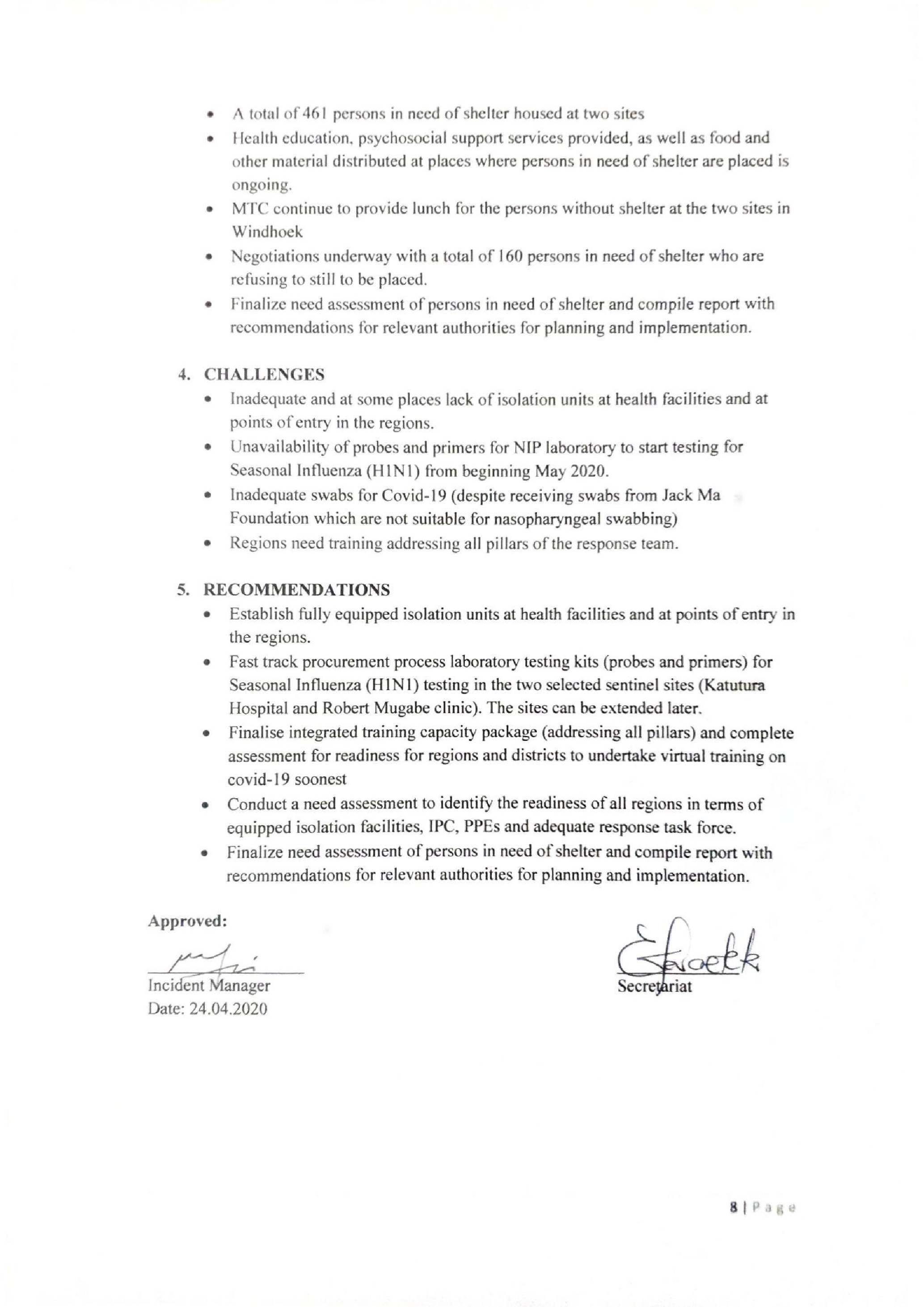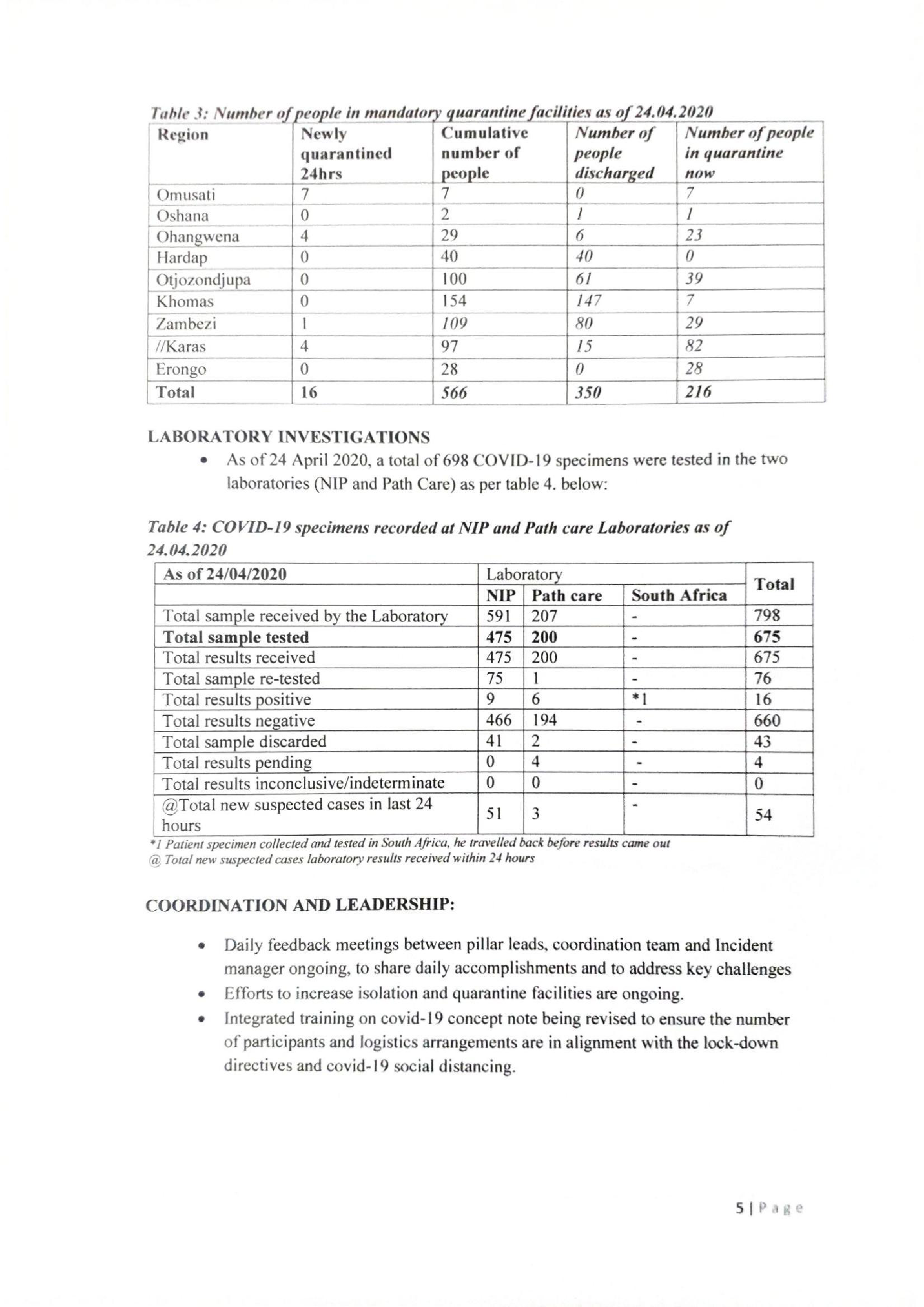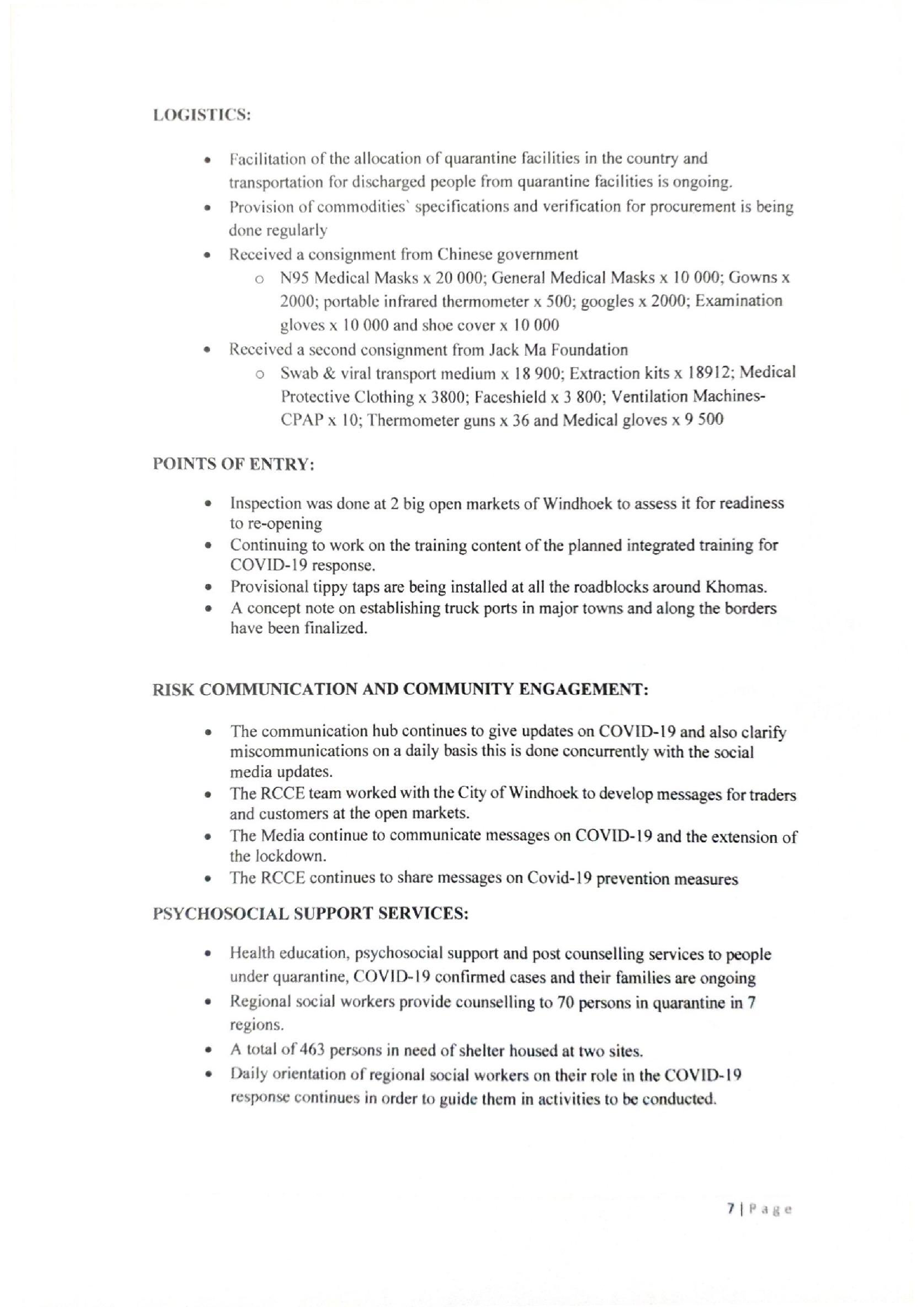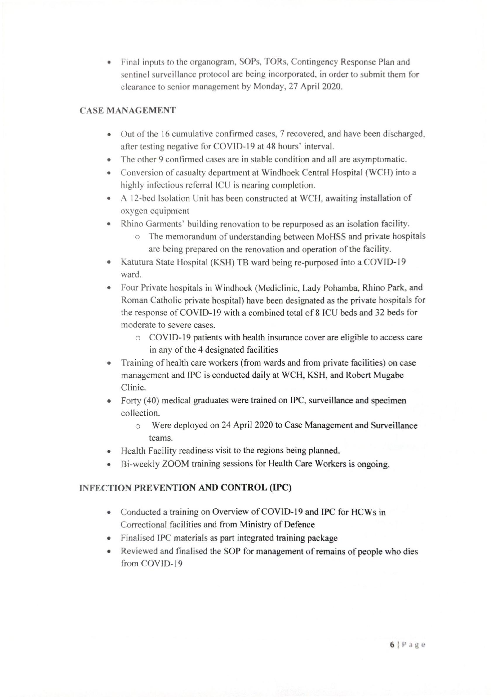 ¢ Katutura State Hospital (KSH) TB ward being re-purposed into a COVID-19