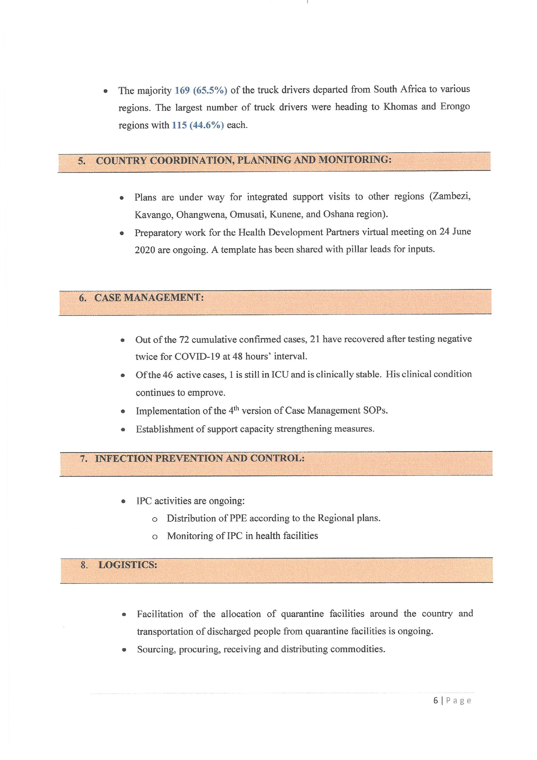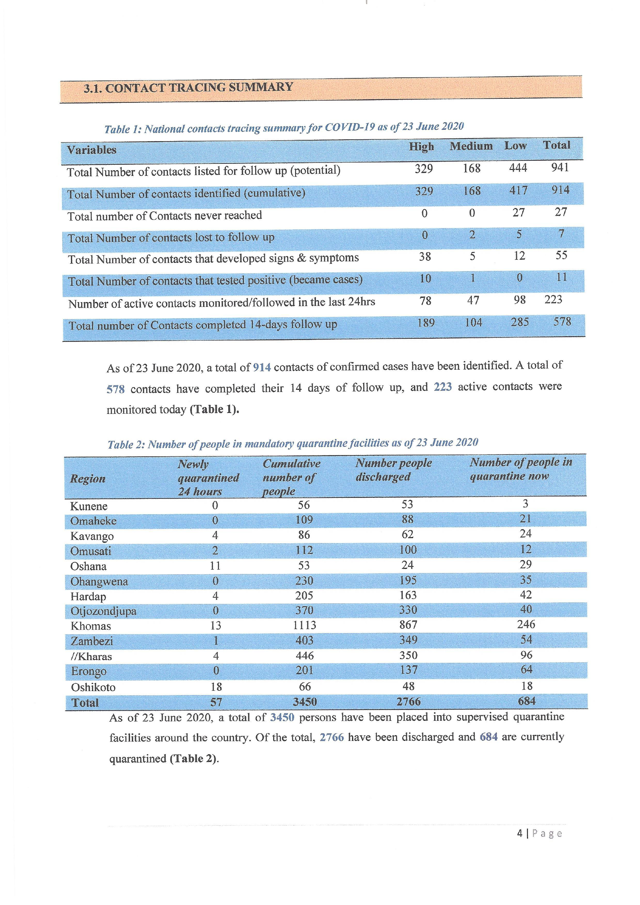 > Today (23.06.2020) five (5) new cases were reported from Khomas and Erongo region.