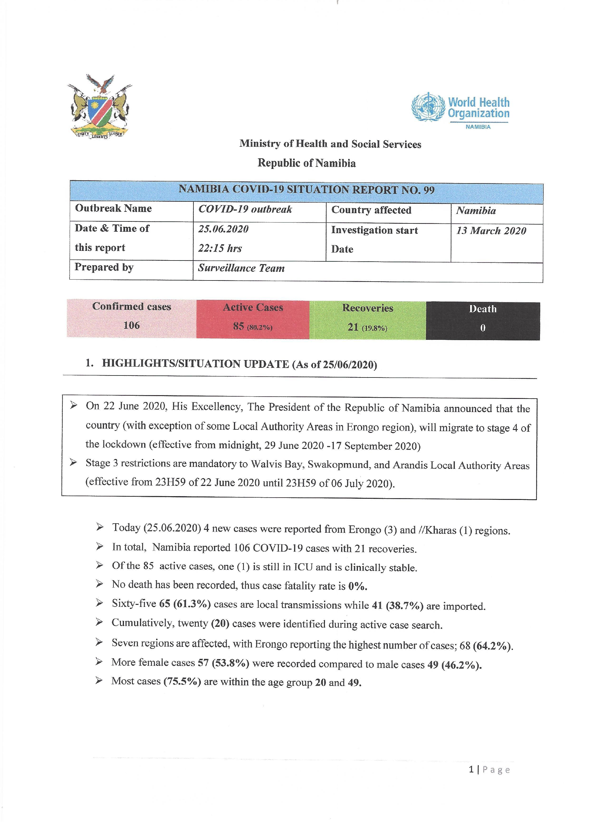 Since 14 March 2020, when the COVID-19 outbreak was declared in Namibia, a total of 106