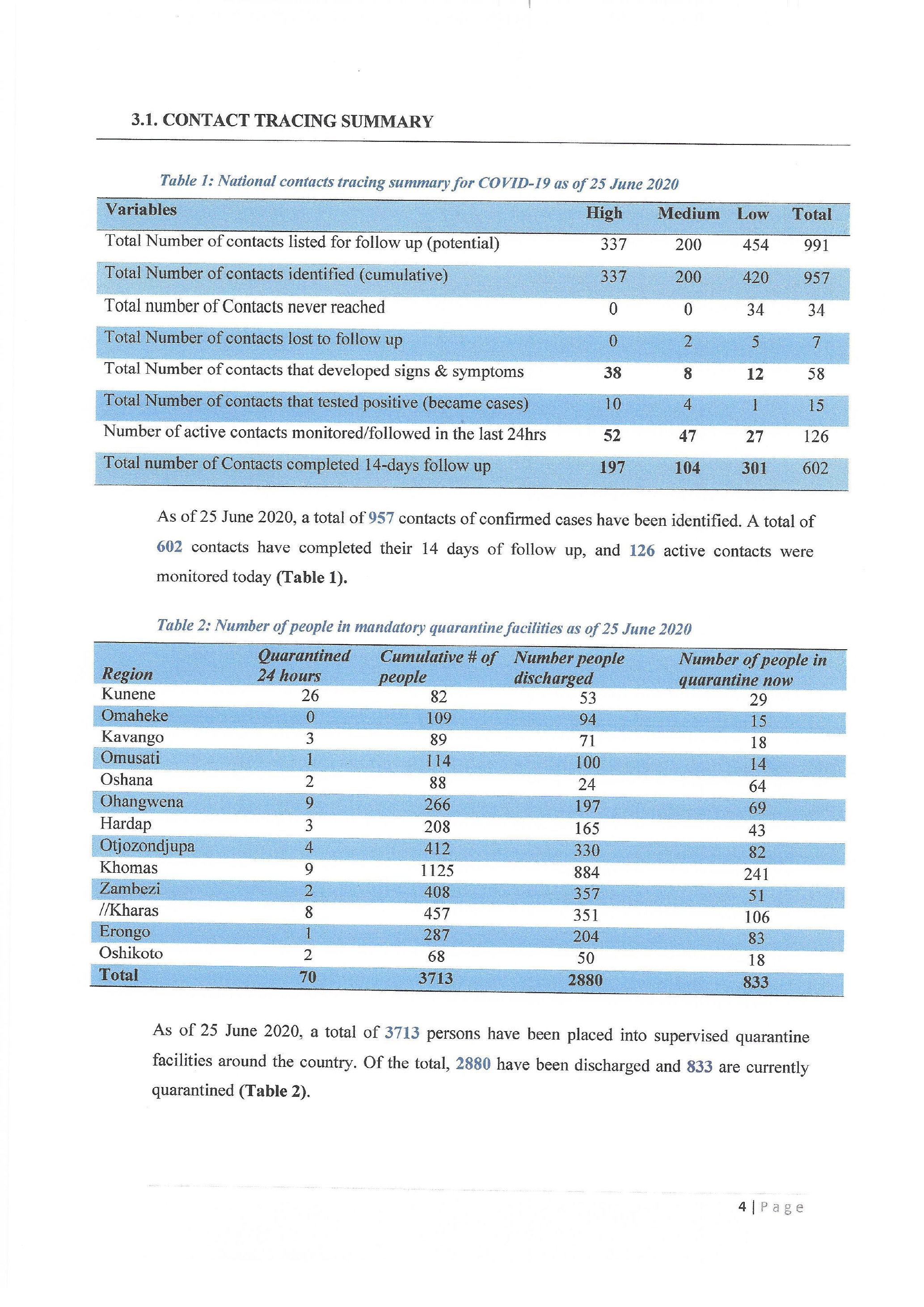 Today (25.06.2020) 4 new cases were reported from Erongo (3) and //Kharas (1) regions.