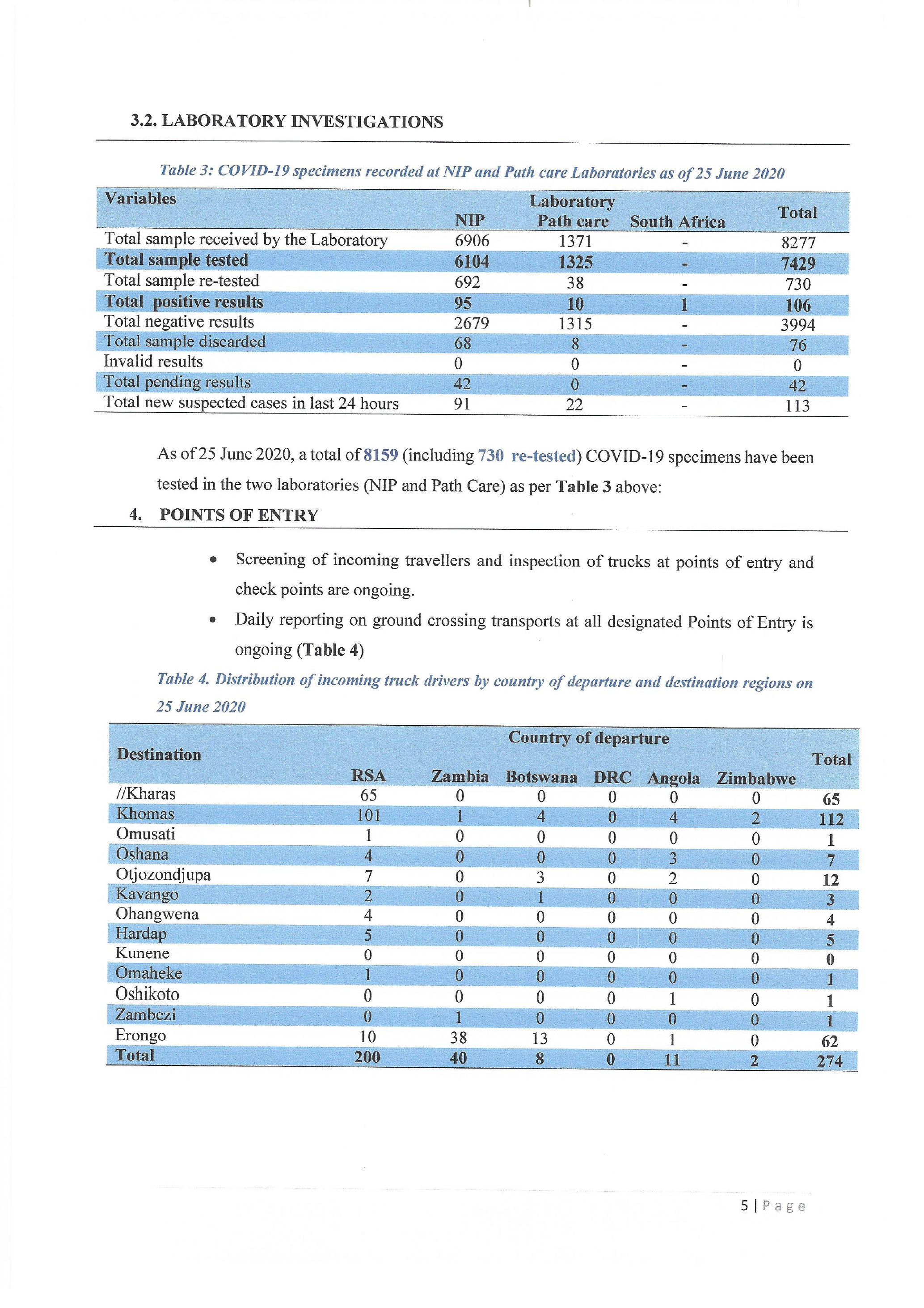 Table 3: COVID-19 specimens recorded at NIP and Path care Laboratories as of 25 June 2020